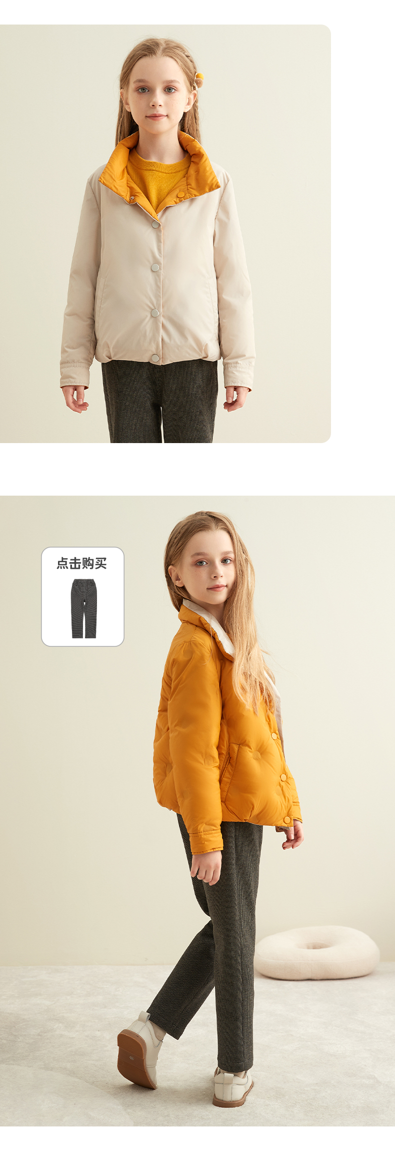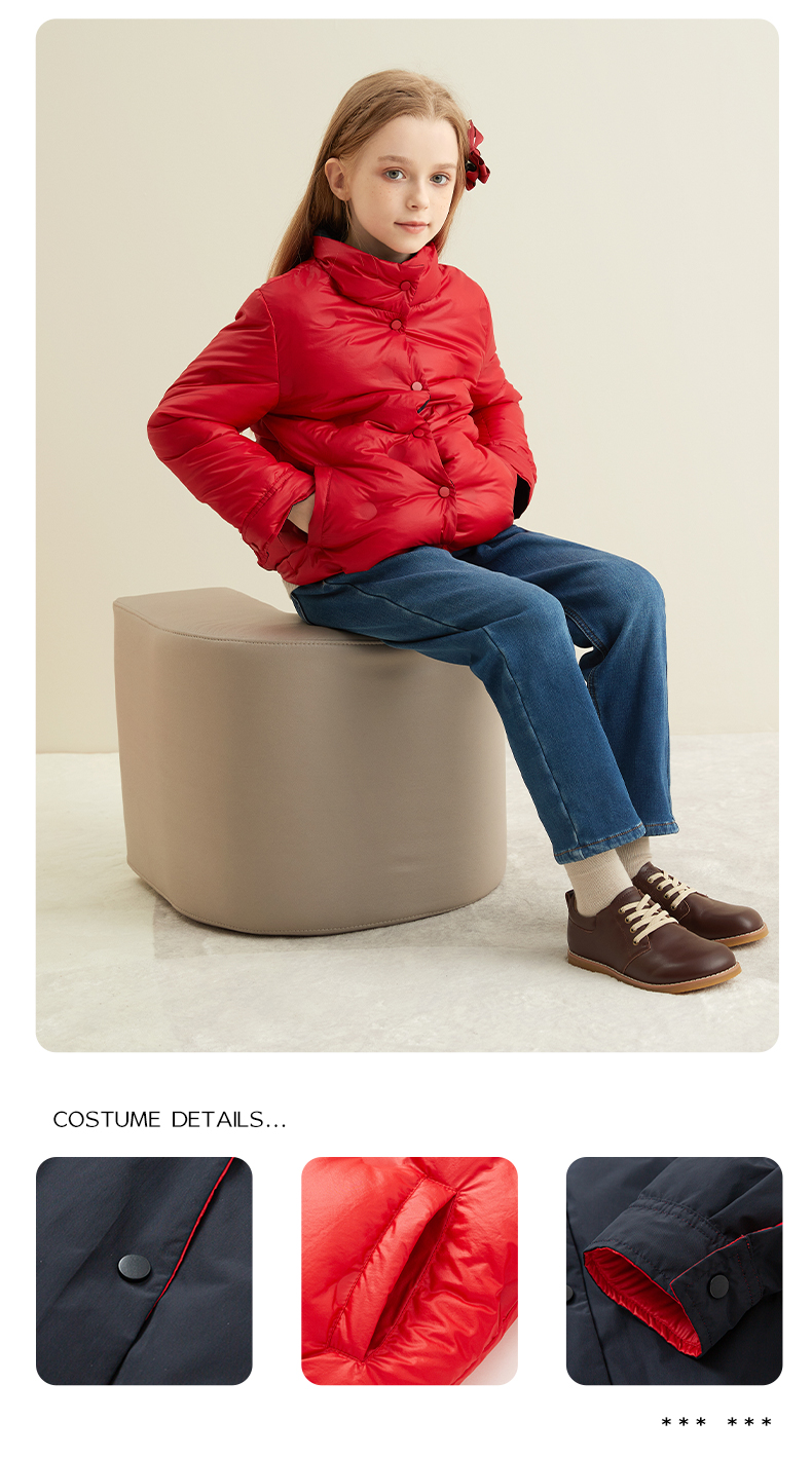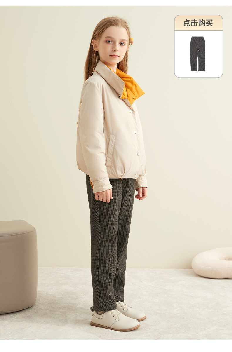 【童装双面穿羽绒服】秋冬新品中大童90白鹅绒羽绒服时尚立领双面穿外套