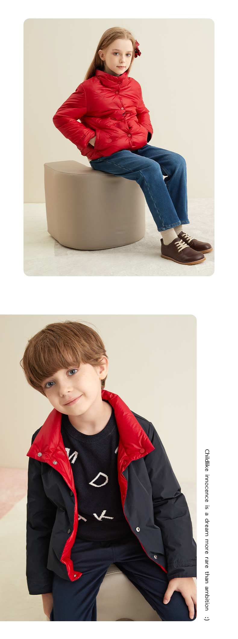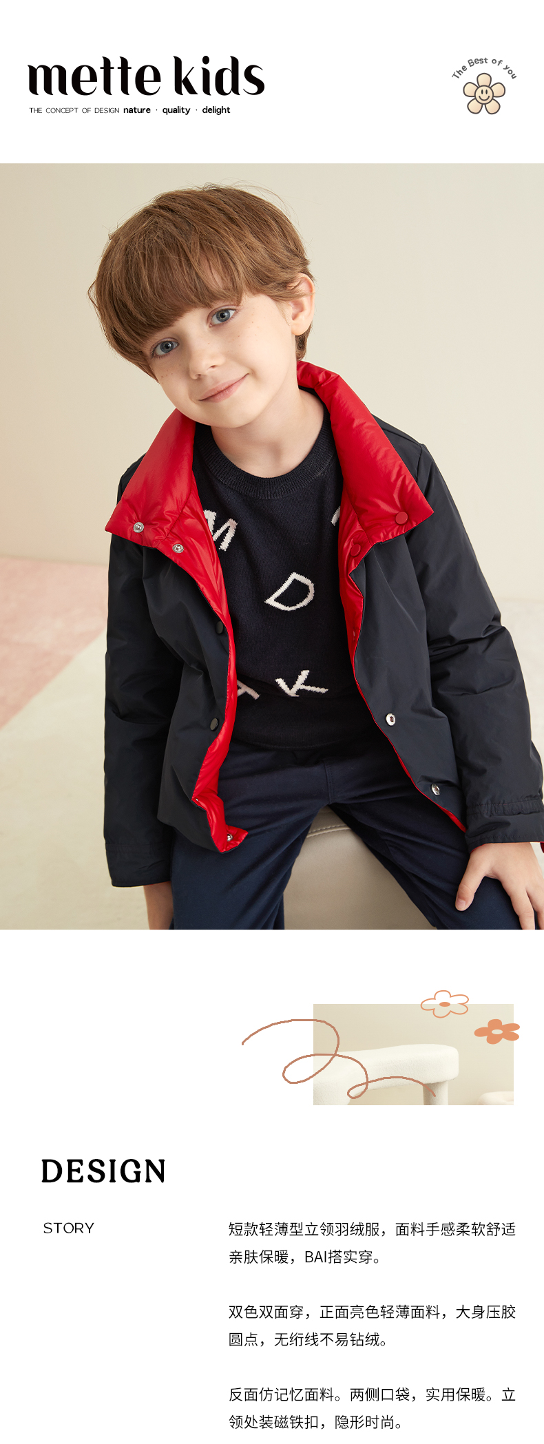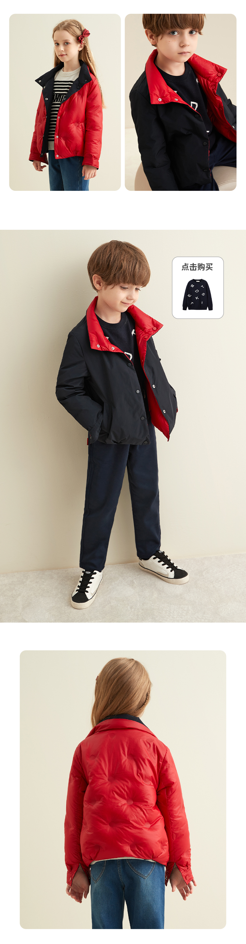 【童装双面穿羽绒服】秋冬新品中大童90白鹅绒羽绒服时尚立领双面穿外套