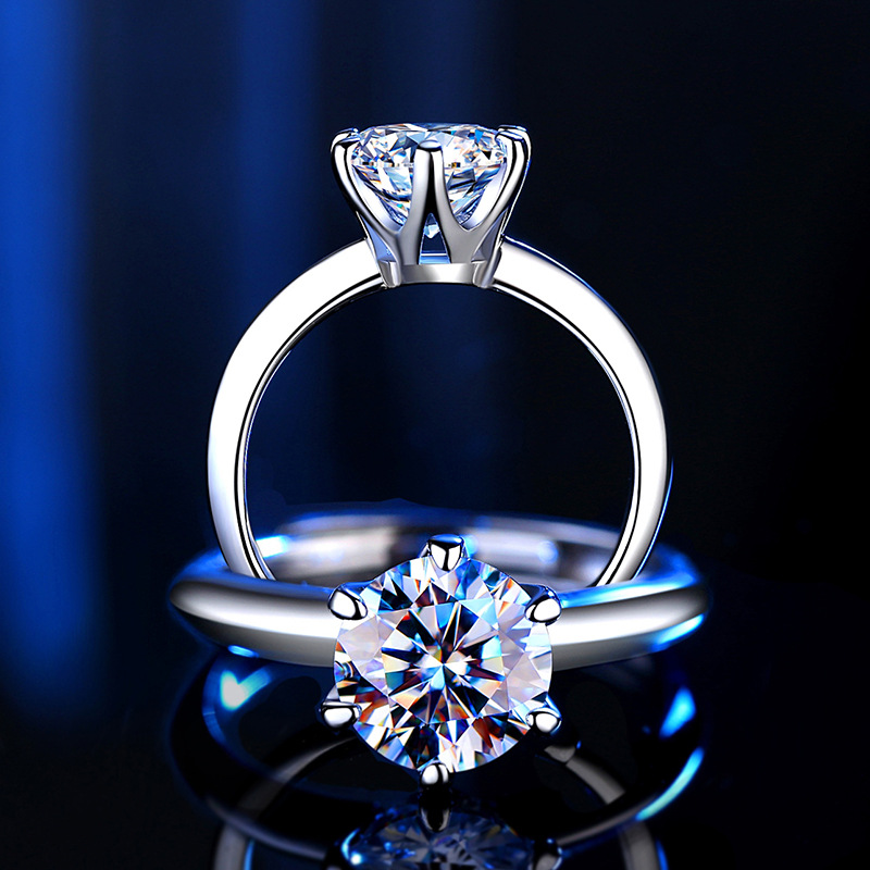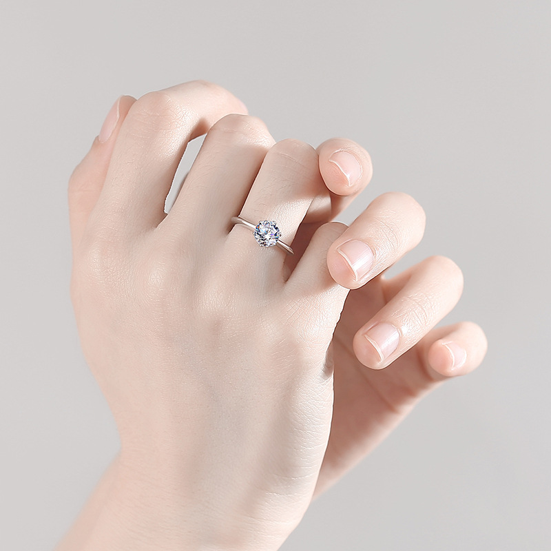 子佩集【琼花】S925银1克拉莫桑钻戒指【JHY-Z000306B】