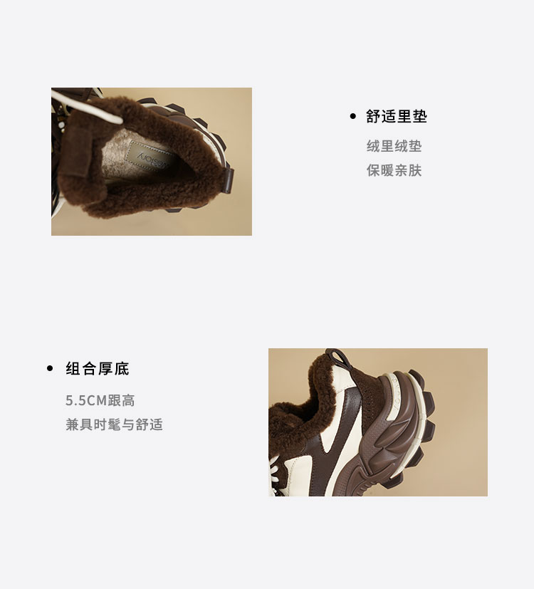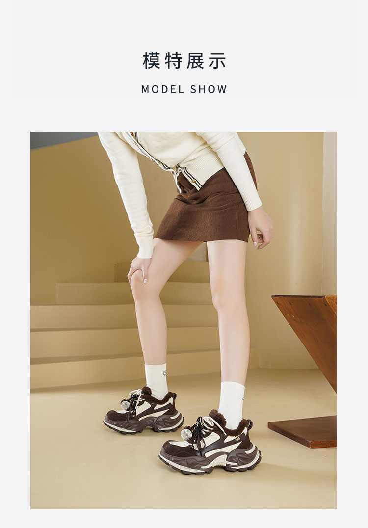 Westory2025年冬季厚底加毛撞色甜酷运动鞋深口毛毛鞋W25DM86141