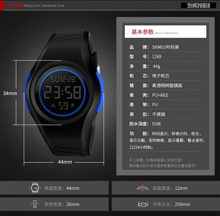 【授权商品】时刻美手表男学生初中儿童防水青少年户外多功能电子表闹钟夜光1269黑色/红色/蓝色JPY带授权招加盟代理