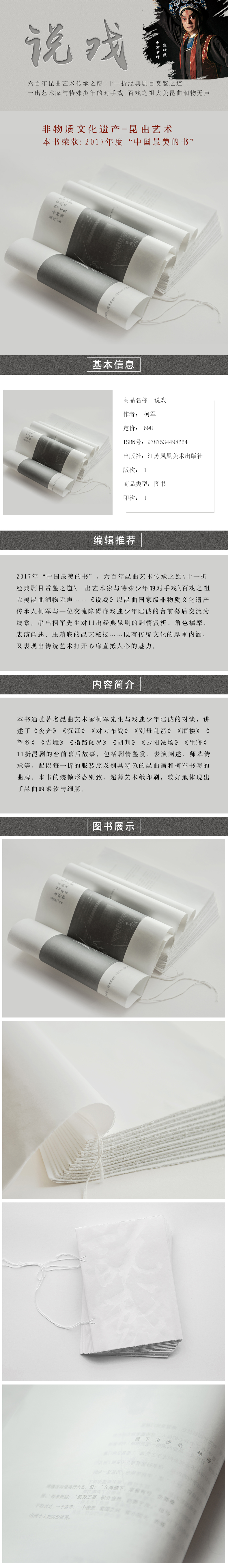 《说戏》是世界非物质文化遗产昆曲传承人柯军从事艺四十年的心血之作,饱含着六百年昆曲艺术的传承之愿、浓缩了十一折经典剧目的赏鉴之道,该书以柯军与一位交流障碍症戏迷少年陆诚的台前幕后交流为线索,串出柯军对11出经典昆剧的剧情赏析、角色揣摩、表演阐述、压箱底的昆艺秘技……既有传统文化的厚重内涵,又表现出传统艺术打开心扉直抵人心的魅力和当代社会功能。