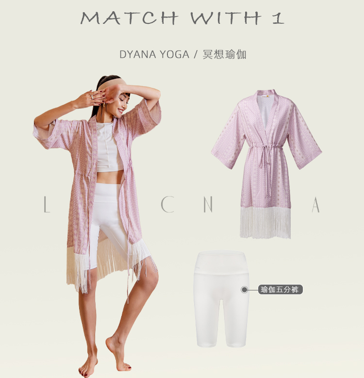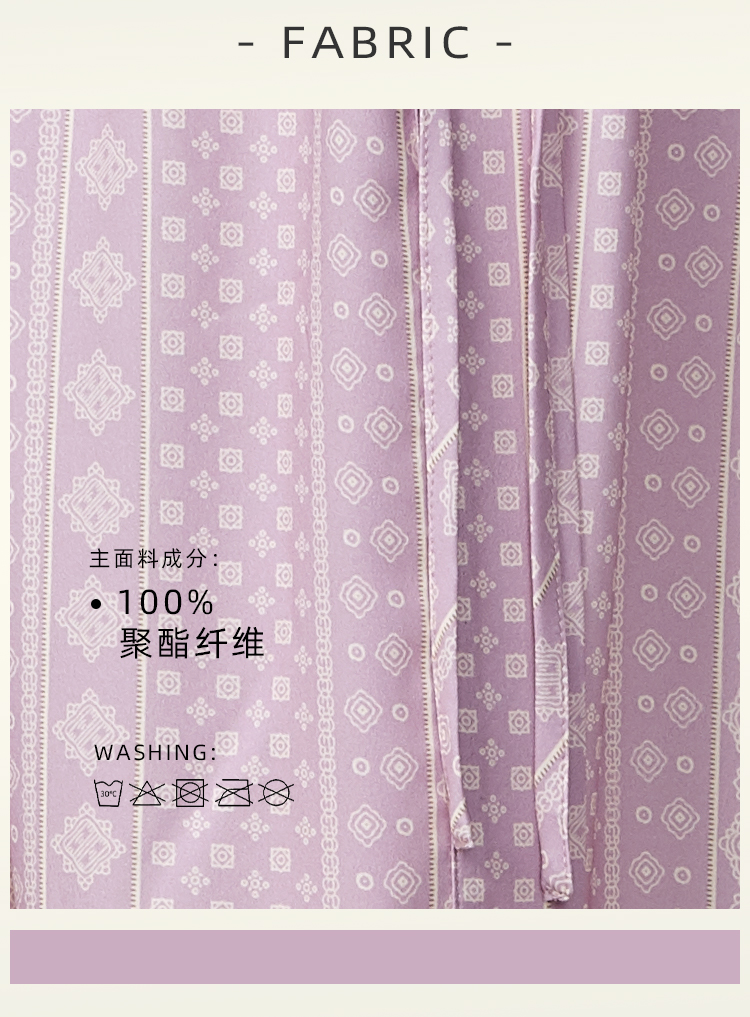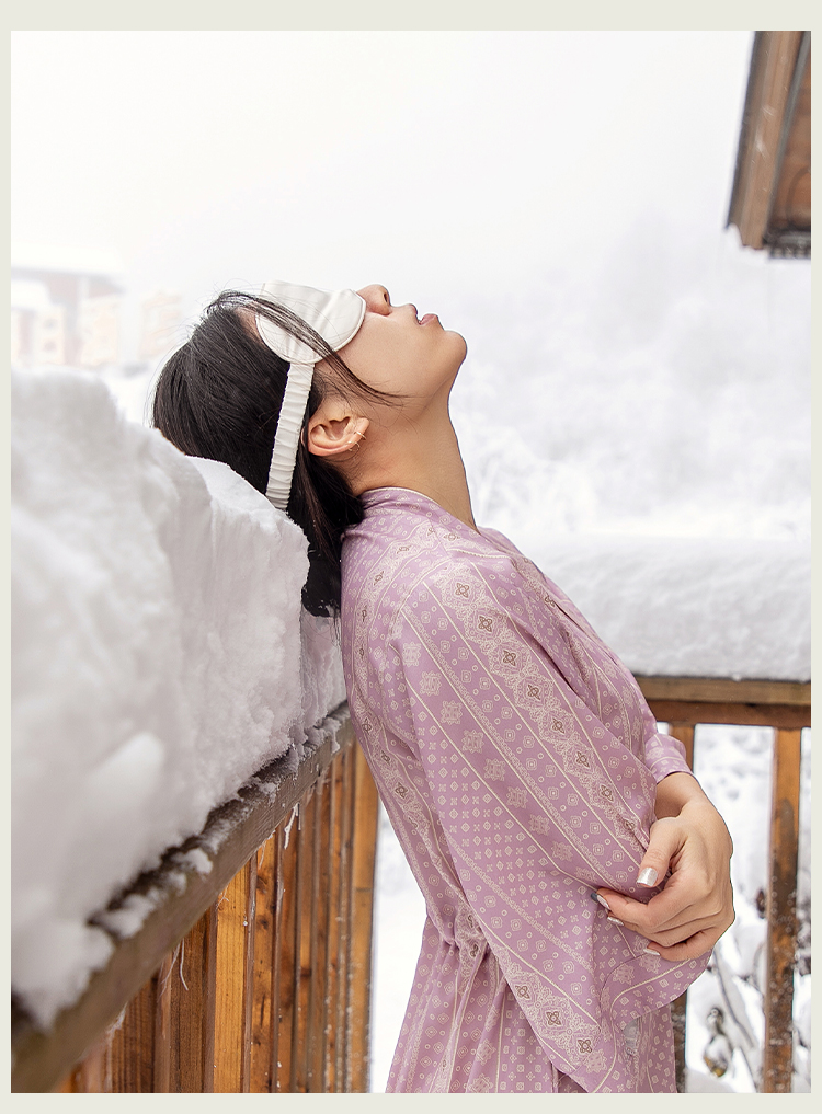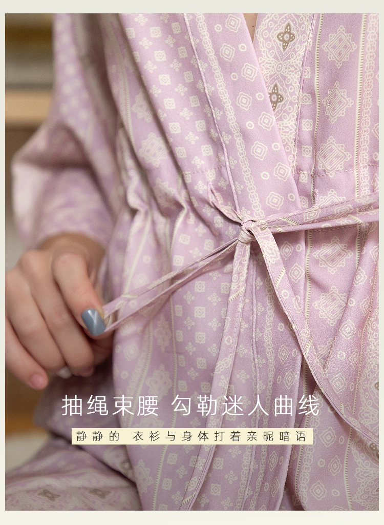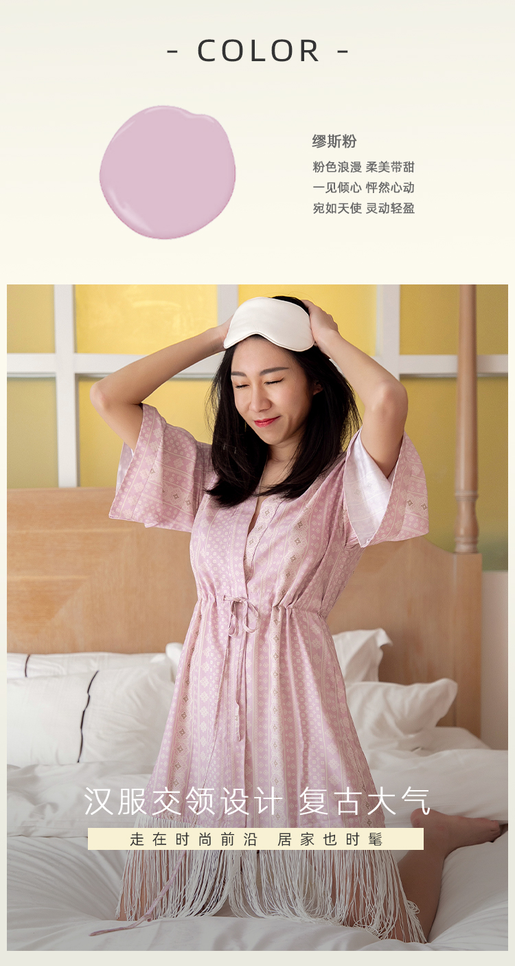 L RECNAVA 睡袍长款浴袍长袖家居服流苏印花长晨袍女