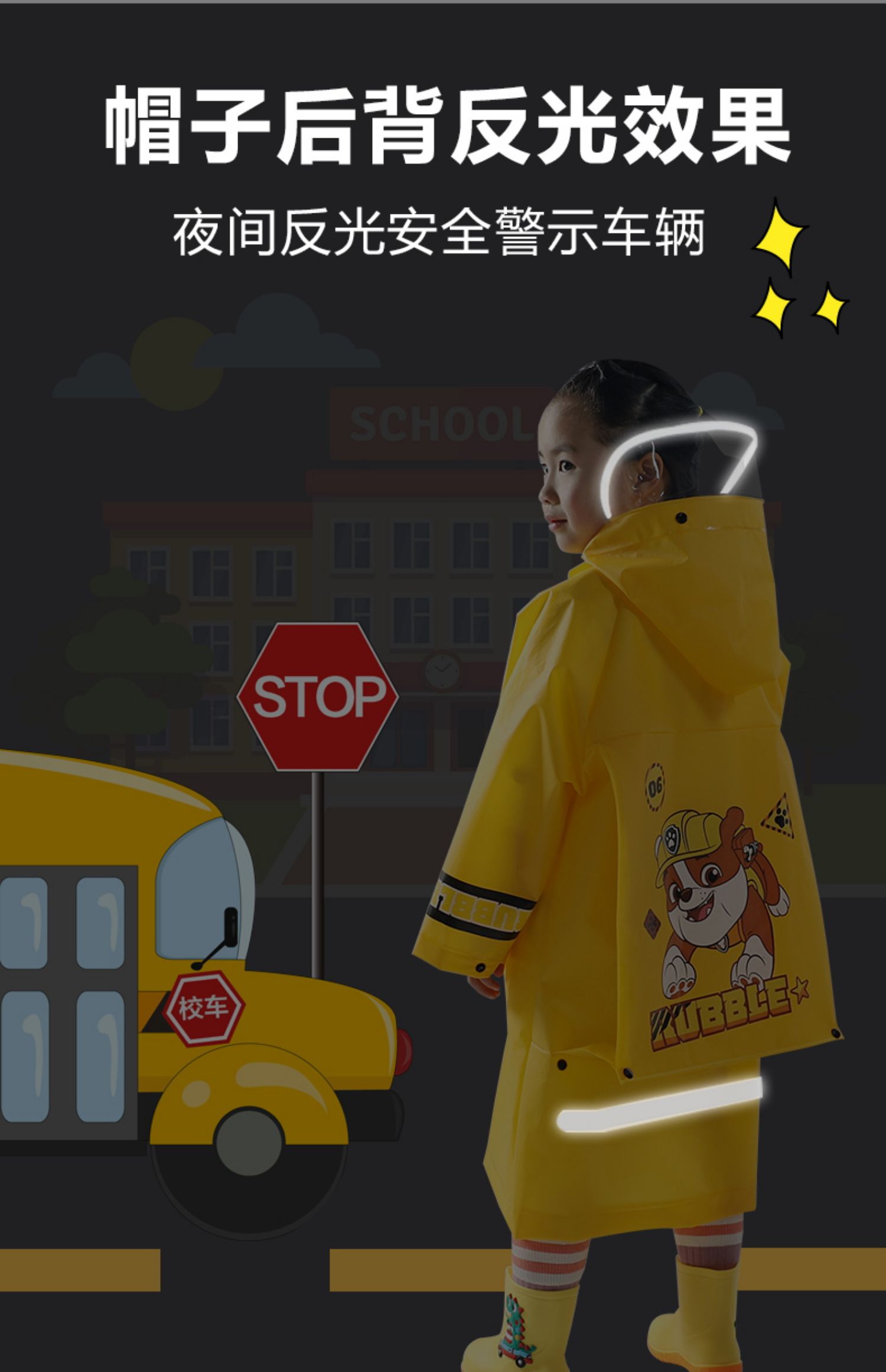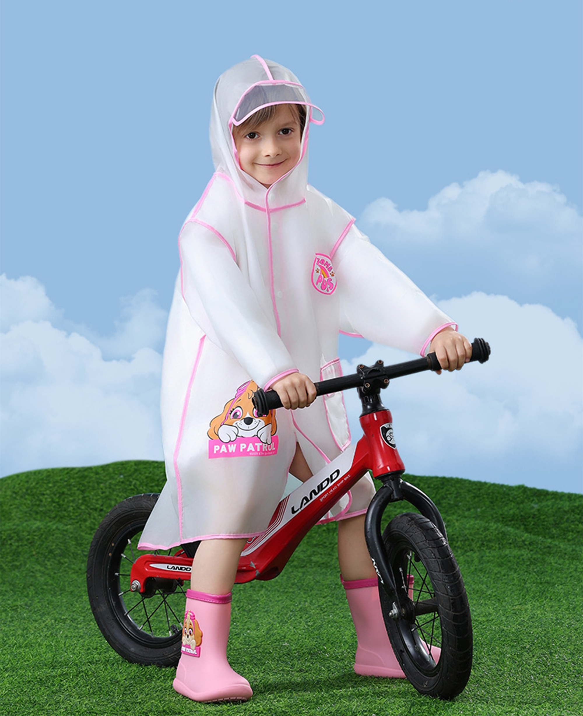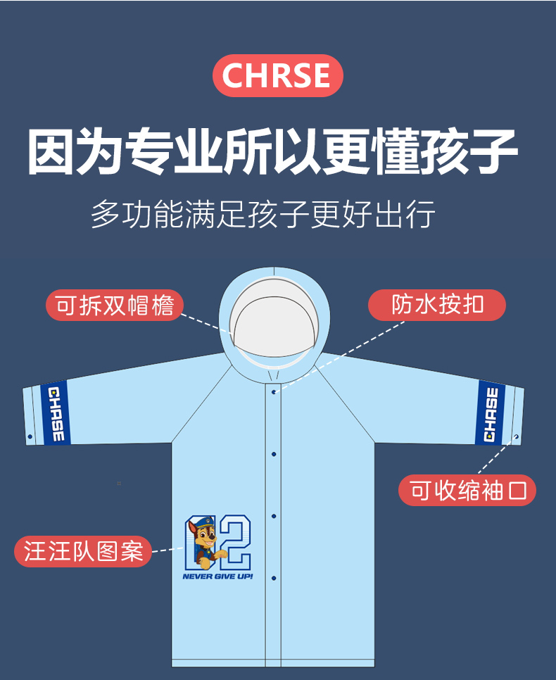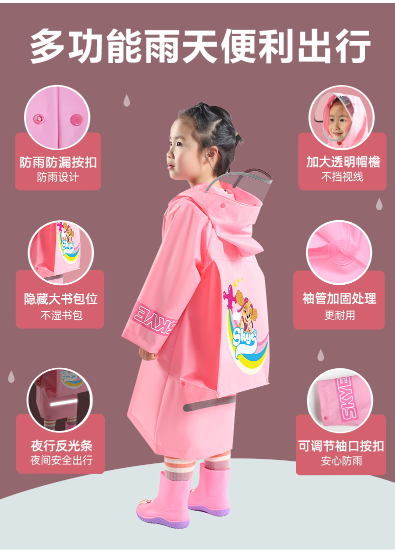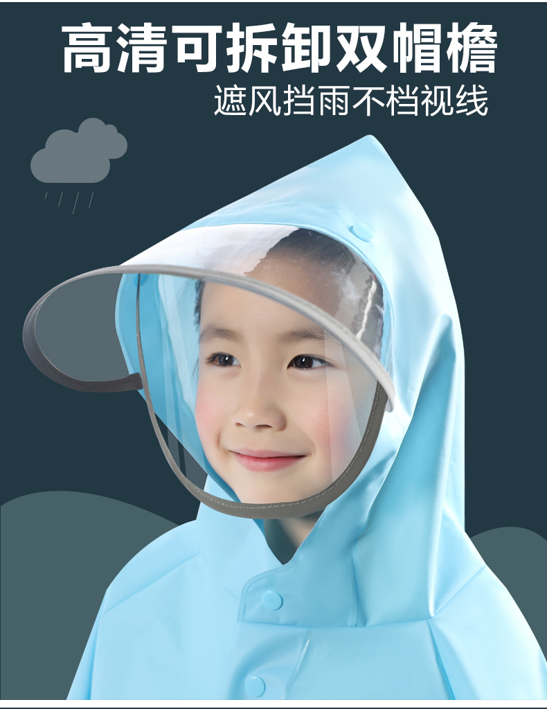 今天这款儿童时尚雨衣颜色亮丽,造型设计特别