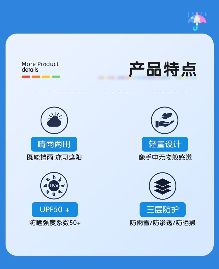 UPF50+,晴天也可以当遮阳伞用,避免阳光暴晒