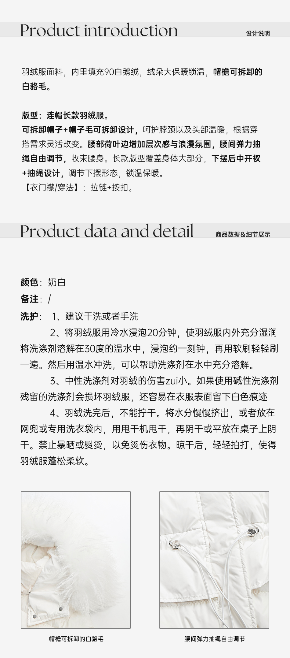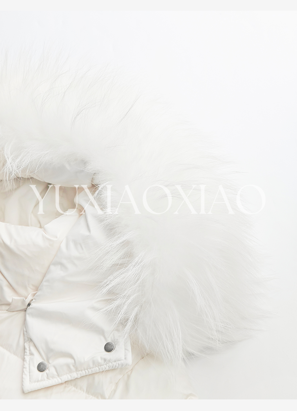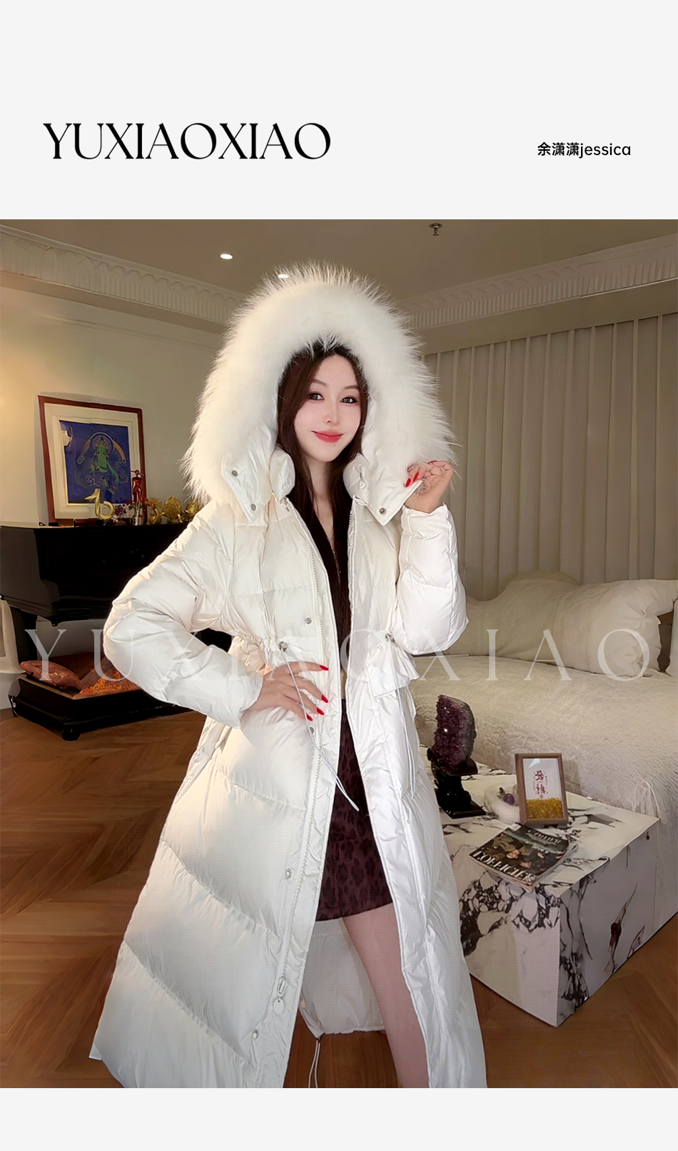 余潇潇【雪国漫游】可拆貉子毛领高克重90白鹅绒调节腰连帽羽绒服