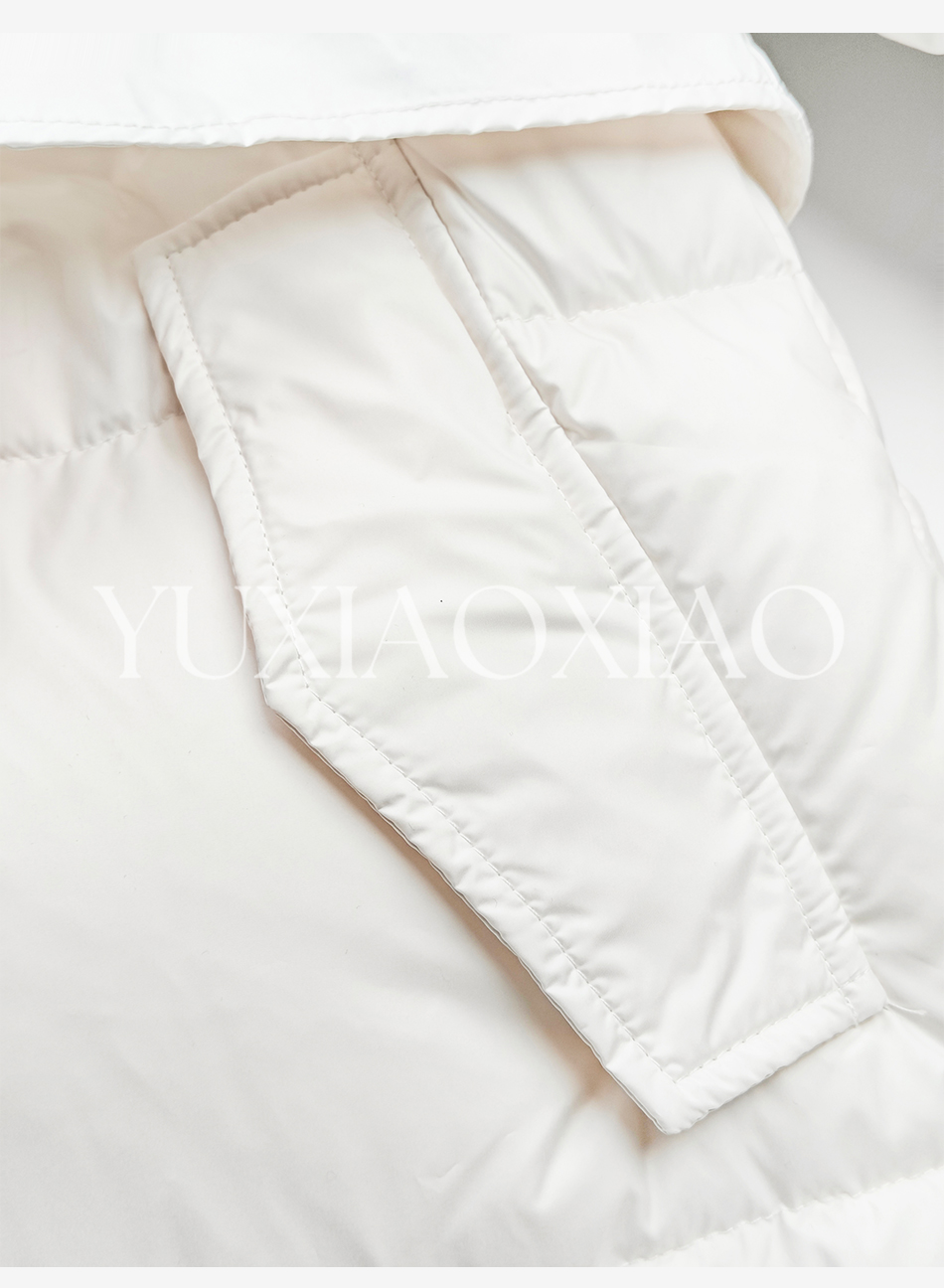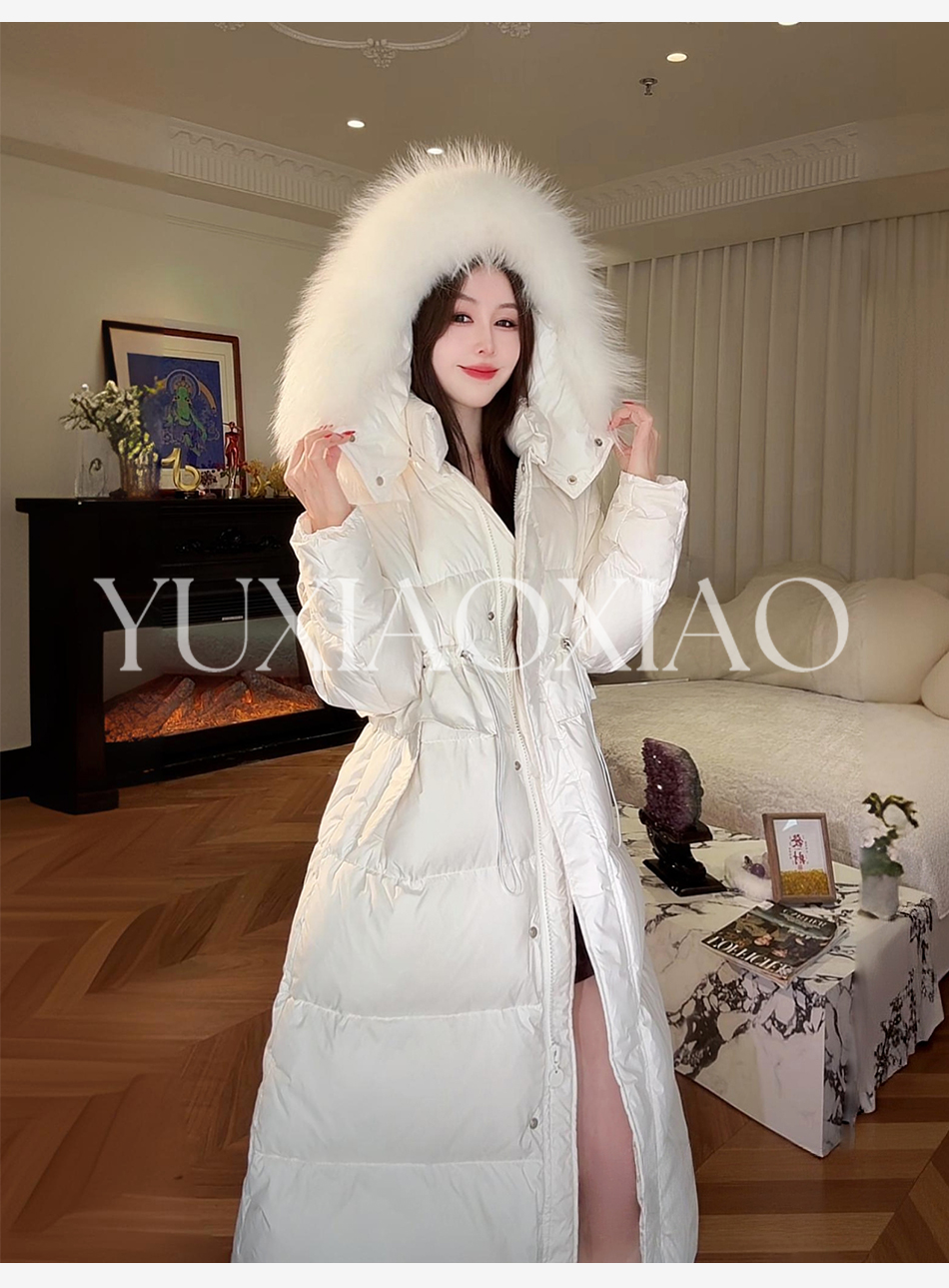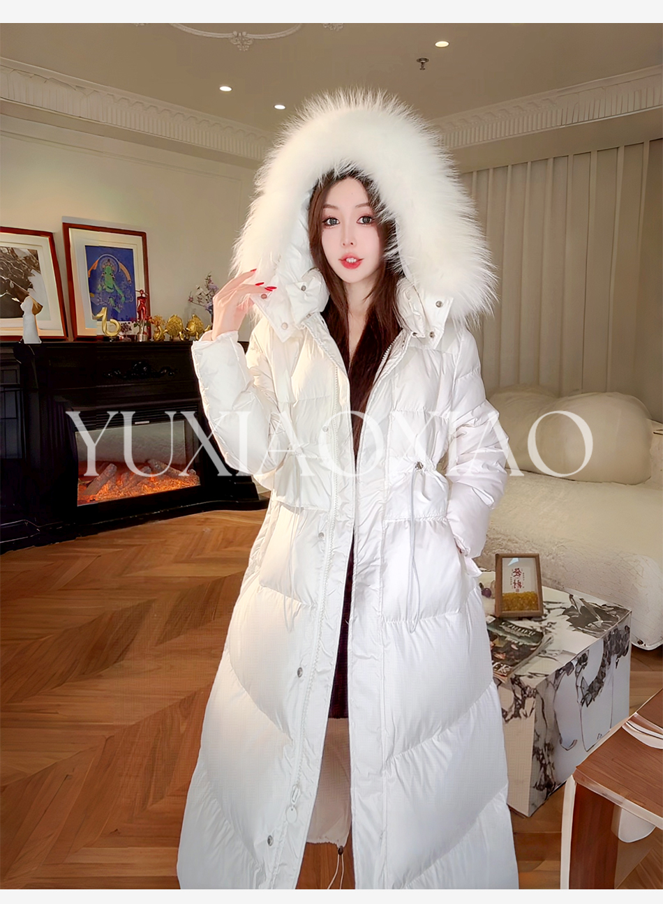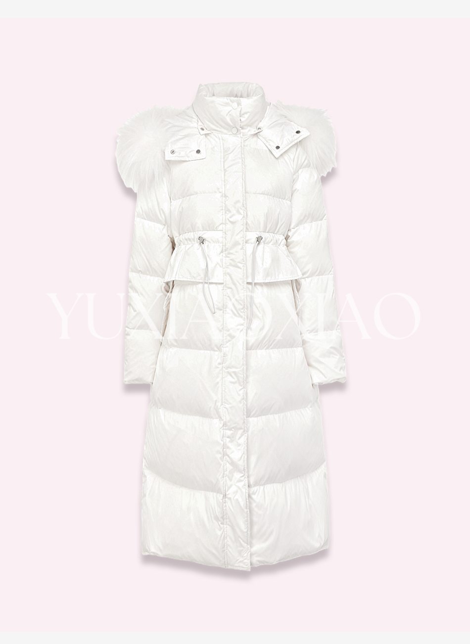 余潇潇【雪国漫游】可拆貉子毛领高克重90白鹅绒调节腰连帽羽绒服