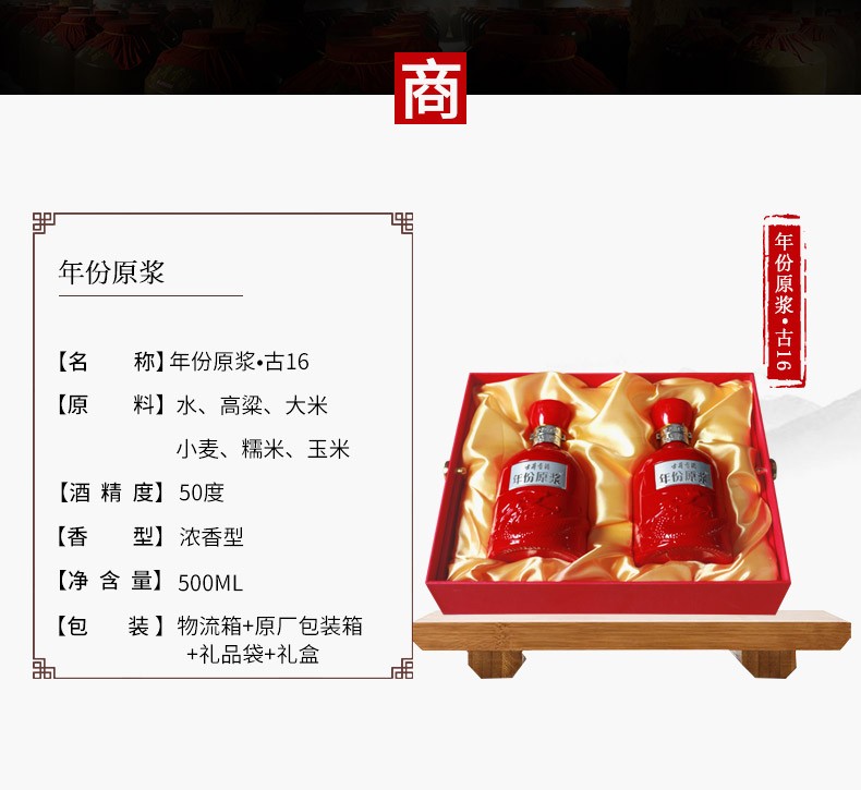 古井贡酒 年份原浆古16-50度500ml*2瓶 礼盒装白酒