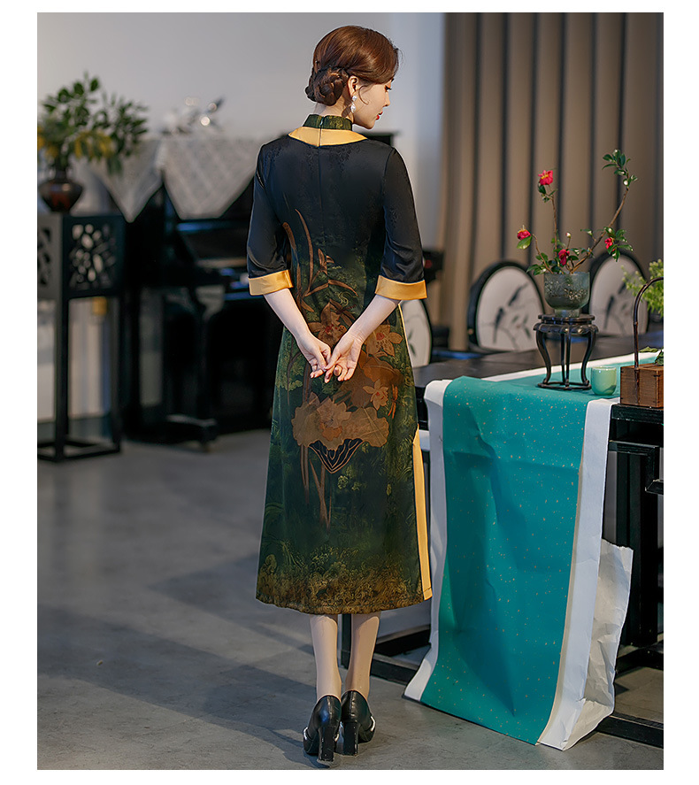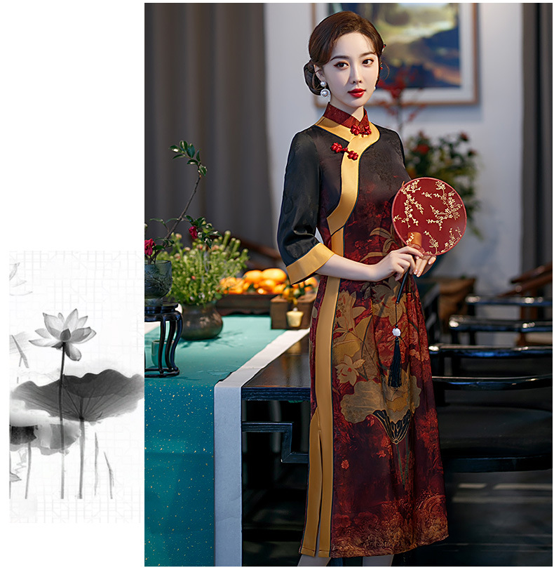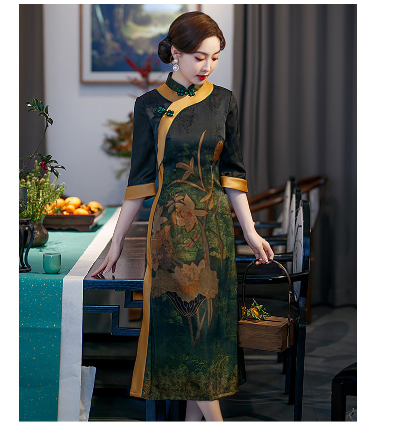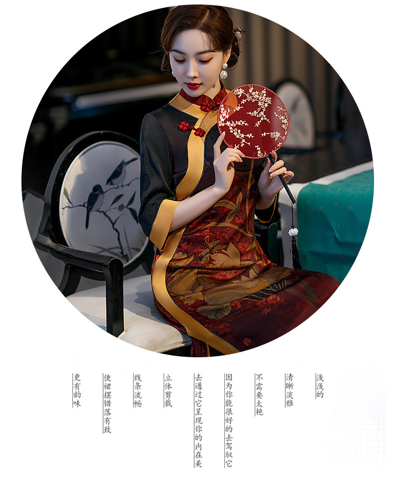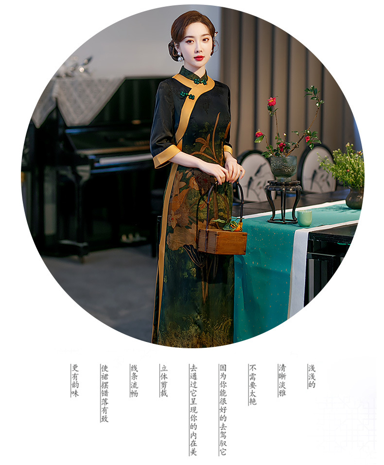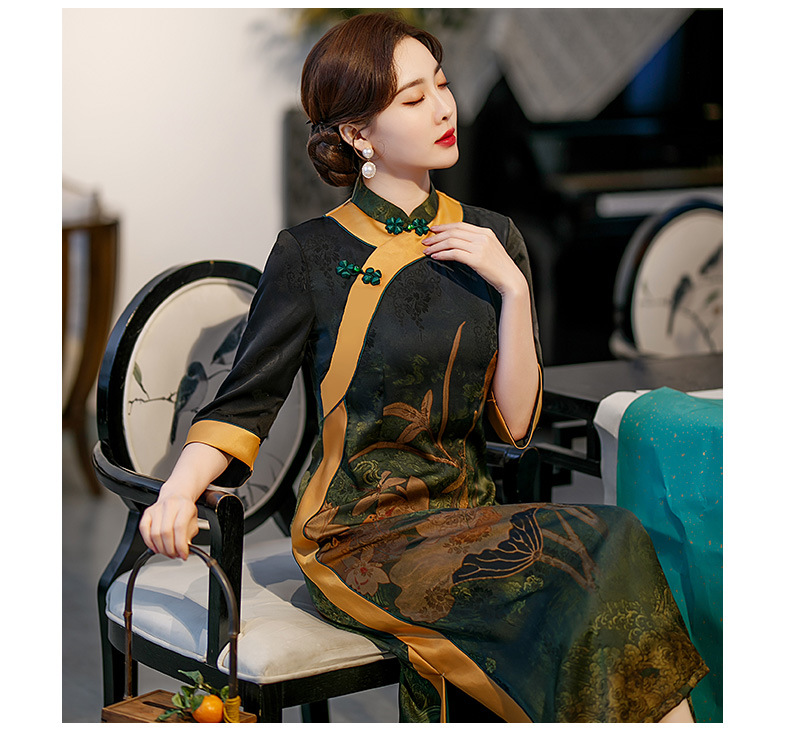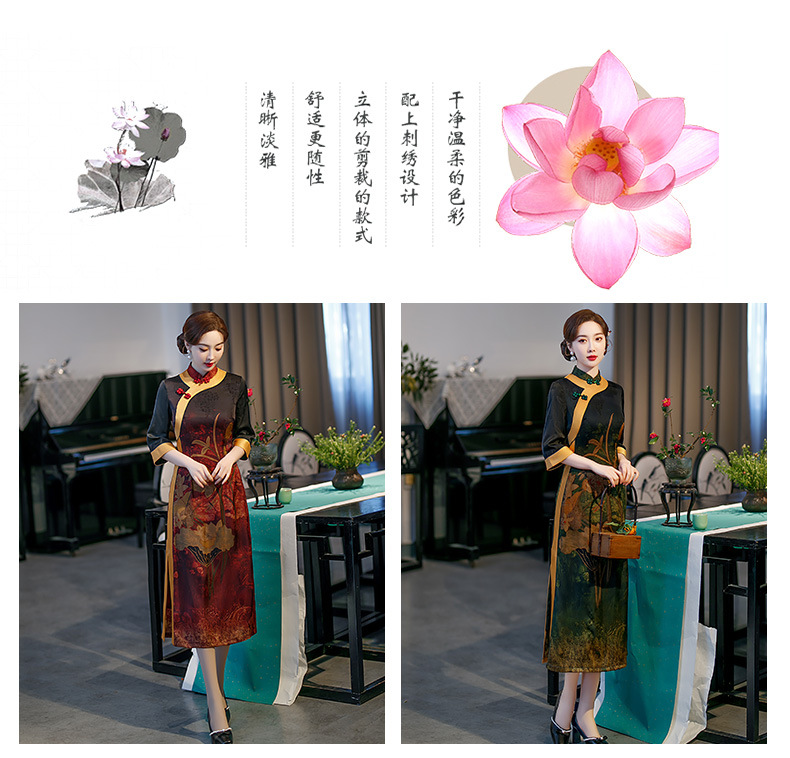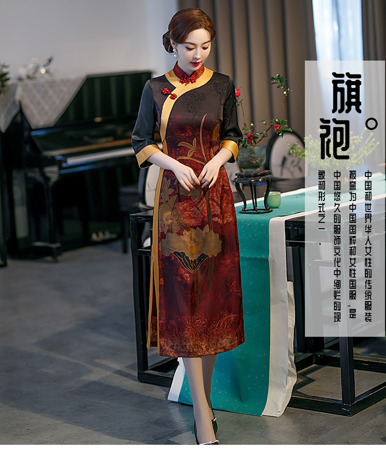 2022新款改良宽边旗袍修身优雅显年轻妈妈装连衣裙日常 GSJ3035