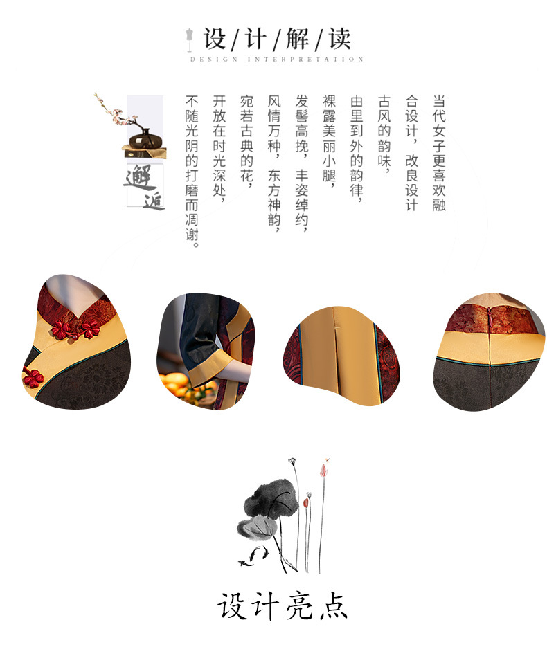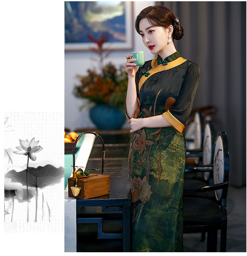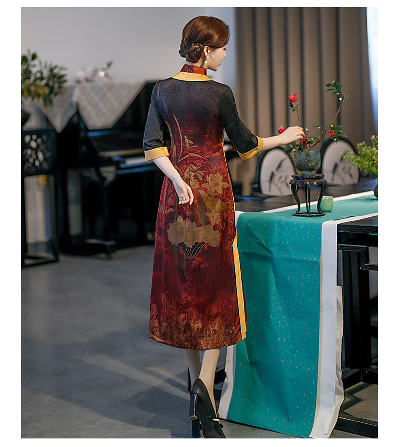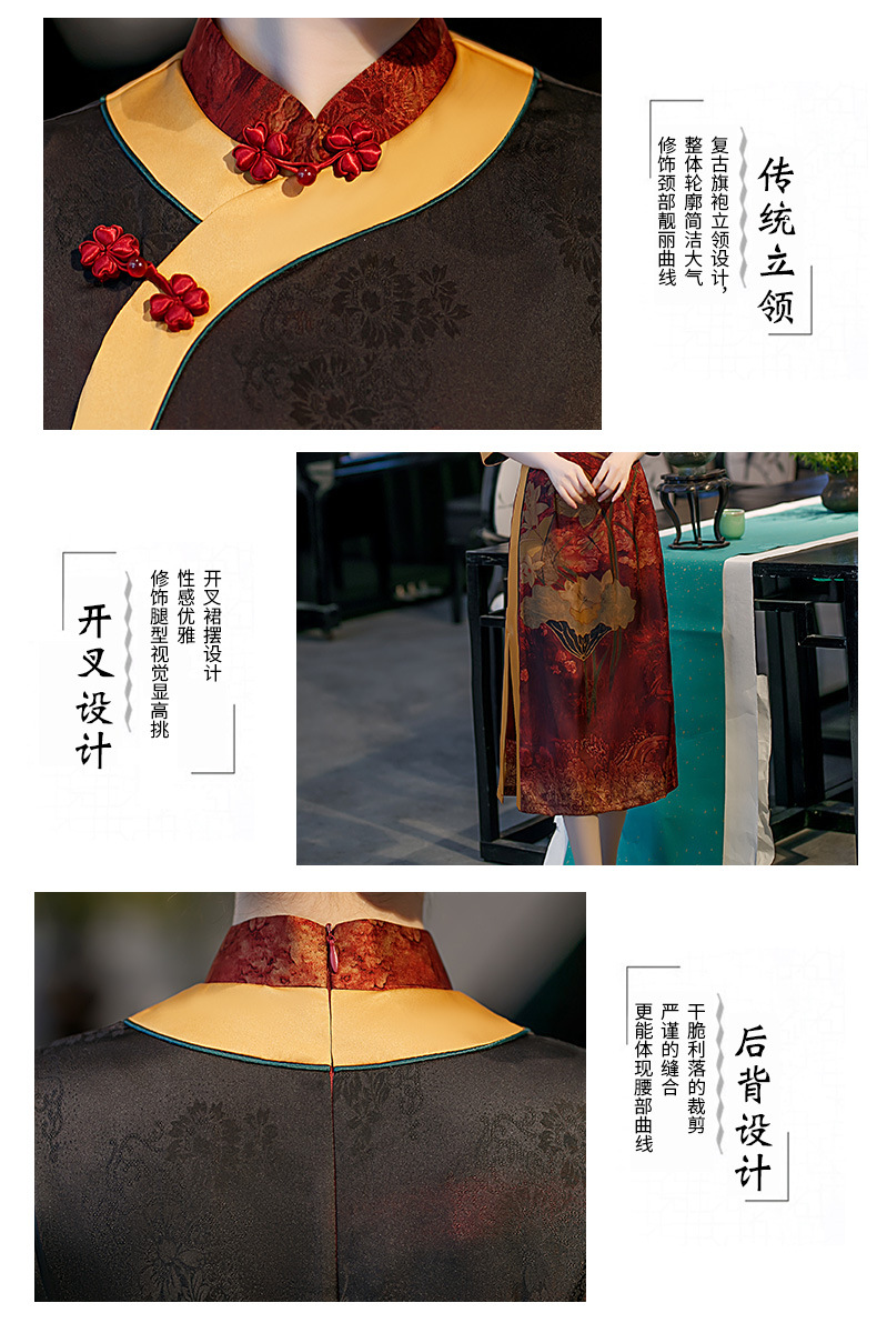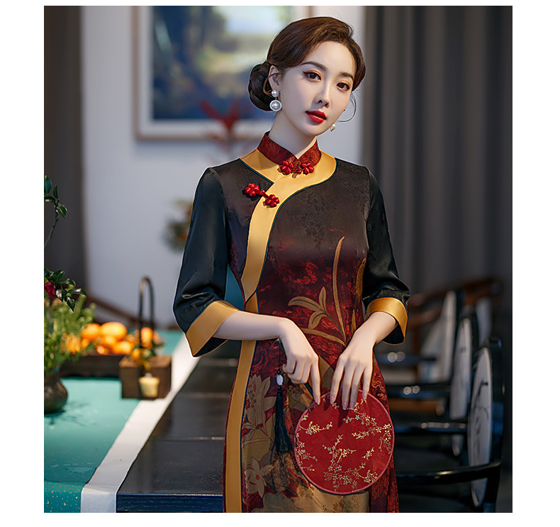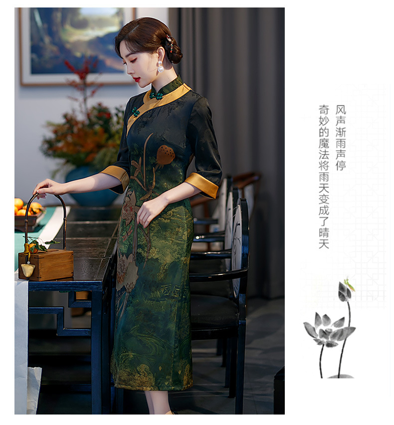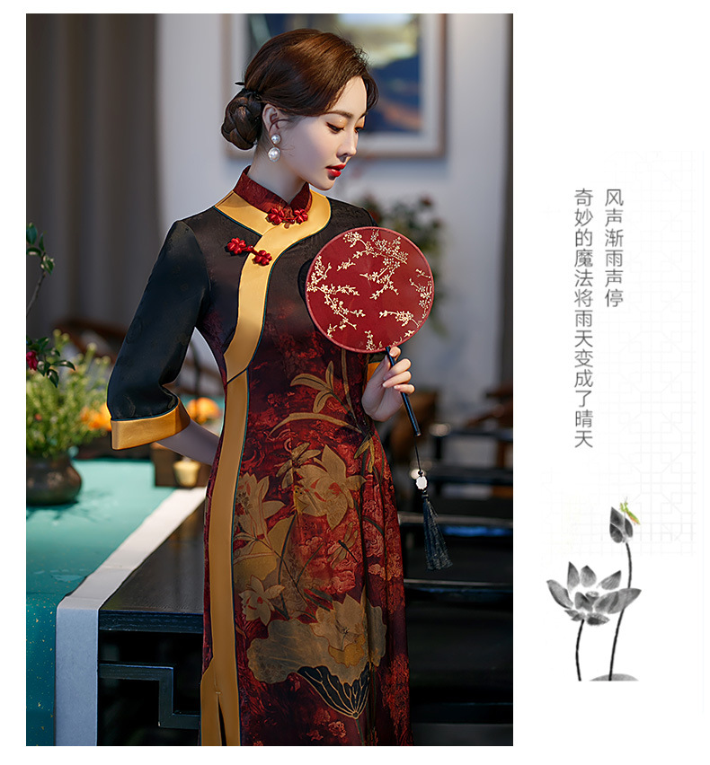 2022新款改良宽边旗袍修身优雅显年轻妈妈装连衣裙日常 GSJ3035