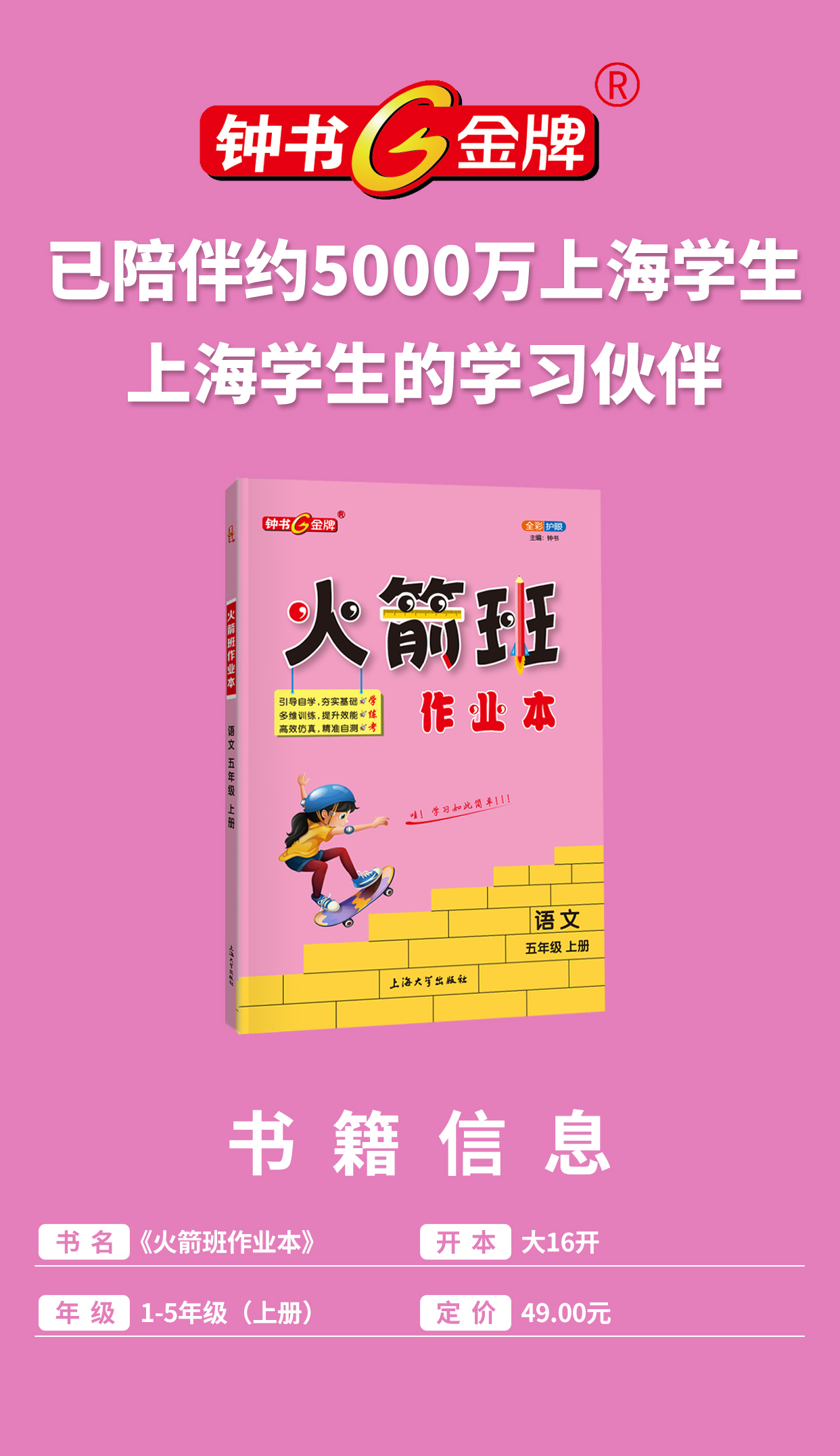 钟书金牌火箭班作业本四年级数学五年级年级同步练习语文课堂笔记小学生二三年级课外作业重点解析上海大学出版社