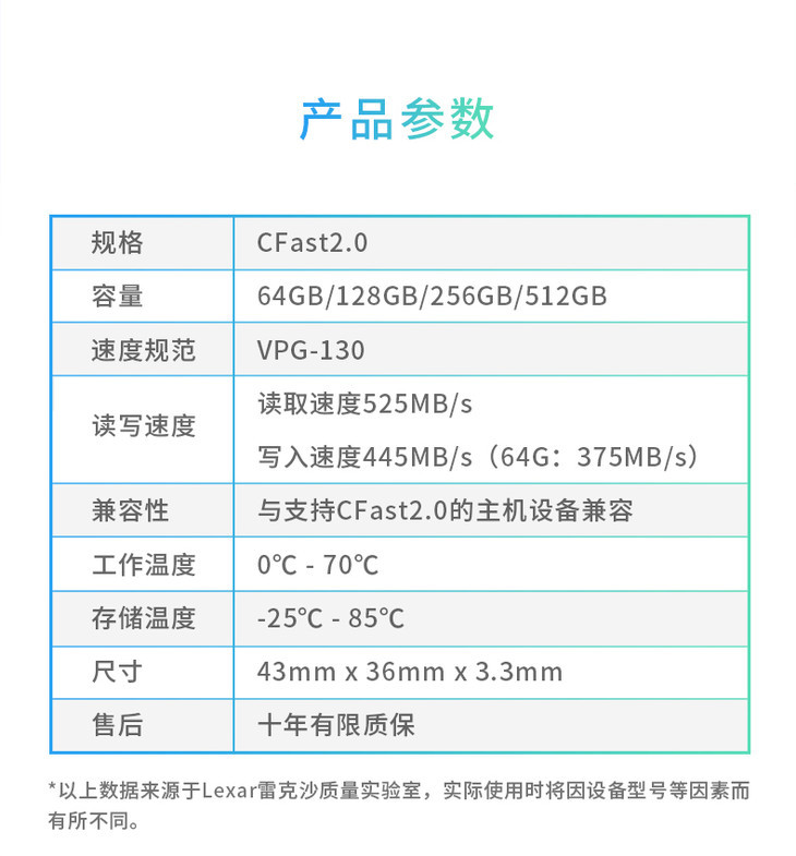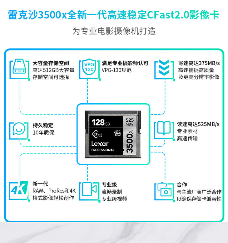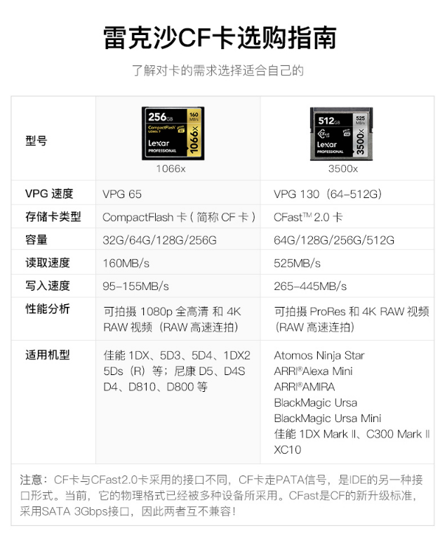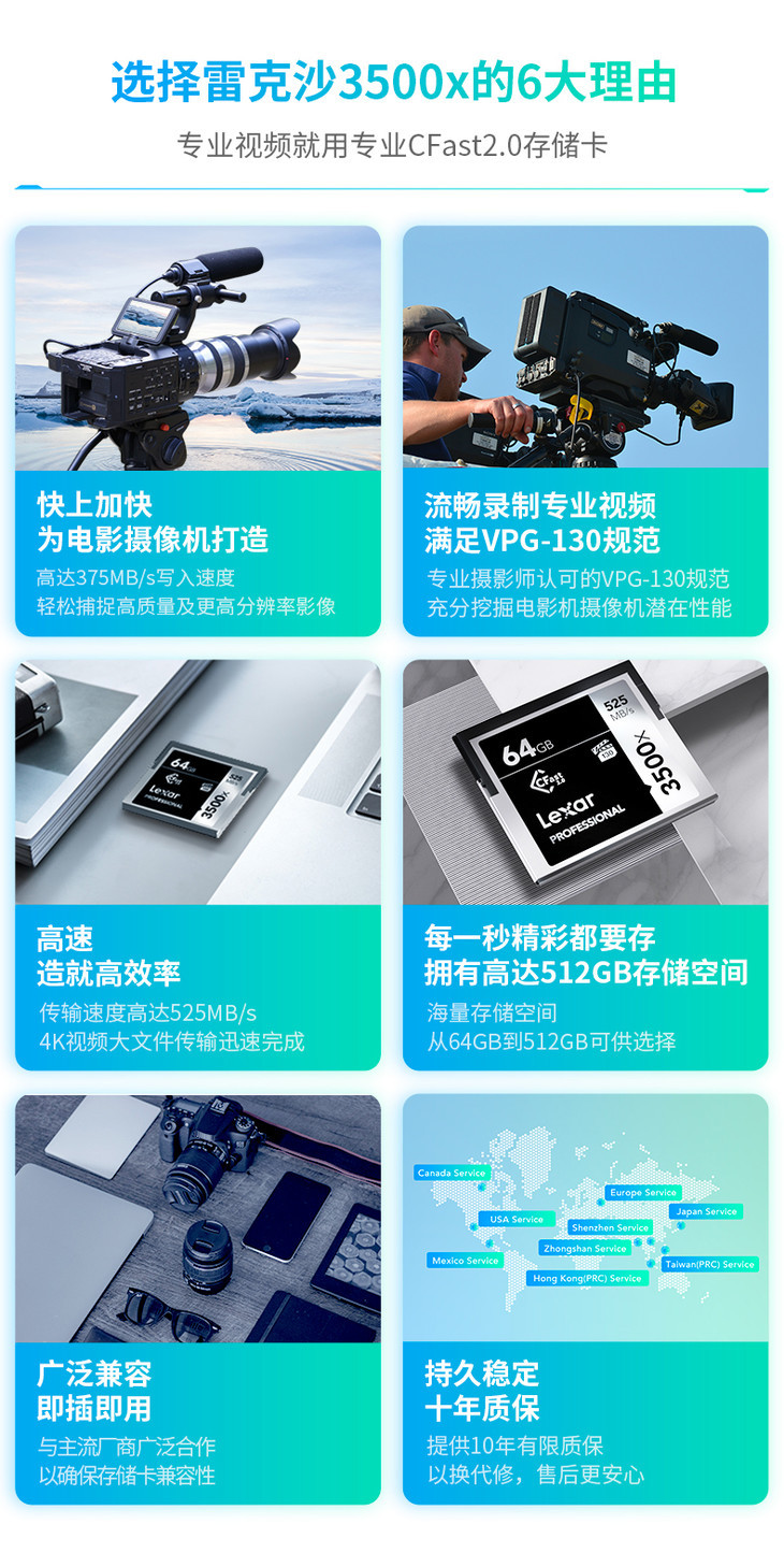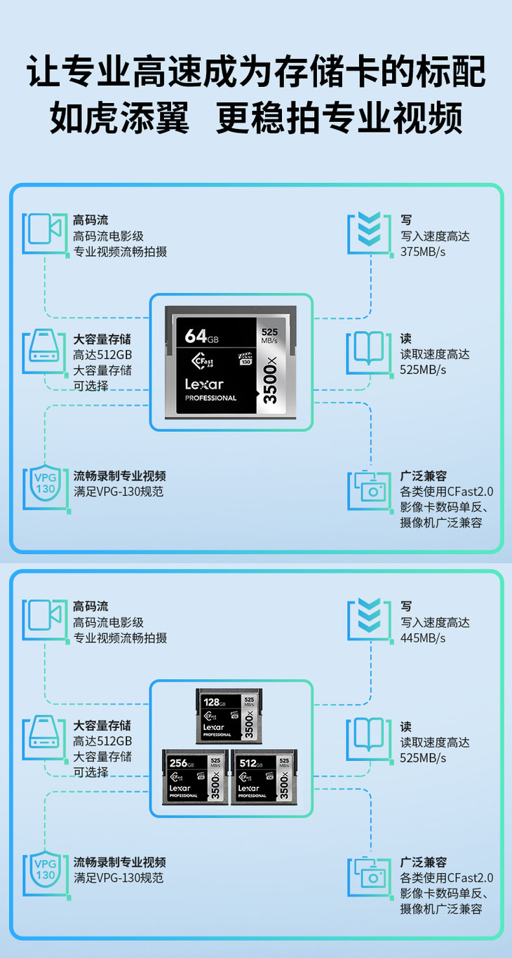 雷克沙CFAST存储卡 高清4K视频拍摄 摄影机适用