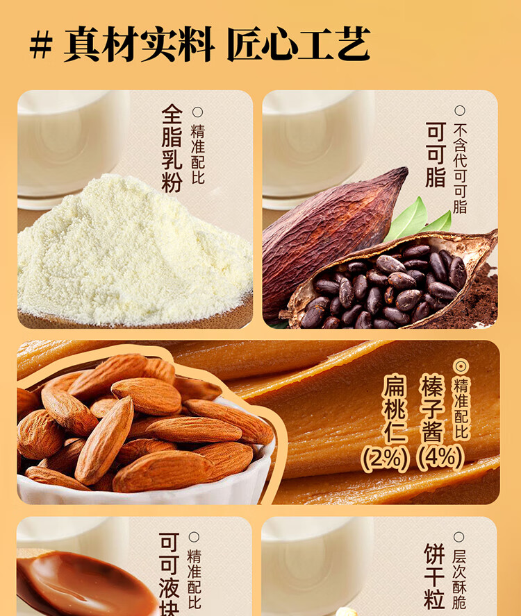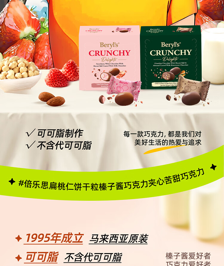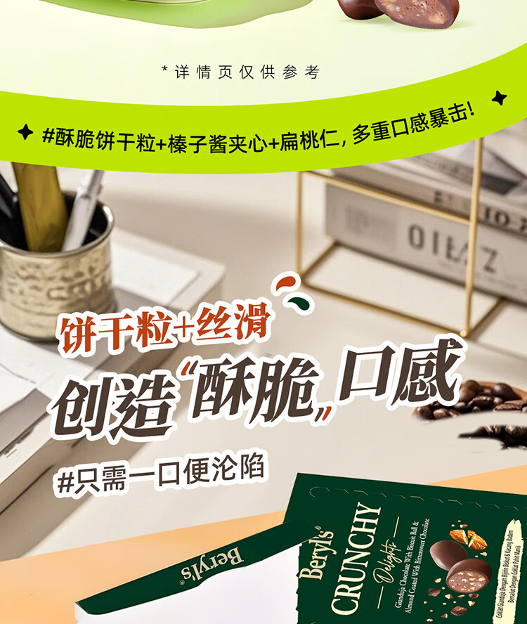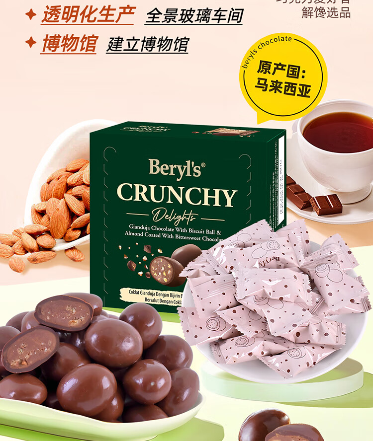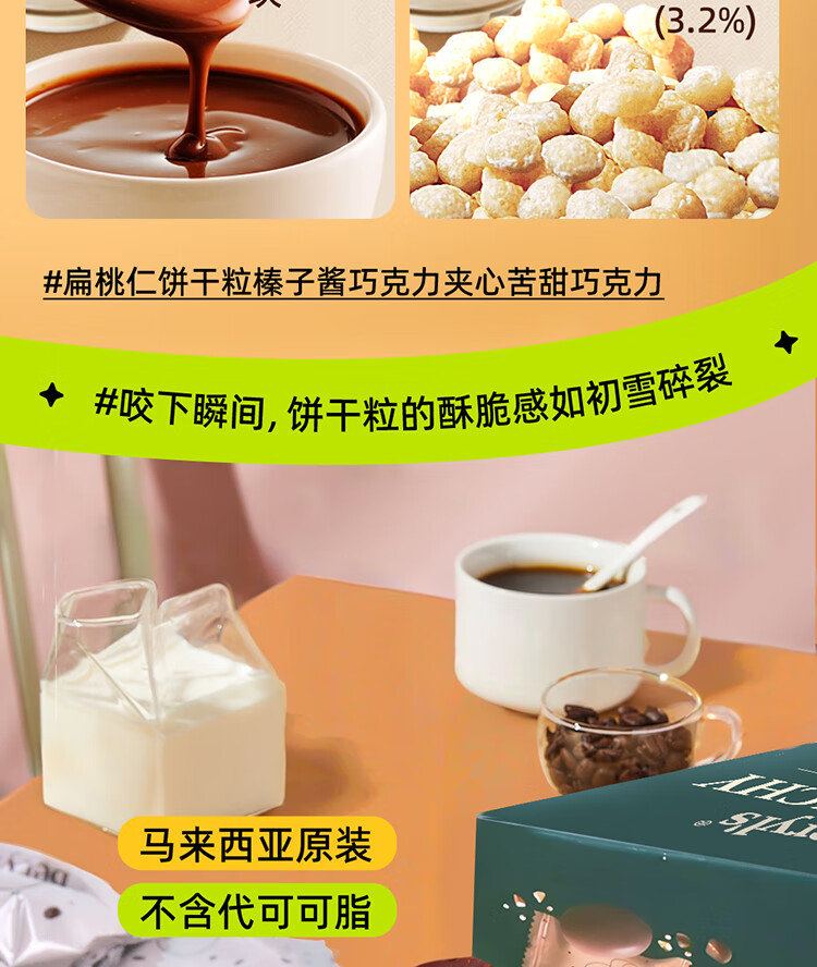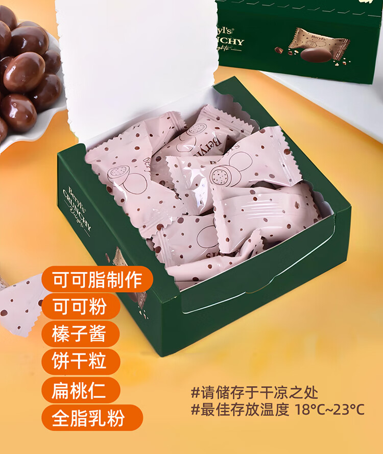 倍乐思扁桃仁饼干粒榛子酱巧克力夹心苦甜巧克力60g/044771 扁桃仁饼干粒榛子酱