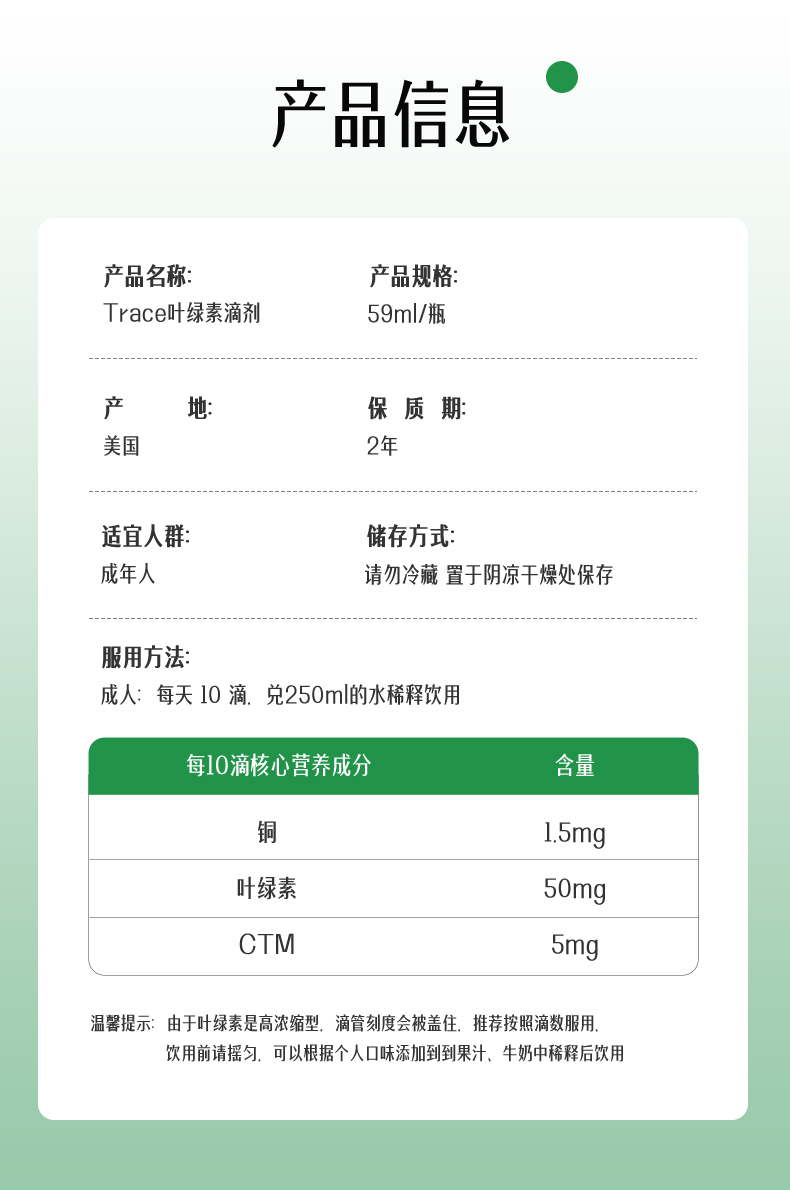 Trace牌浓缩离子叶绿素滴剂 59ml/瓶