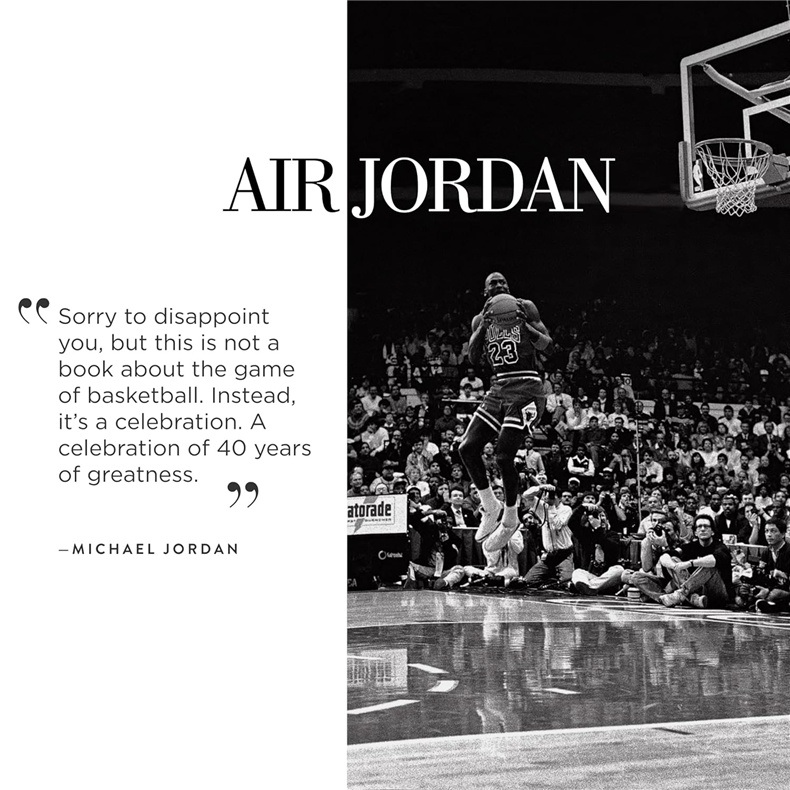这不是一本关于篮球的书,也不是迈克尔·乔丹的传记。它是获得授权的专著,旨在庆祝迈克尔·乔丹与乔丹品牌长达40年的合作关系——这一传奇故事超越了体育本身。
