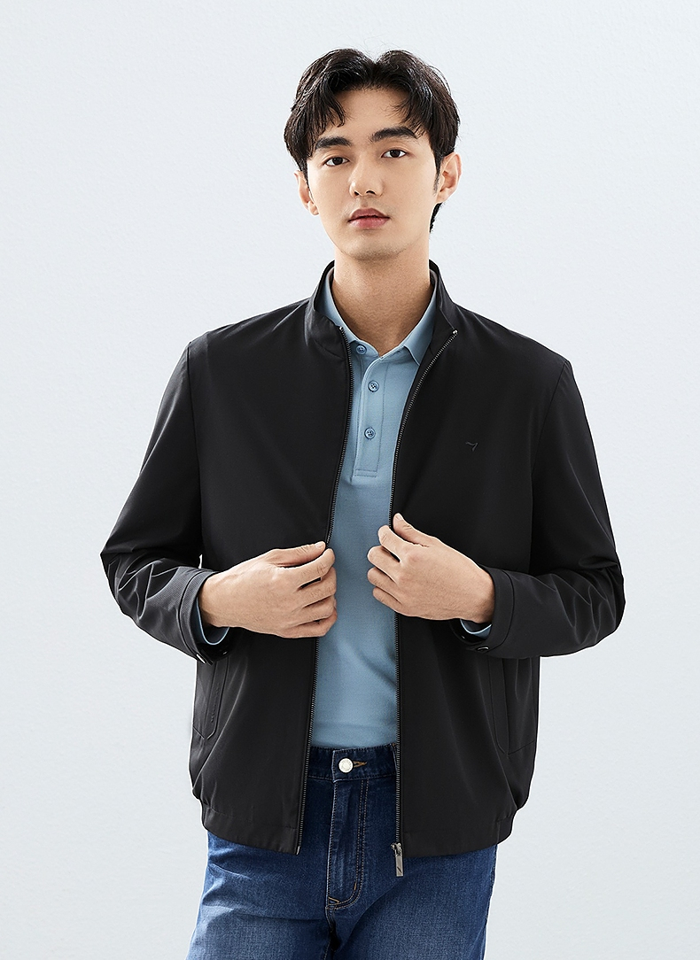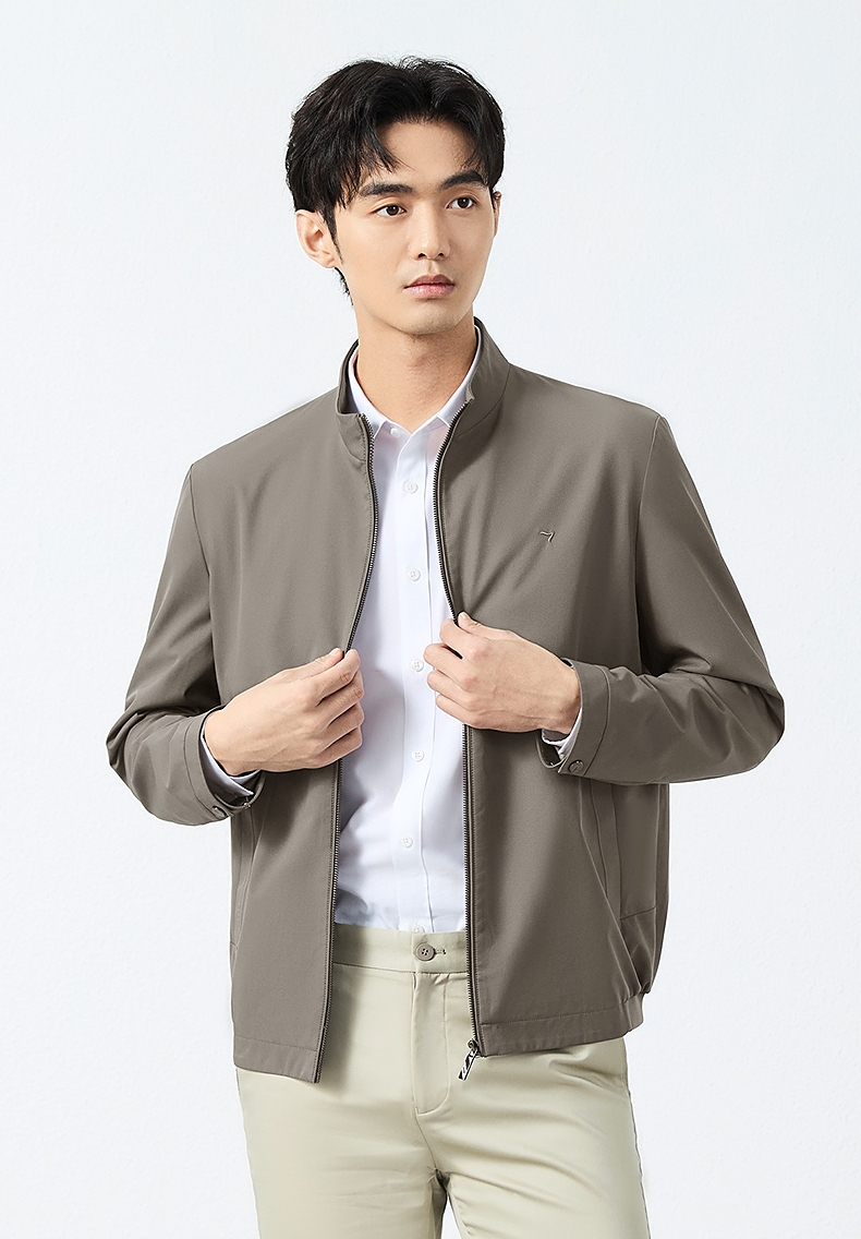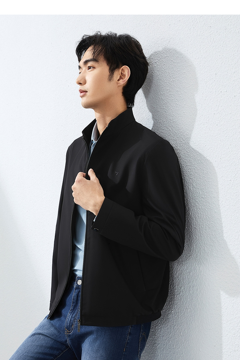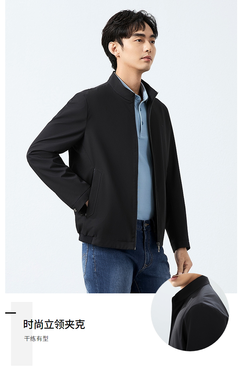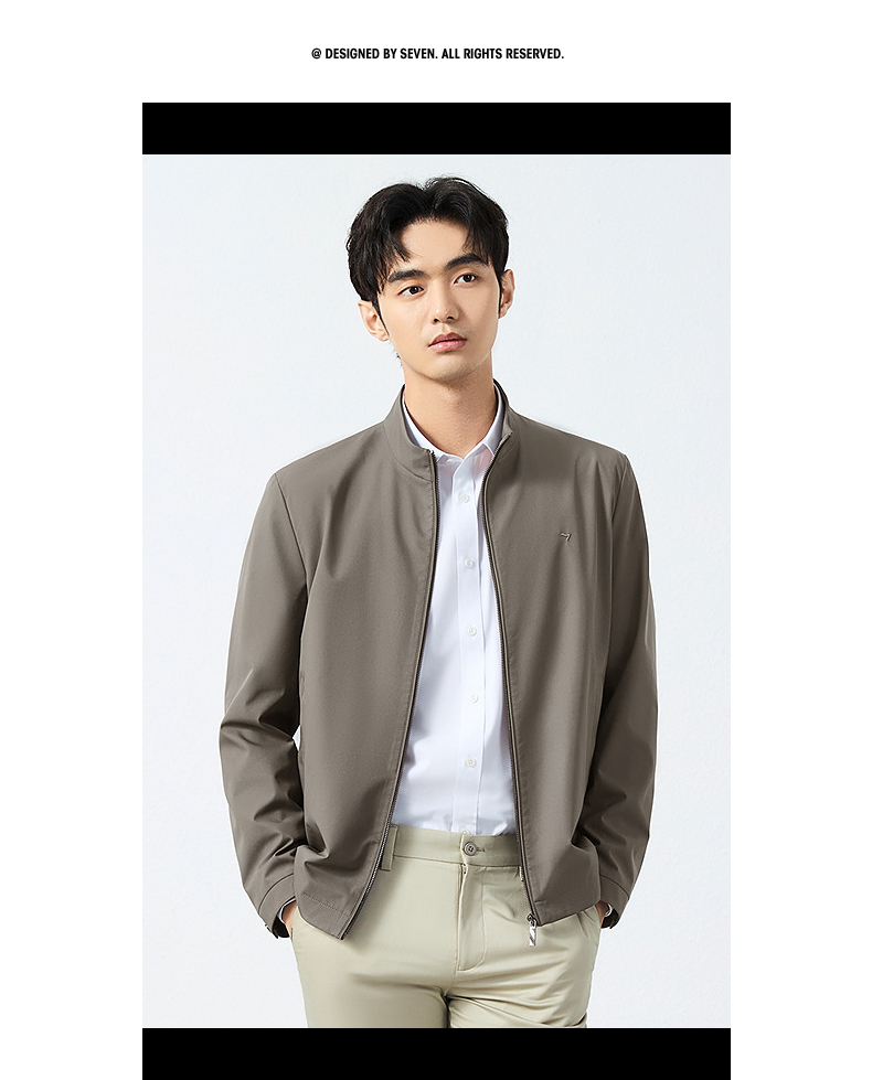 柒牌立领夹克男2025春季新款商务百搭暗条纹干部装休闲茄克衫外套128K70930