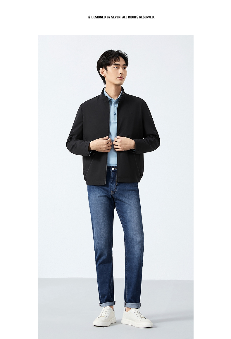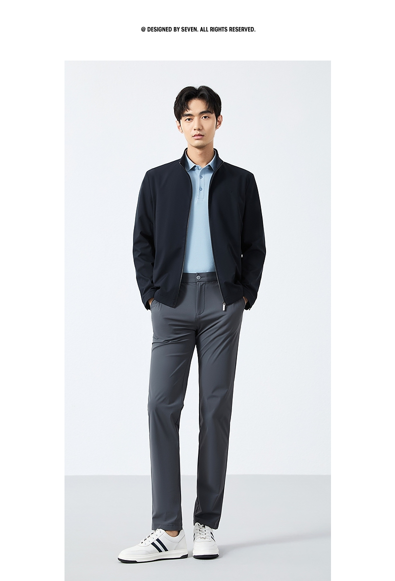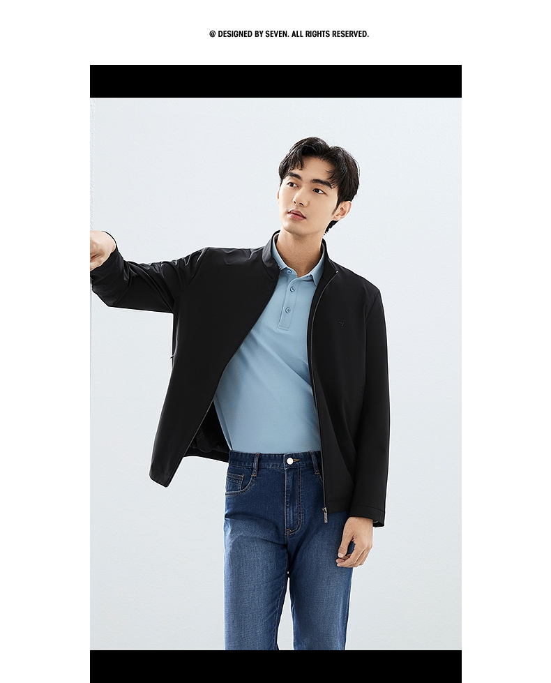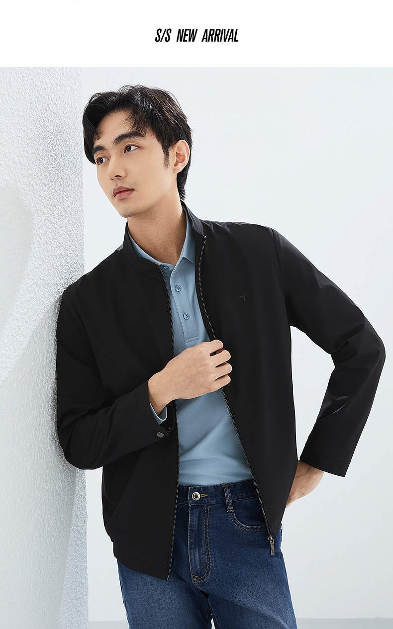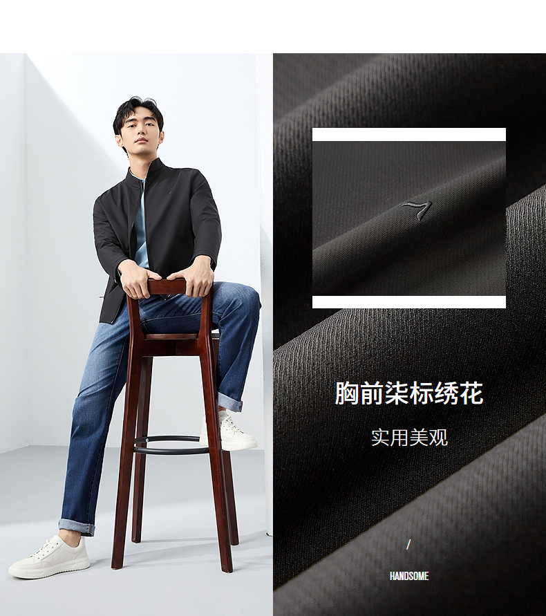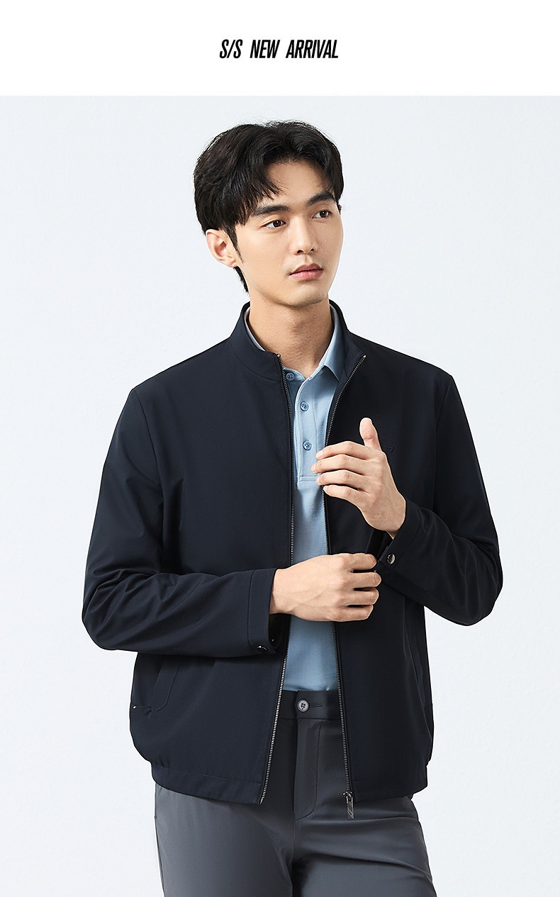 柒牌立领夹克男2025春季新款商务百搭暗条纹干部装休闲茄克衫外套128K70930
