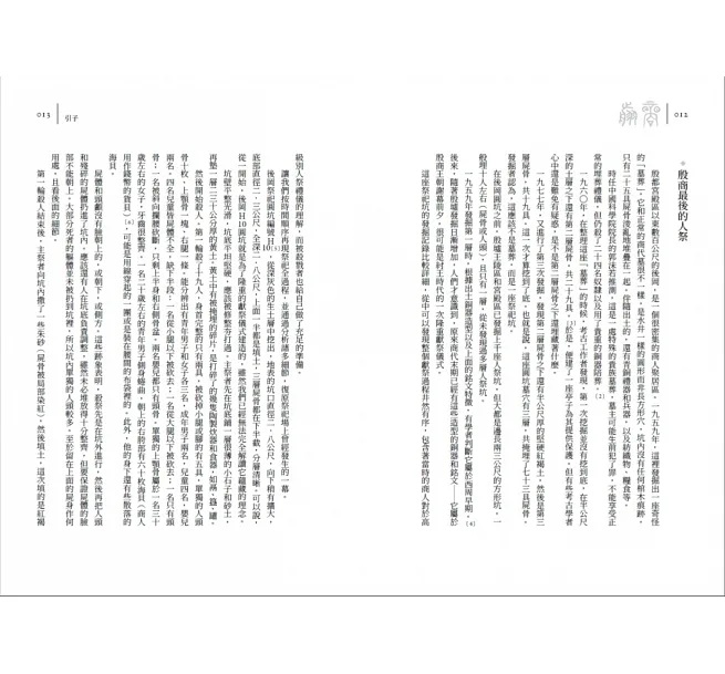 ★透過對各種出土墓葬、甲骨文的研究,分析《易經》、《詩經》、《尚書》的記載,復原了商朝用活人祭祀的歷史,提出了諸多大膽的假設,重新構建了夏、商、周的歷史。