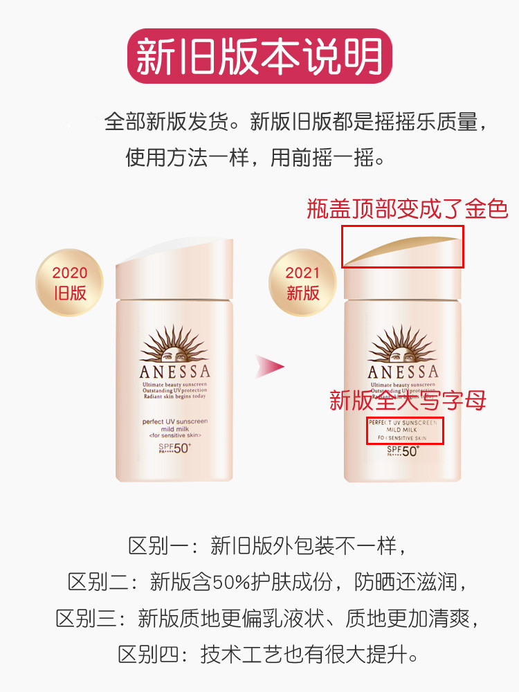 日本2021新款安耐晒粉金瓶儿童敏感肌防晒乳SPF50+60ml
