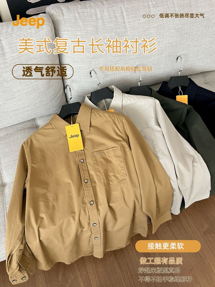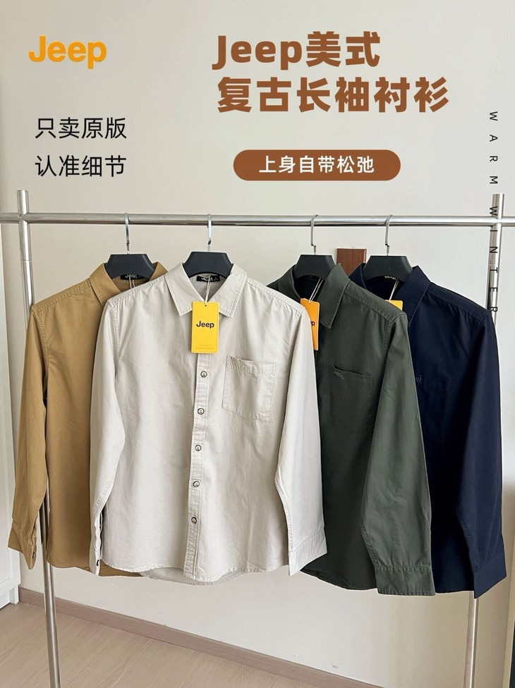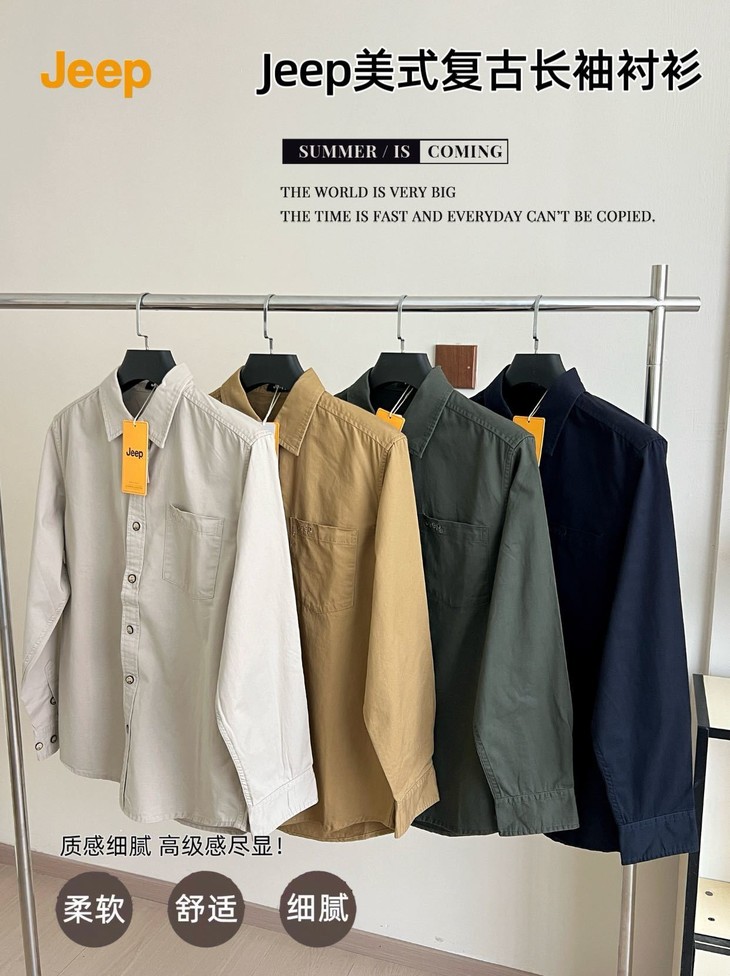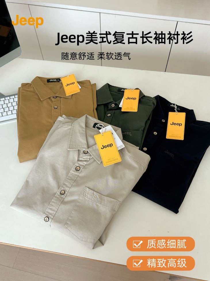 【JEEP吉普美式重磅衬衫】 1⃣️ 面料优质:面料经特殊处理,采用100%纯棉面料,穿着舒适透气,亲肤性佳。 2⃣️ 场合百搭:无论是日常出街、休闲聚会,还是轻度户外,都能展现得体穿搭风格。 3⃣️ 立体剪裁:经过立体剪裁工艺,版型挺括有型,上身不会软塌,能很好地修饰身形轮廓。 4⃣️ 工艺精湛:重工面料与工艺制作,走线工整,细节处彰显品质,专属品牌纽扣。 5⃣️ 落肩设计:落肩设计增加了肩部的活动空间,让肩部线条更显休闲大气,同时也能修饰肩型。 6⃣️ 复古廓形:延续美式复古廓形,经典且不过时,能轻松打造复古穿搭风格,契合复古潮流趋势。 🖤采用新疆长绒棉 ☁️手感舒适,因其纤维长、强度高,非常适合纺制纱线,用于生产高端衬衫