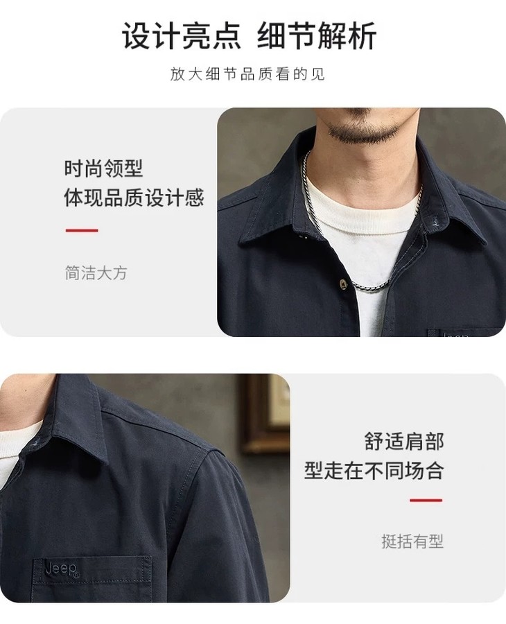 🖤 JEEP吉普美式重磅衬衫|简单即高级😎 这款衬衫经典领口设计更加百搭修饰脸型~ 能够更好的展现男士身材!,整体挺括有型穿上遮肉显瘦❗️,多尺码可选包容性更强!拒绝花里胡哨❌
