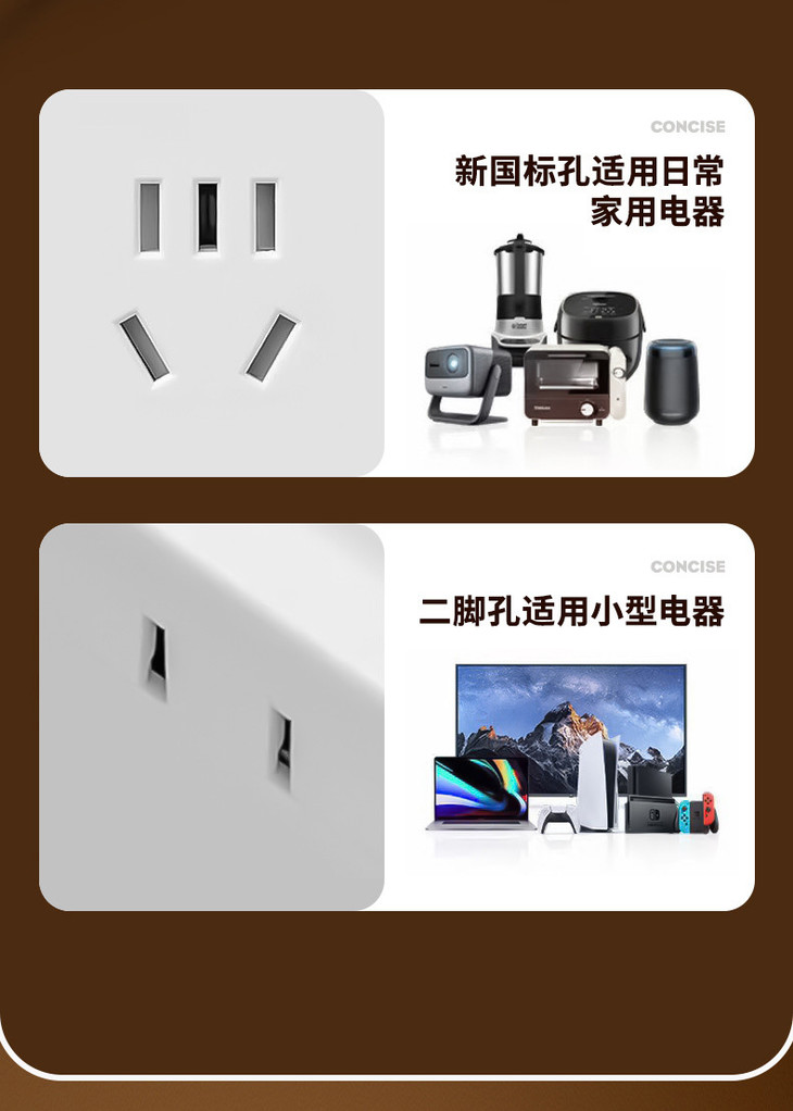 🔷国标插孔双孔*4、三孔*2 是大插头使用也互不影响的大间距孔位🔌 可以满足不同装置设备的同时使用