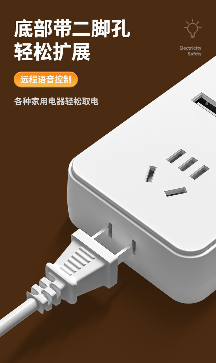 底部还带一个二脚插孔哦 吹风机、电风扇等各种小家电轻松取电 这才叫“会过日子”的插座