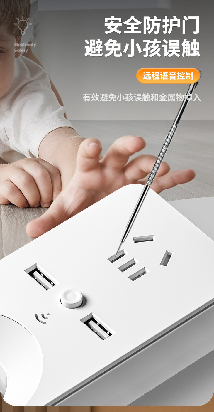 🔻插孔里藏着灵活的安全门 熊孩子拿钥匙乱戳?NO WAY! 小手指好奇探索?直接劝返! 安心用电,交给它就对了