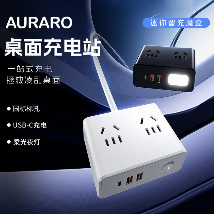 你是不是也这样👇 手机、平板、电脑、台灯、加湿器…… 插头永远在抢同一个插座 线缠成一团乱麻,每天拔插N次心态爆炸 宅家的你是不是经常插座不够用 别急,今天给大家推荐两款「插座终结者」 AURARO智能语音小夜灯插座