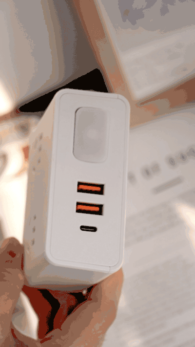 🔻丰富多接口,全面兼容 🔷白色款两枚/黑色款四枚USB数据线直插口 🔷一枚Type-C直插口 放客厅、放书桌、放床头、放办公室 比传统只有三孔五孔插位的插线板要灵活更多 再也不需要一个充电器插插拔拔 不停地换线给相机充、给手机充、给平板、耳机、风扇充
