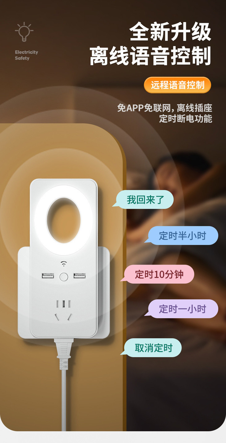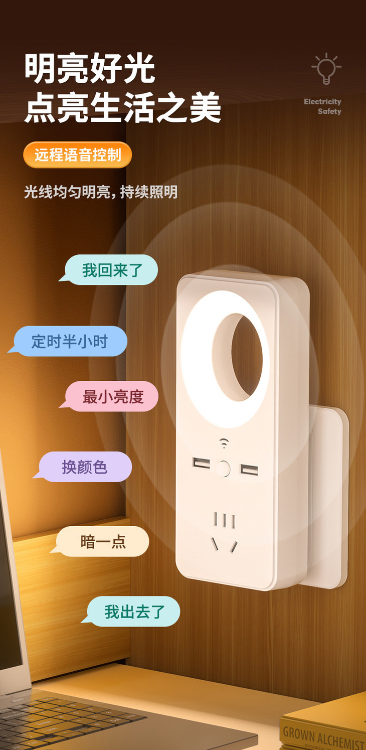 ✅床头神器|AURARO智能语音小夜灯插座 是插座,是夜灯,更是你的私人床头管家! 含国标插孔双孔*2、三孔*2 、USB直插孔*2 🔺一句话声控开关🔺 三档光随心切换 🔺三角插直接上墙🔺小巧不占地 尤其适合怕黑党、哺乳妈妈、起夜党 一句话亮灯,安全感爆棚!