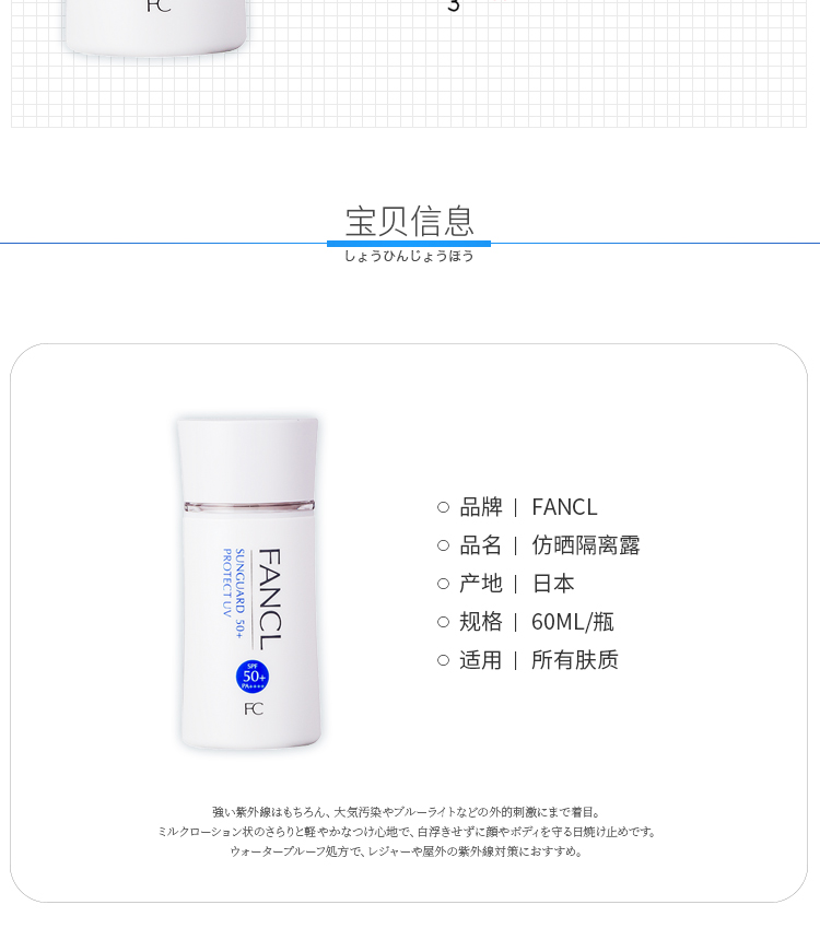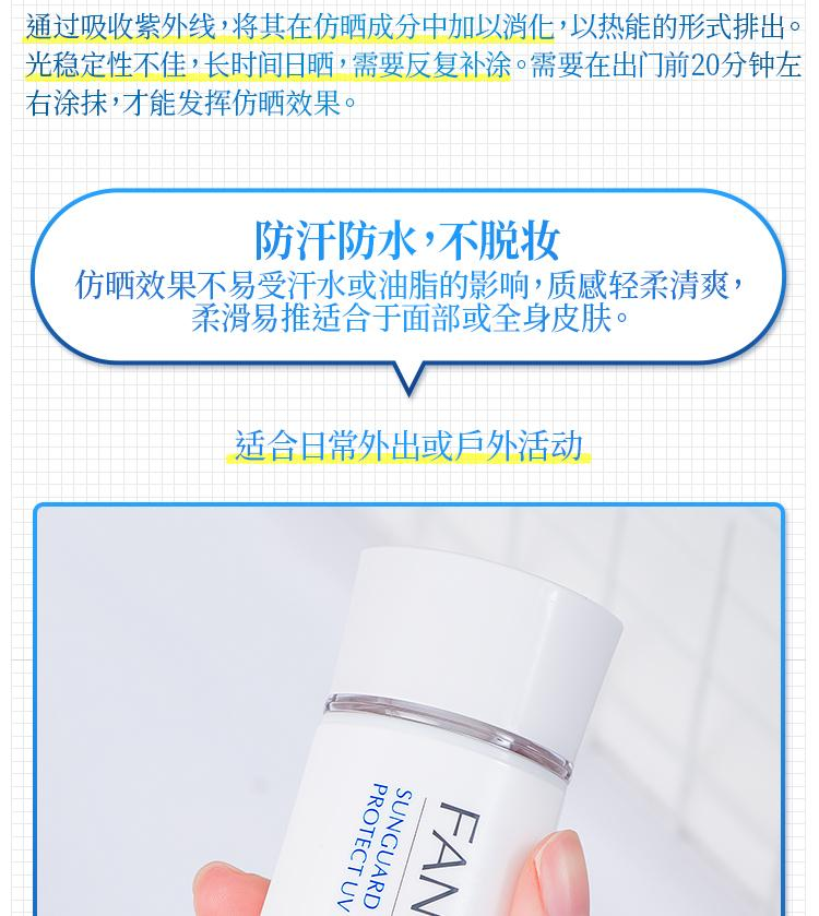 【爆款超低价预售 急单慎拍】新款日本专柜版FANCL芳珂物理防晒乳霜隔离60mlSPF50+孕妇可用