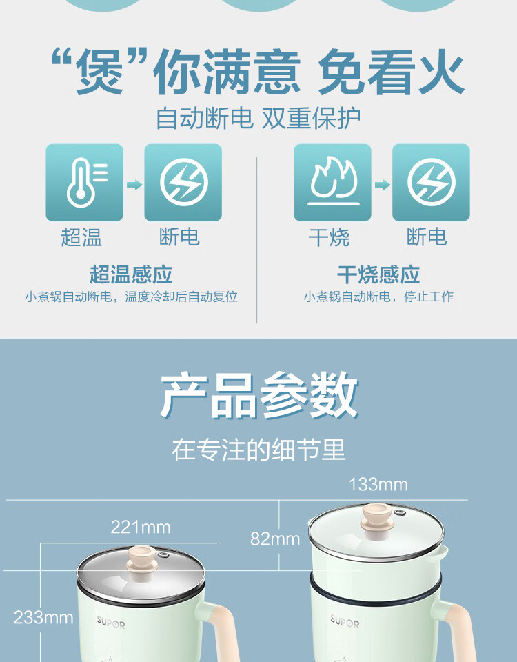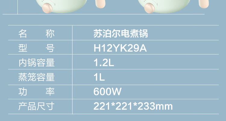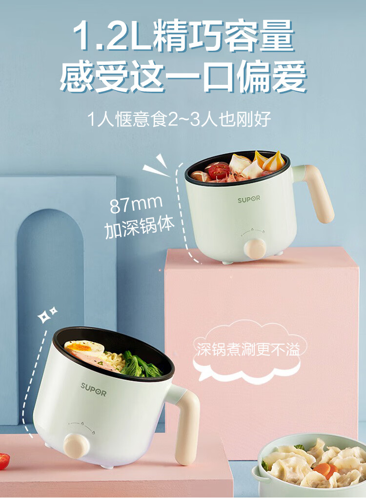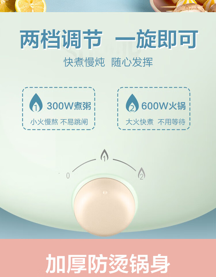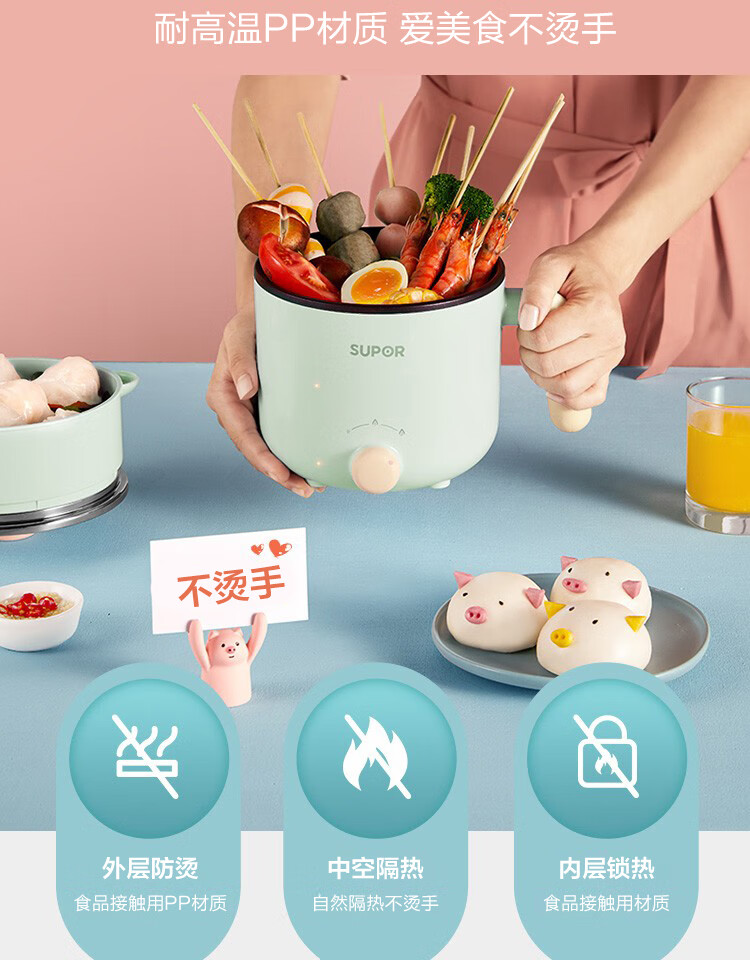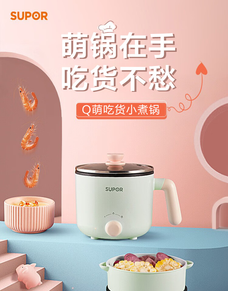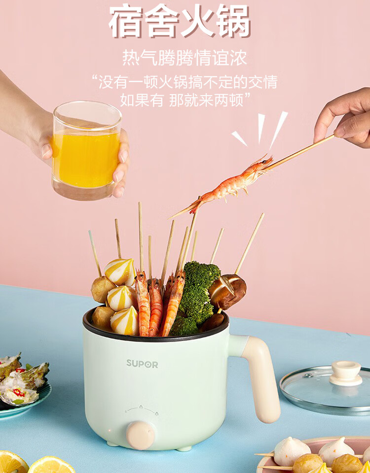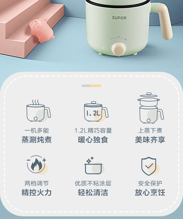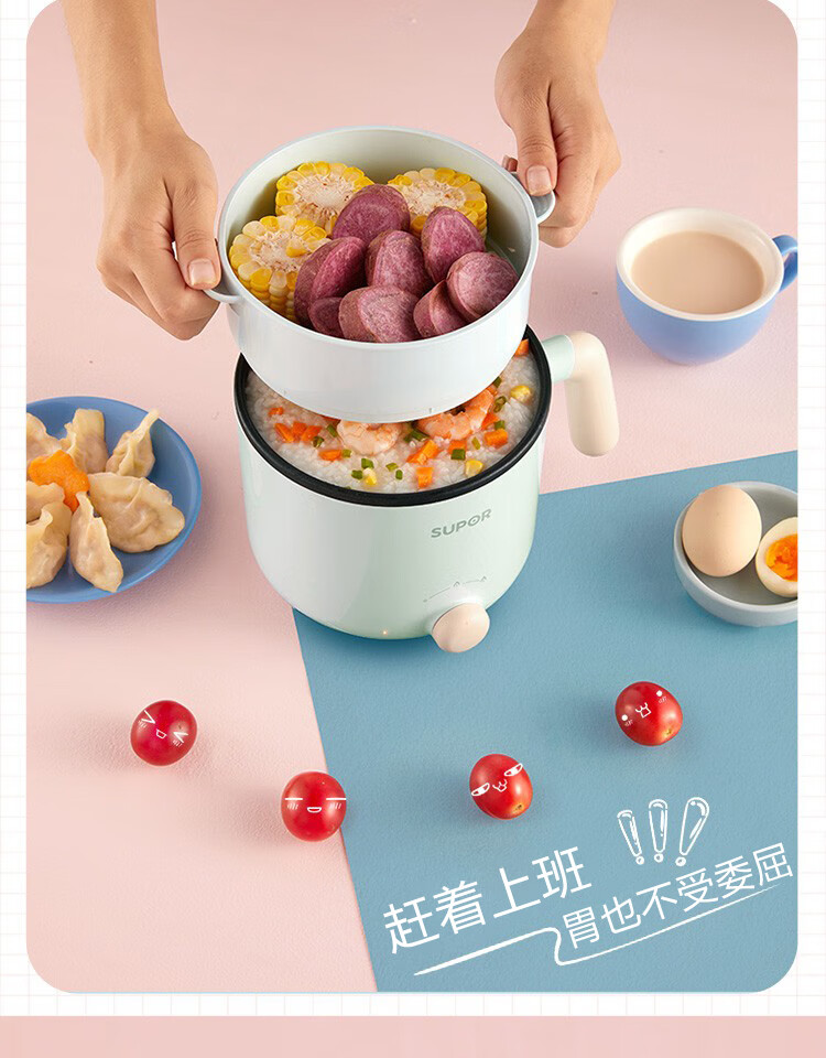 苏泊尔(SUPOR)电蒸锅ZMD安心系列 600W 不沾内锅 蒸炖煮涮 极简旋钮 2档火力电煮锅 H12YK29