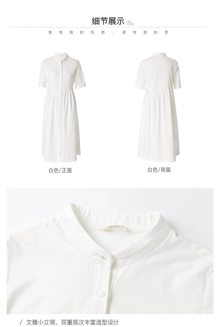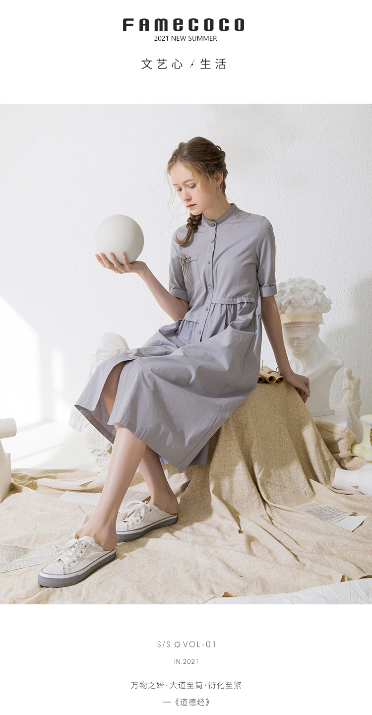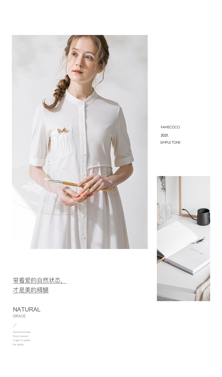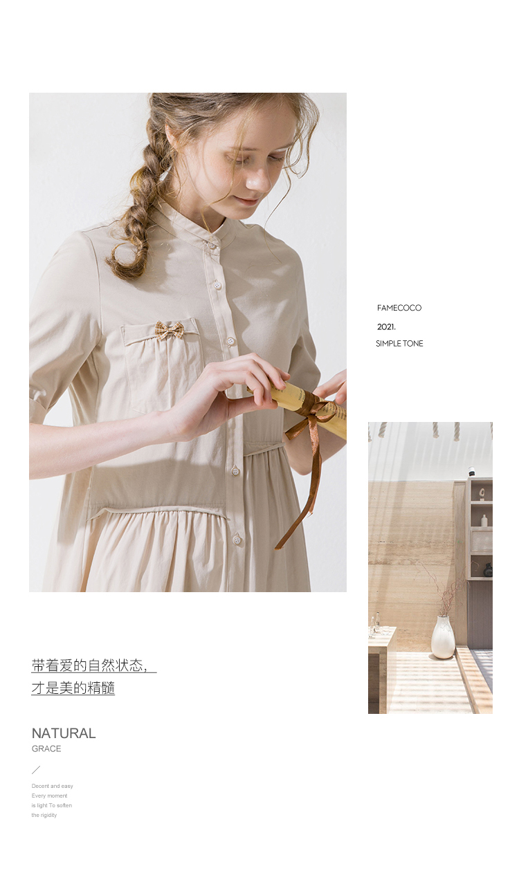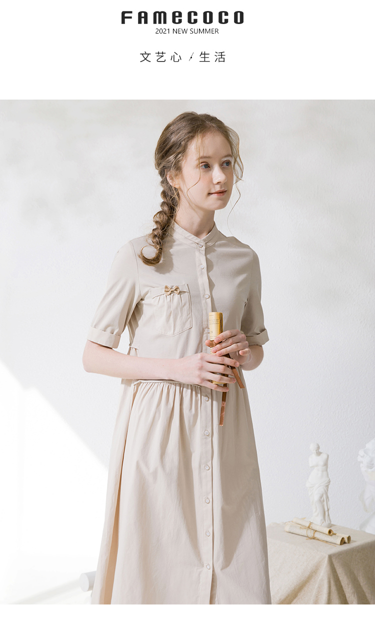 Famecoco范可儿衬衫裙夏季短袖立领连衣裙裙子F213FA001