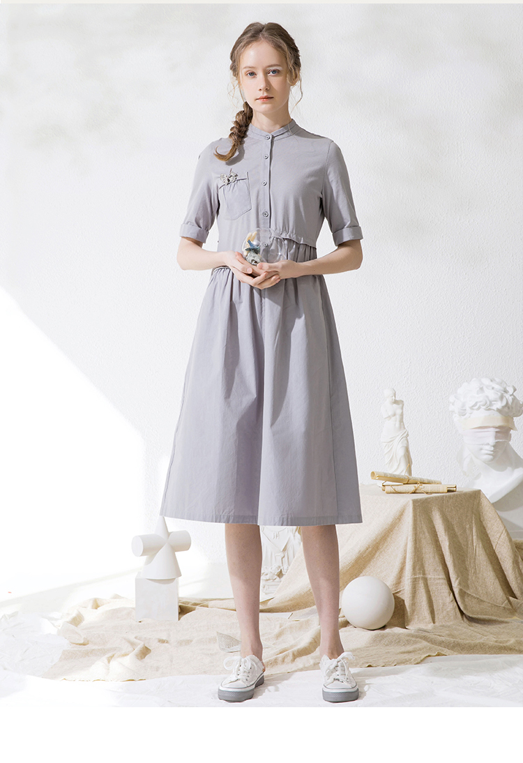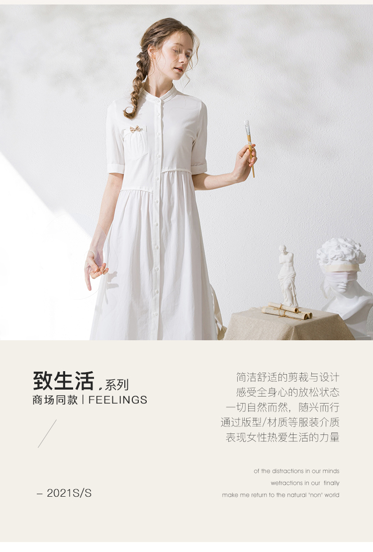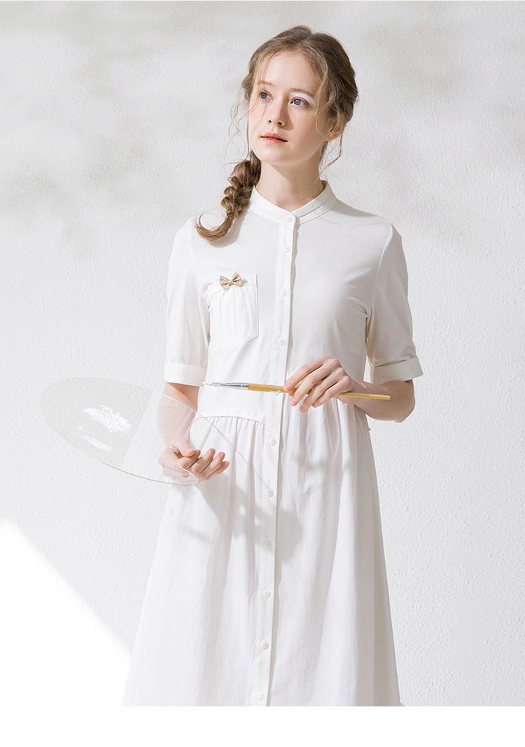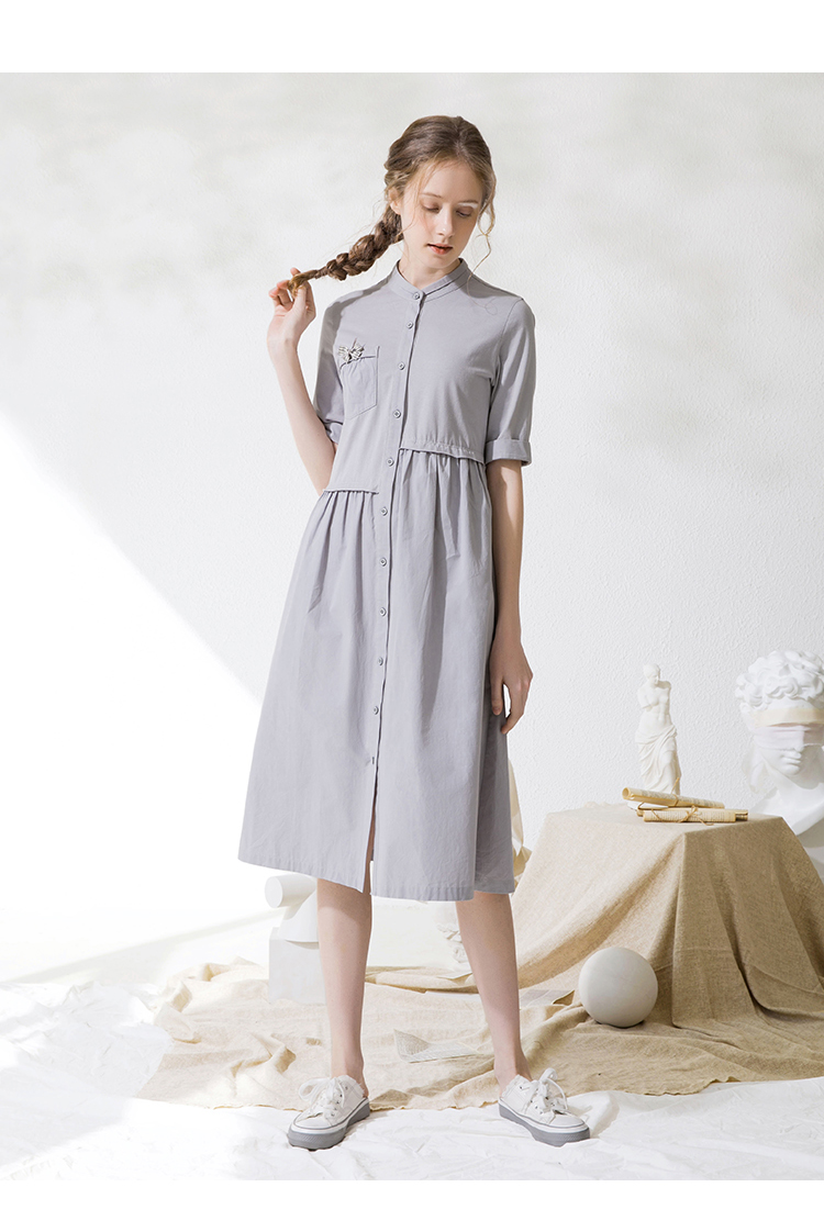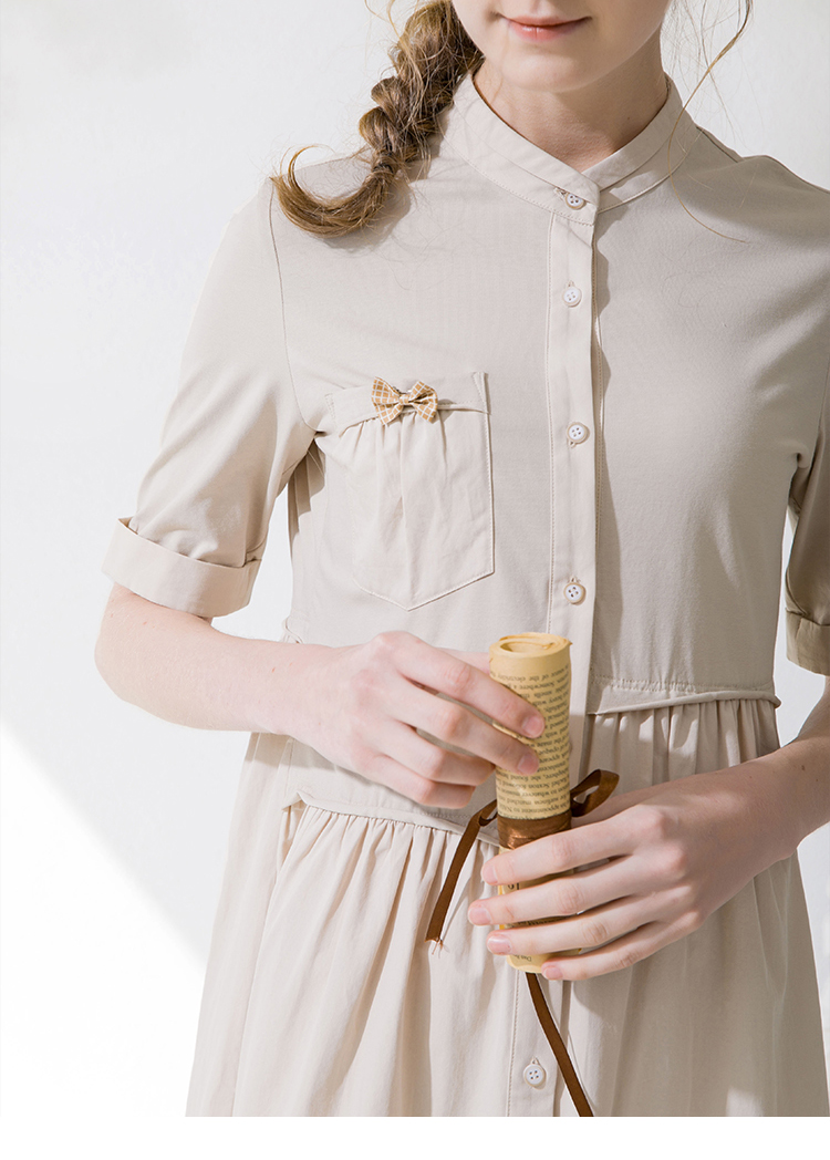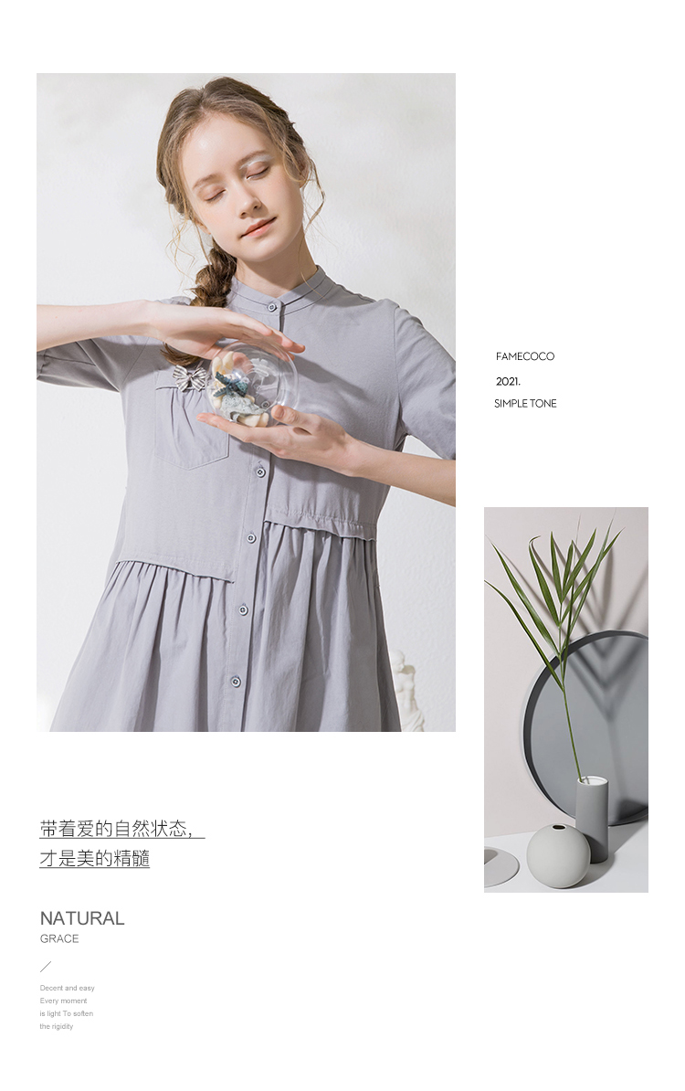 Famecoco范可儿衬衫裙夏季短袖立领连衣裙裙子F213FA001