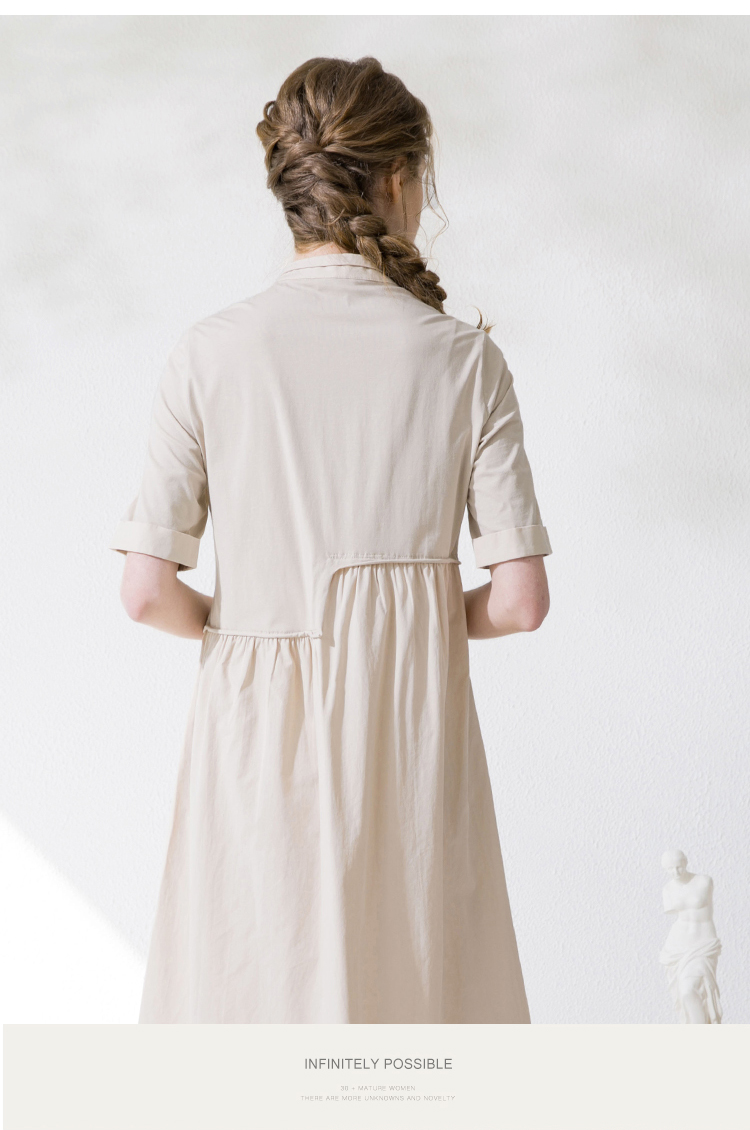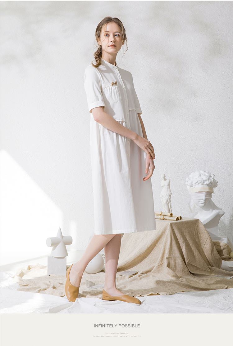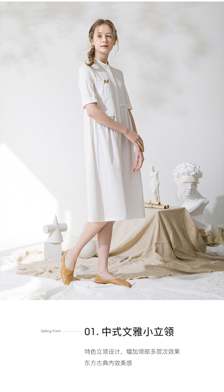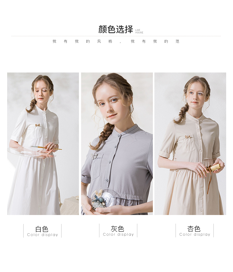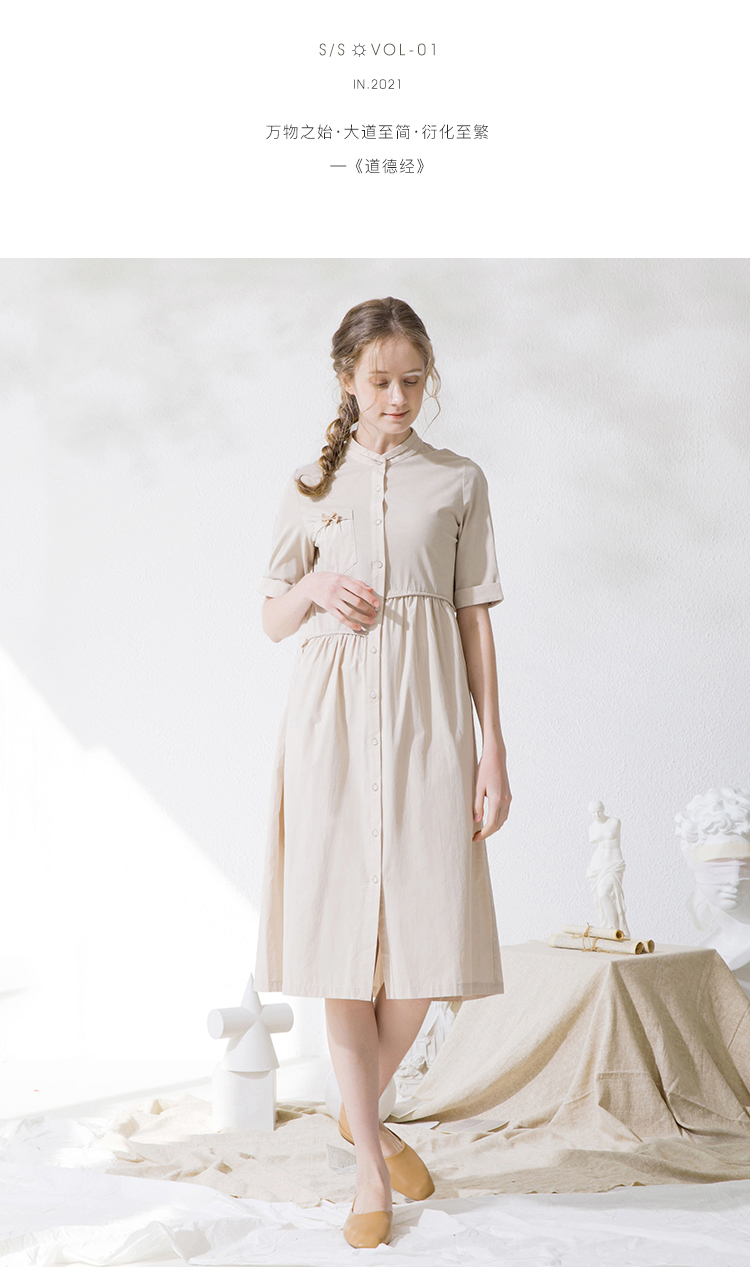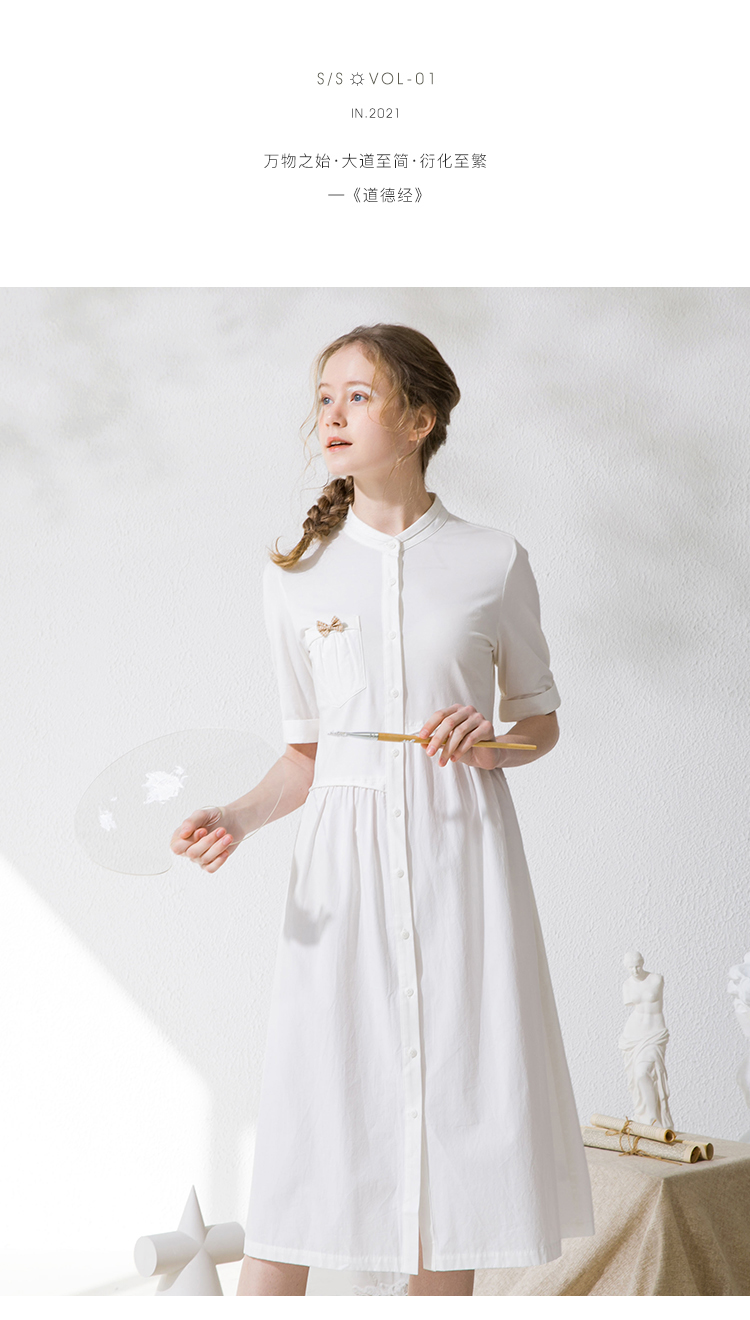 Famecoco范可儿衬衫裙夏季短袖立领连衣裙裙子F213FA001