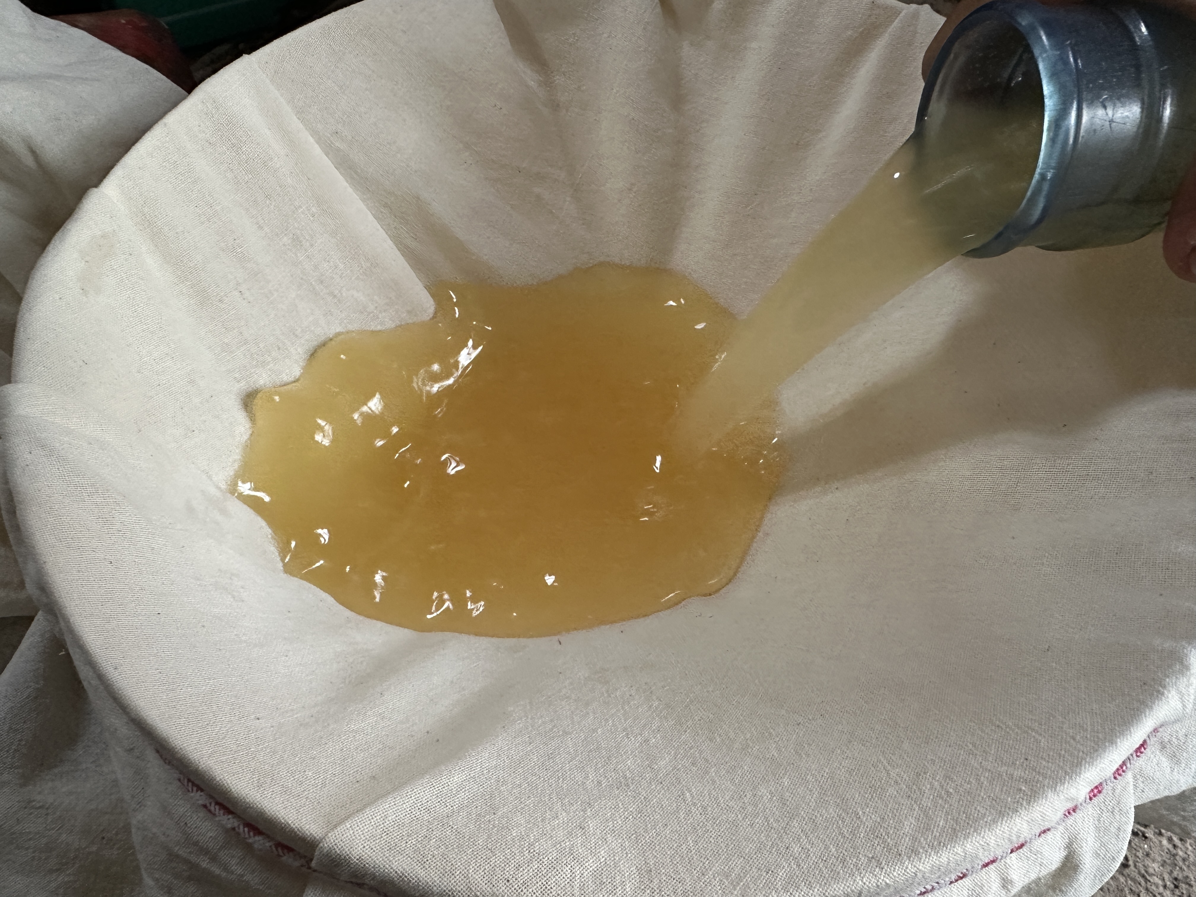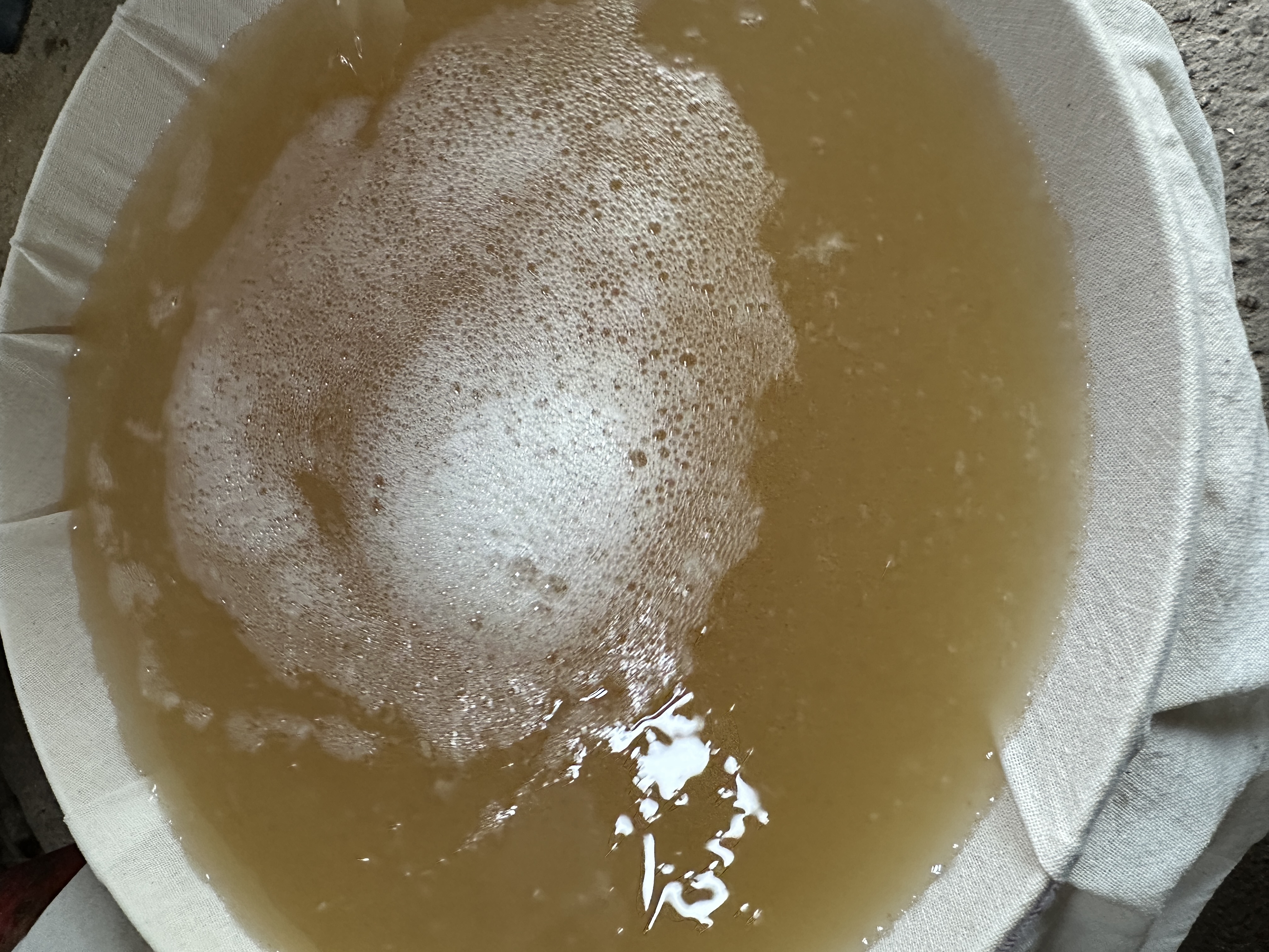 首先要准备好酸浆,吧上次搜集的酸浆进行过滤,留取酸浆不难,难的是酸浆的保存,尤其是不同季节下不同温度,因为酸浆里面都是活性微生物,如果温度和外界的条件不合适,酸浆都会变质,尤其是夏季高温,酸浆的保存是非常关键,这也是酸浆豆腐最难能可贵的地方,我们吃的豆腐没有一点点的化学物质,都是对人身体健康的微生物。