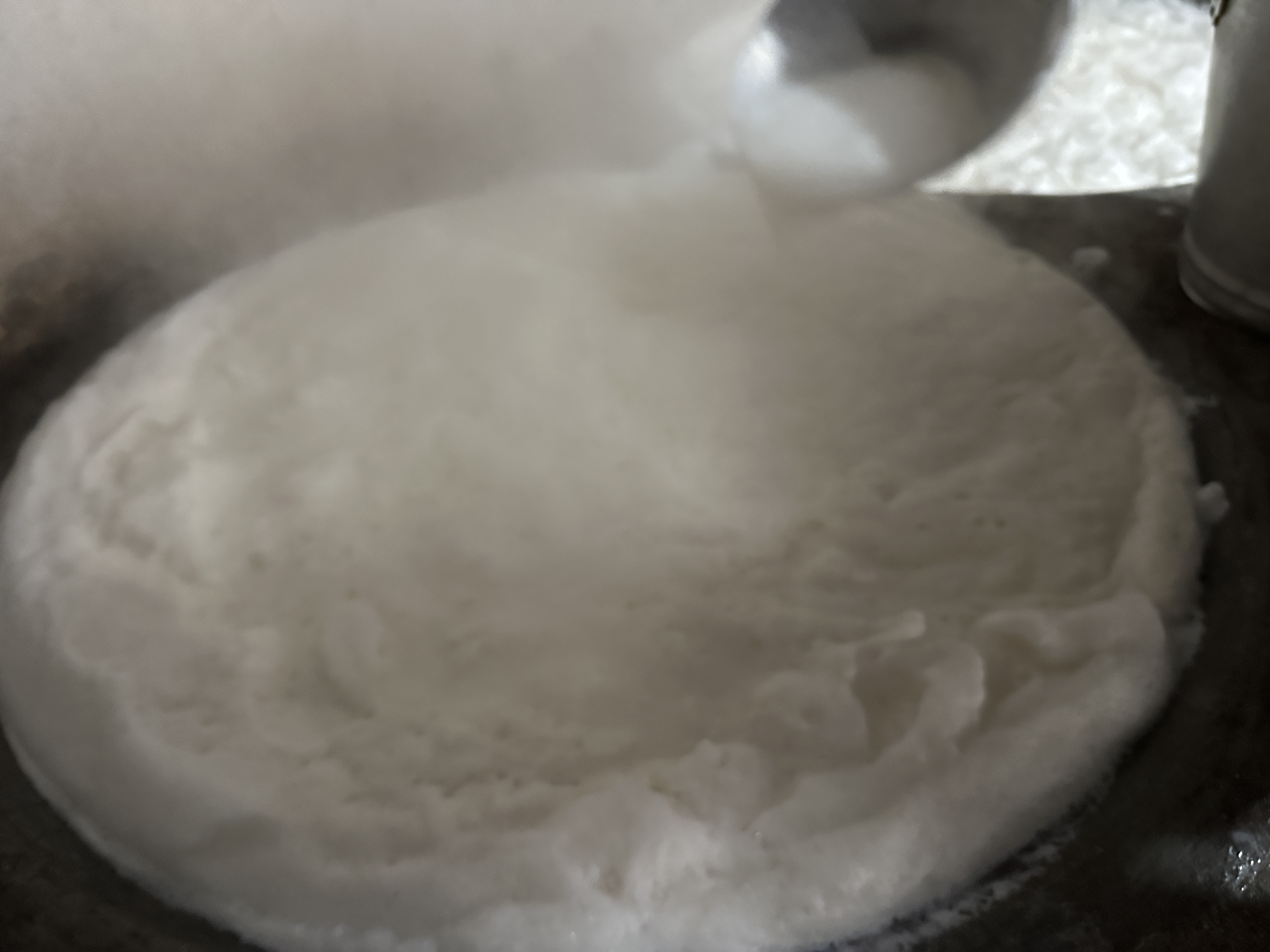 准备好豆浆后,就正式开始煮豆浆,未来保证最好的效果,我们用了柴火灶进行煮豆浆,这种柴火灶煮出的豆浆更香,更有能量。而现在大多数城市做出的豆腐都是用电锅煮的,没有条件使用柴火灶,这也是我们豆腐一个特有的优点。
