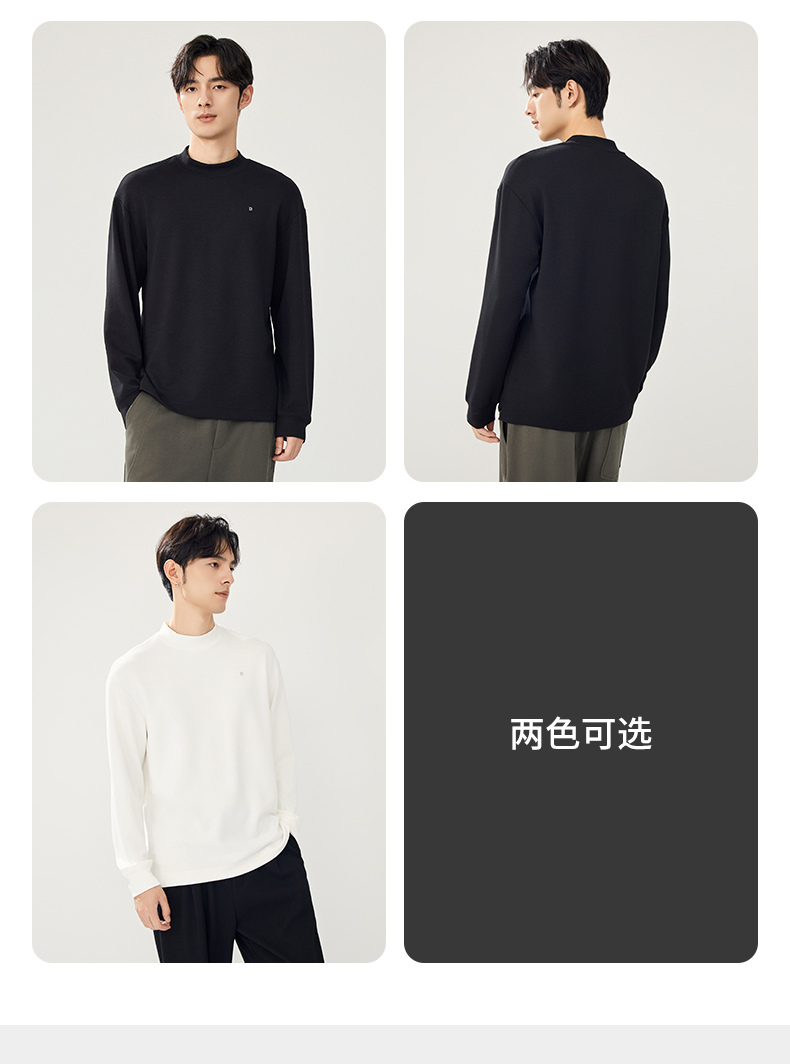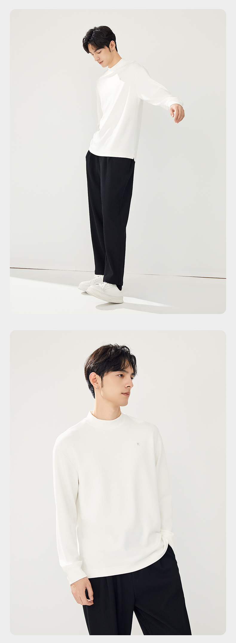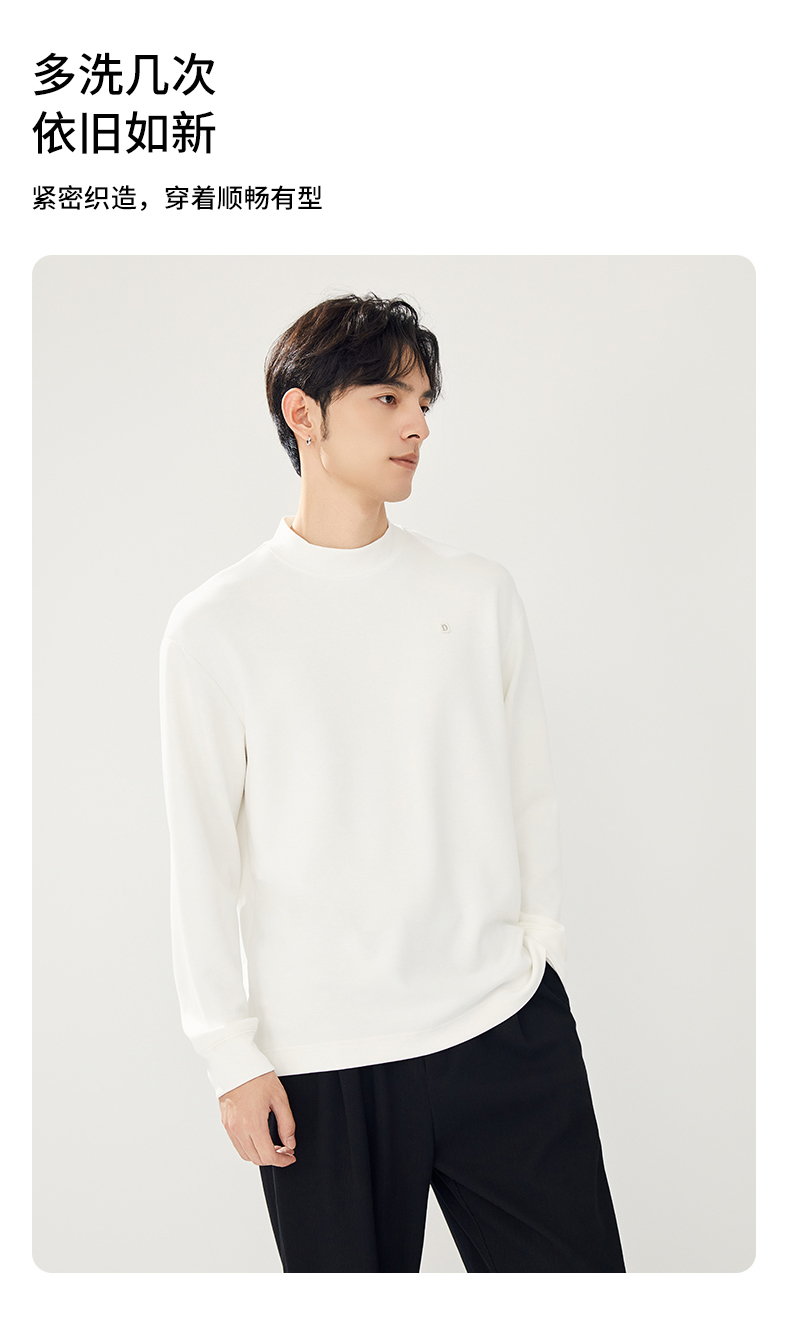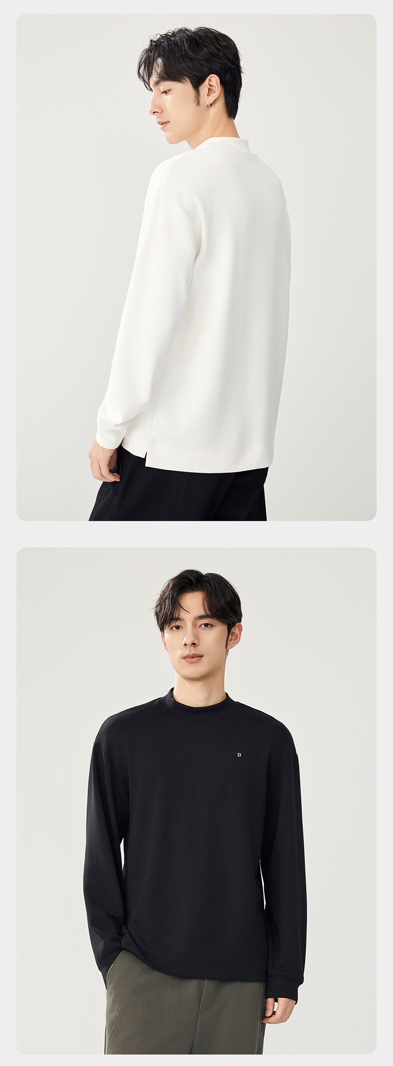 贝纳川秋季新品半高领黑白长袖经典T恤ECT313001