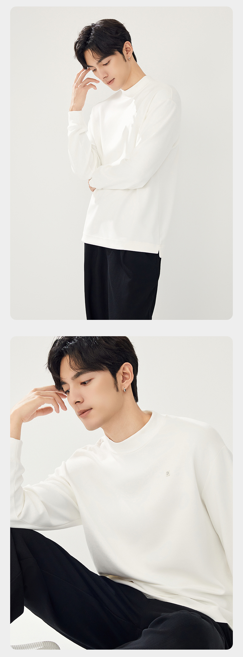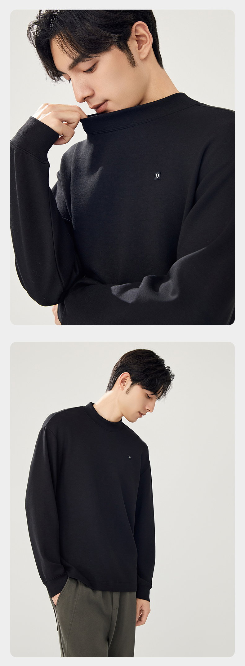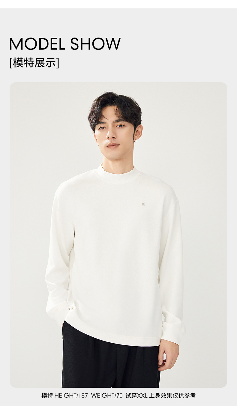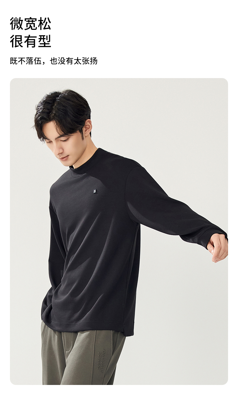贝纳川秋季新品半高领黑白长袖经典T恤ECT313001