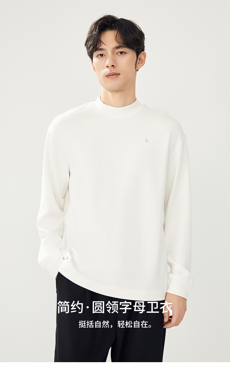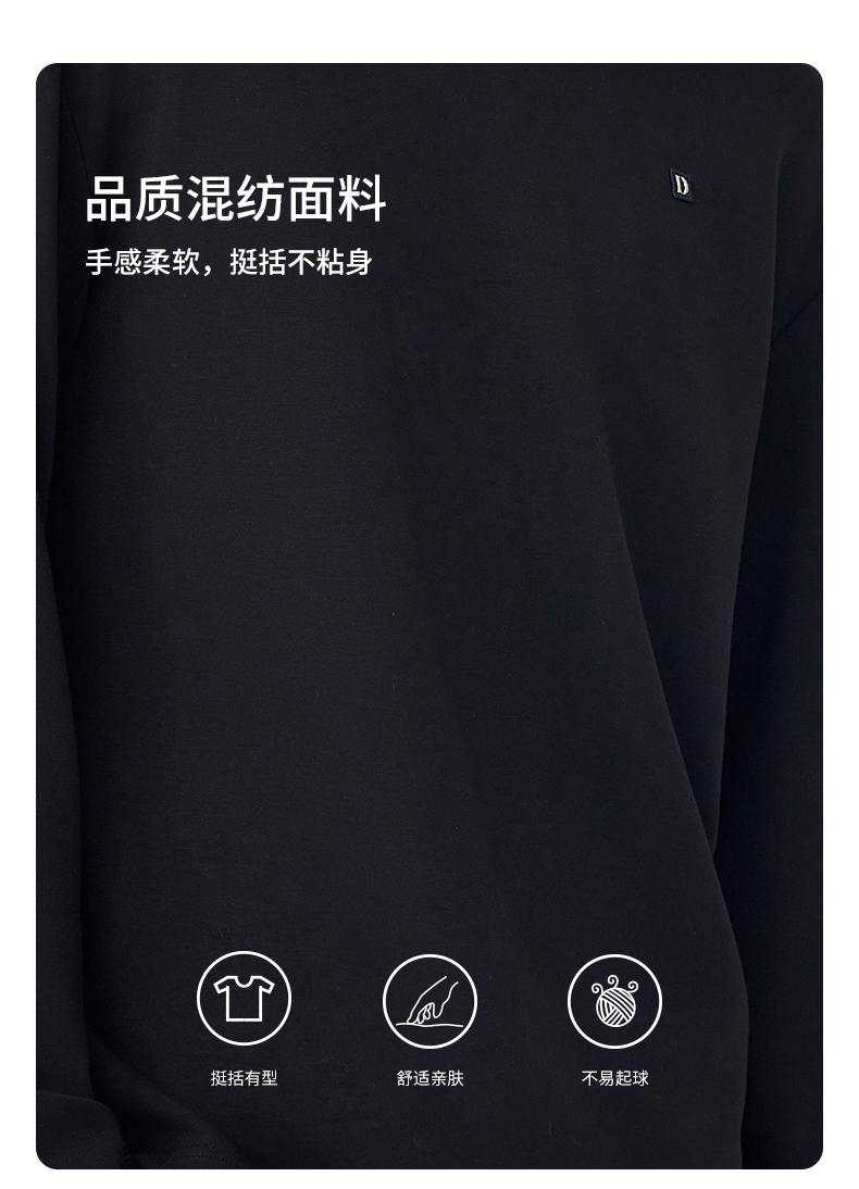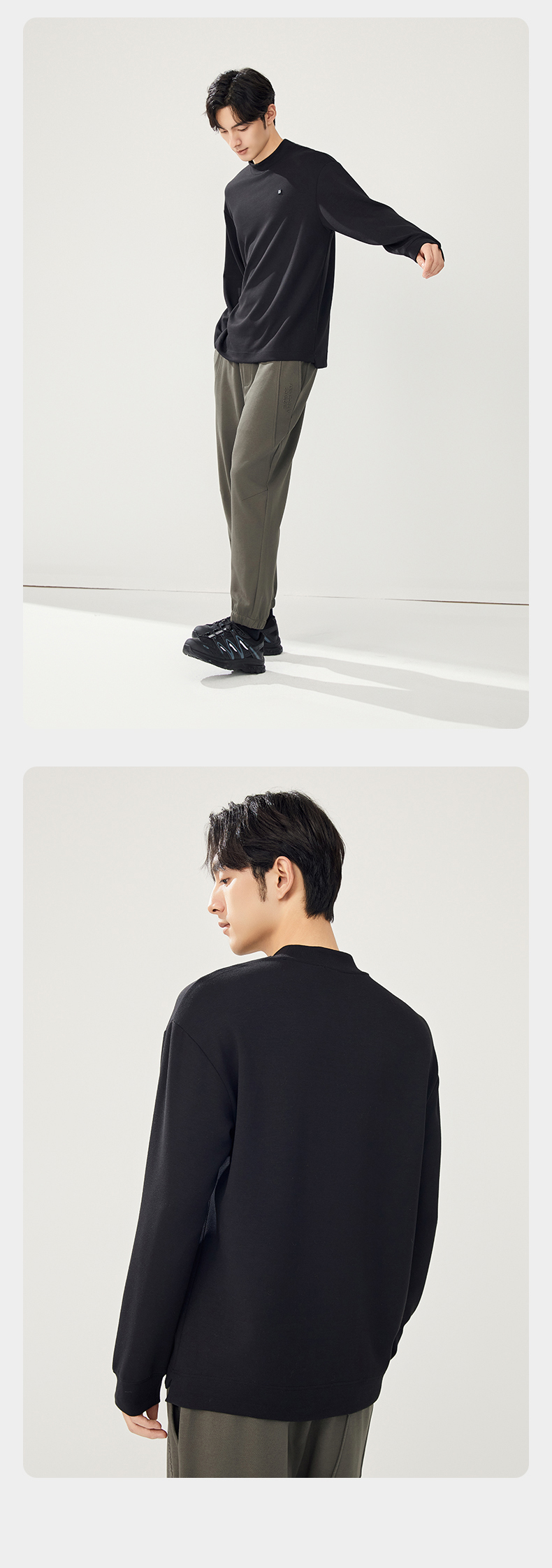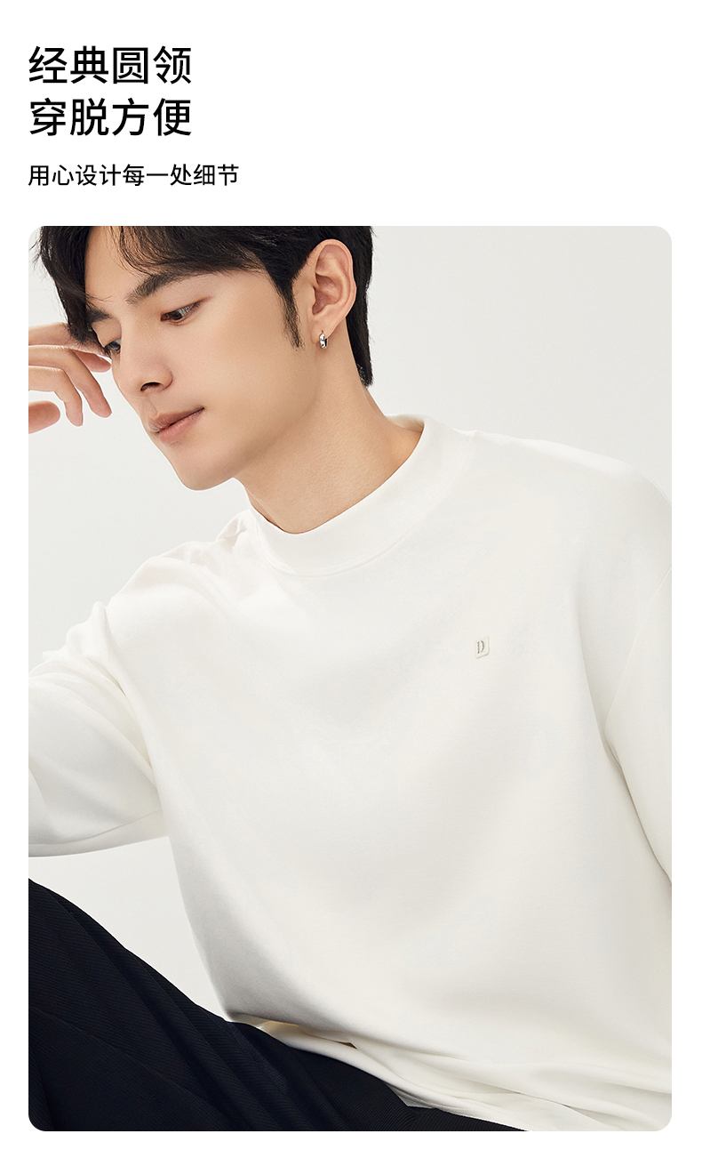 贝纳川秋季新品半高领黑白长袖经典T恤ECT313001