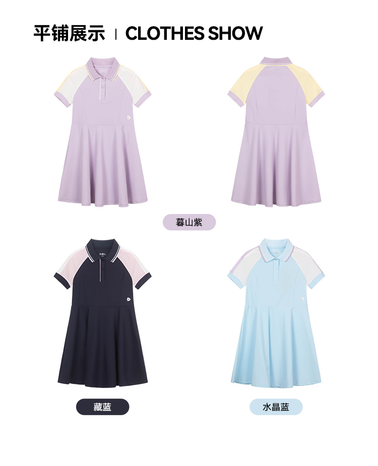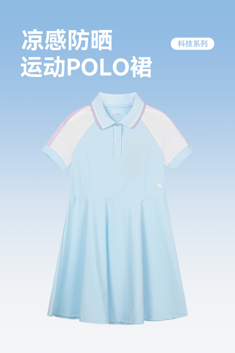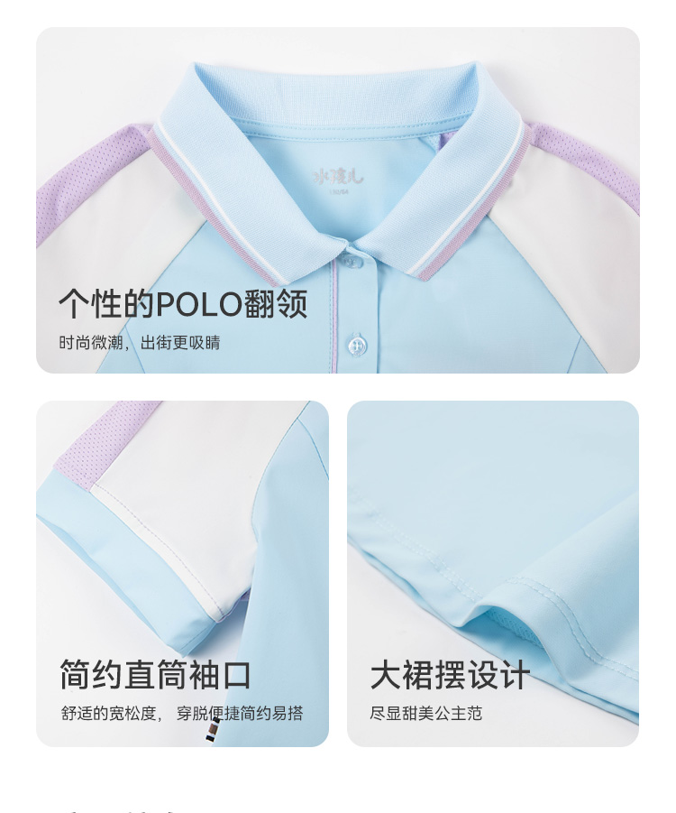 水孩儿童装夏季新款女童防晒凉感连衣裙女孩POLO领高弹力运动上衣甜美裙子
