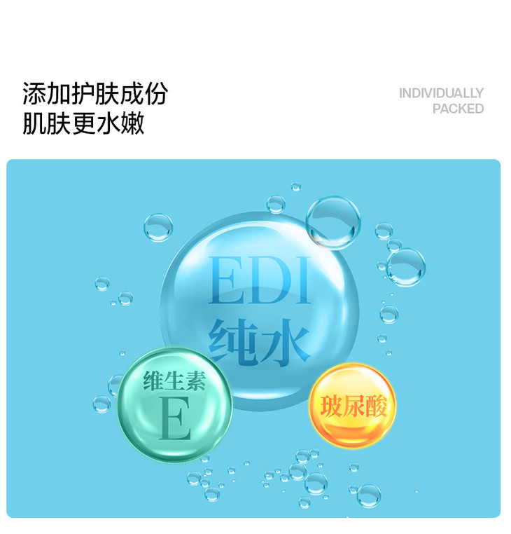 ❣️纯水配方,无添加,温和清洁,适合敏感肌和宝宝使用。 ❣️高密度纤维材质,温和清洁不刺激,给肌肤最温柔的呵护。 ❣️50片装纯水湿巾,给全家带来安心清洁体验。