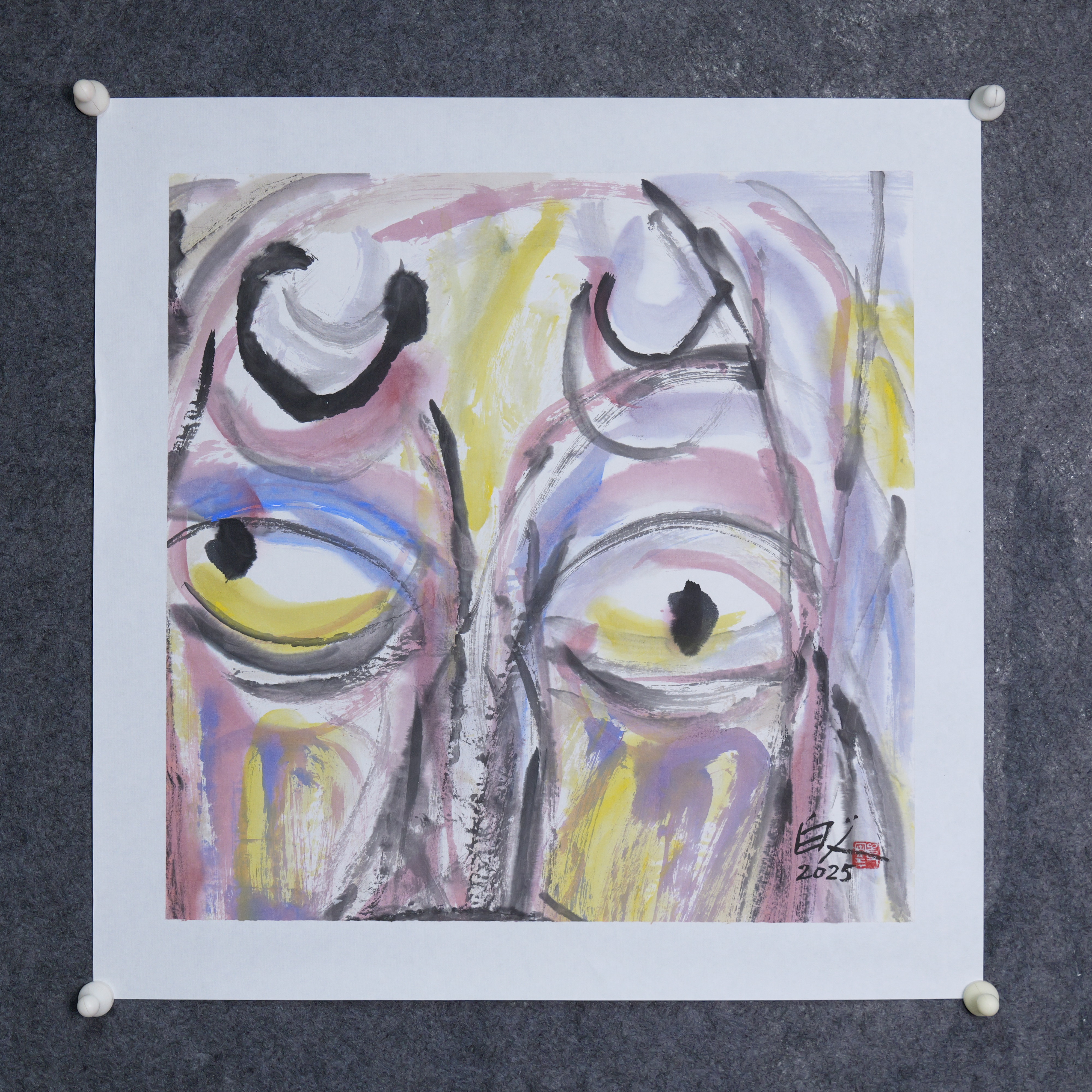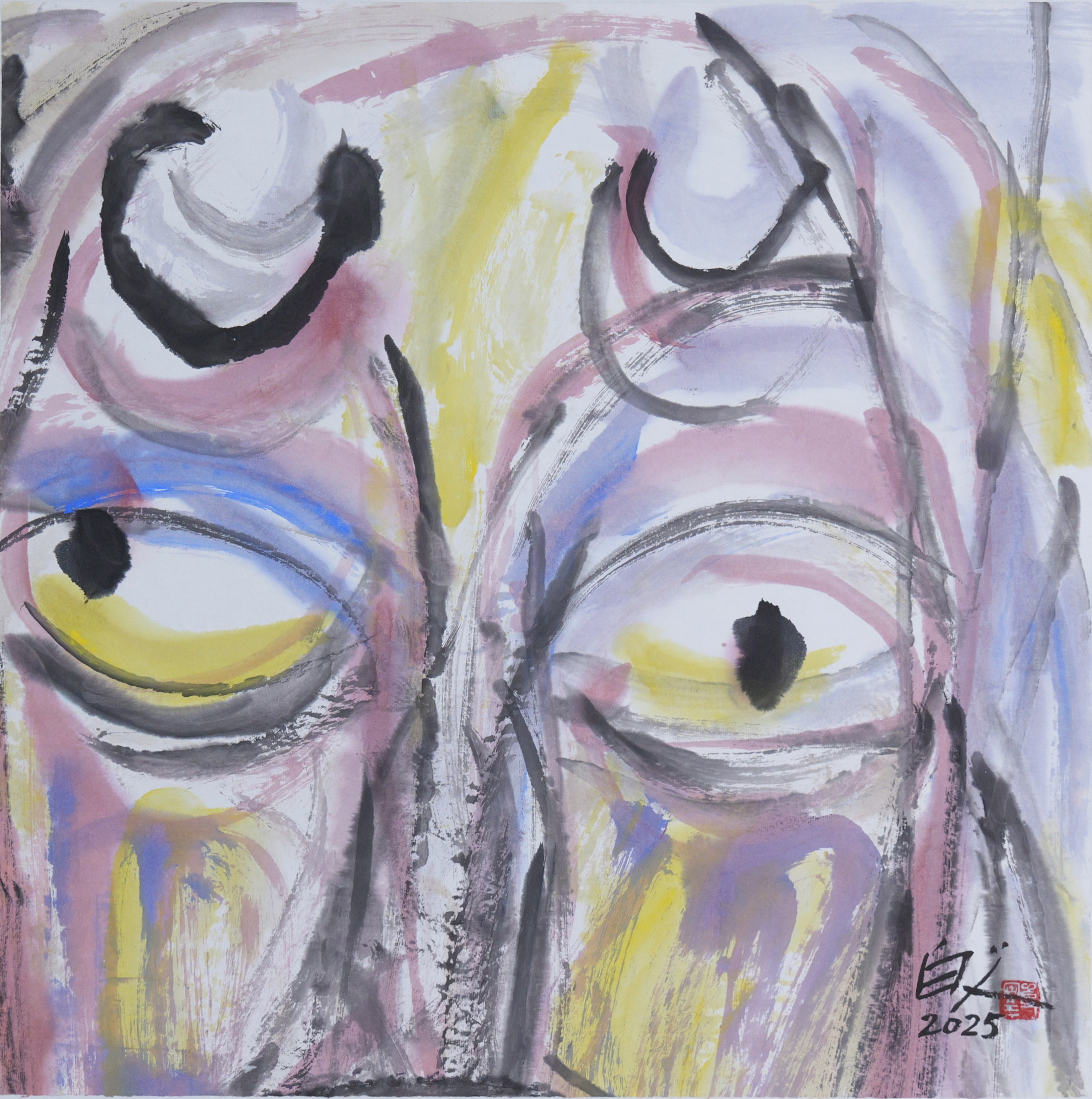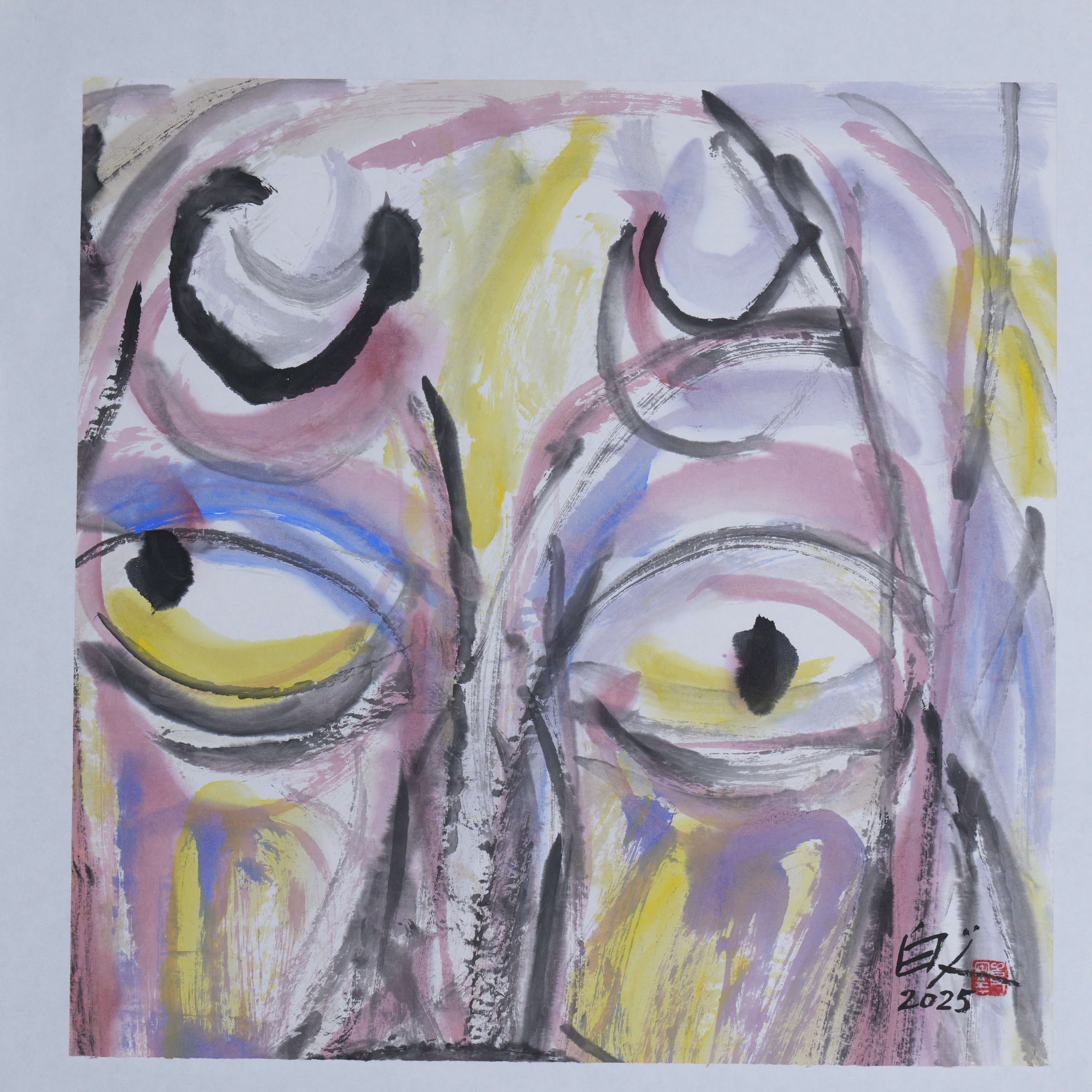 许固令《脸谱之十》国画原作53CM*53CM 手绘宣纸脸谱系列斗方作品【GH0489】