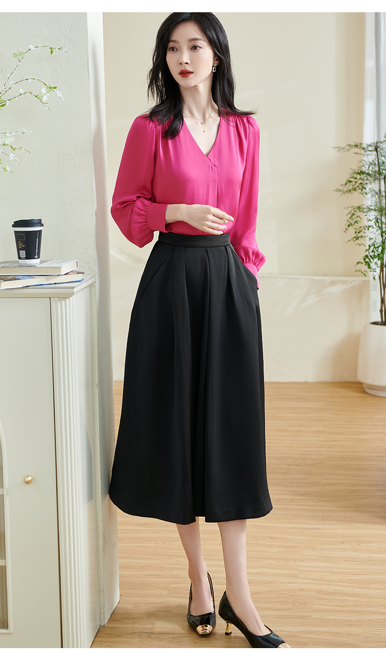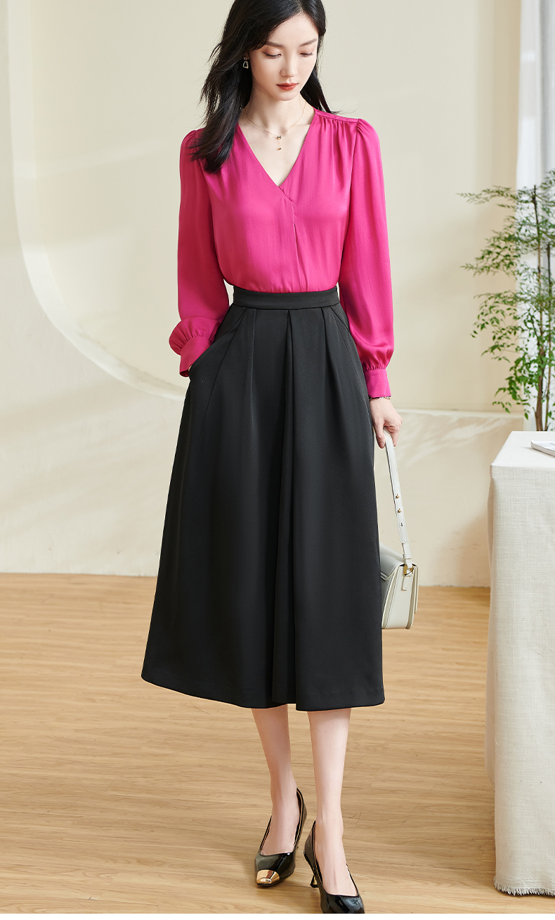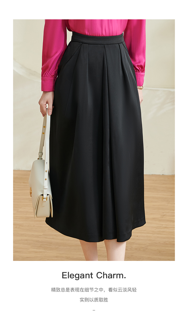 剩S/XL 米思阳2026春季新款通勤百搭黑色半身裙高腰显瘦褶皱中长裙女0196