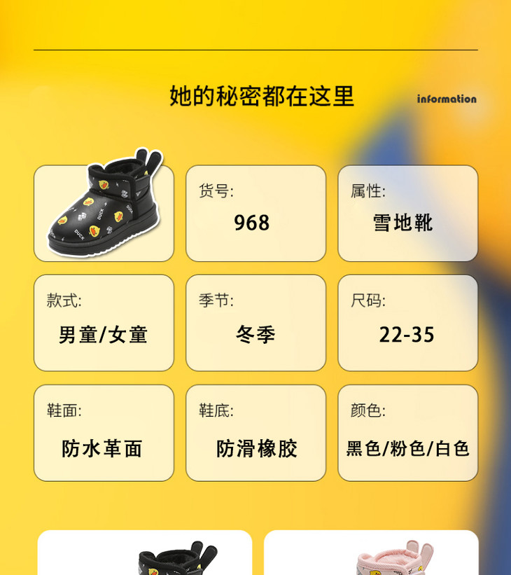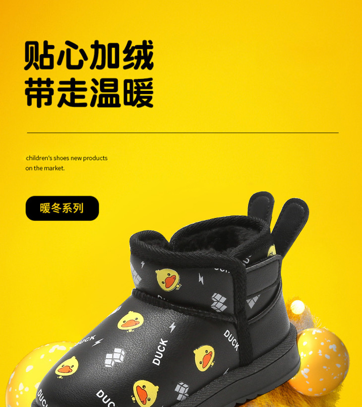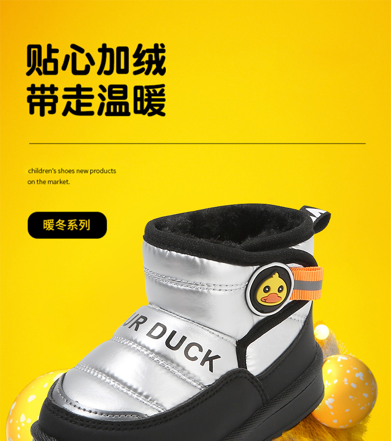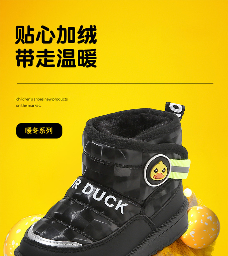 【合集】小黄鸭冬季加绒雪地棉新款儿童运动鞋防滑休闲百搭平底潮鞋小男孩皮面板鞋冬季女童鞋子22-39码