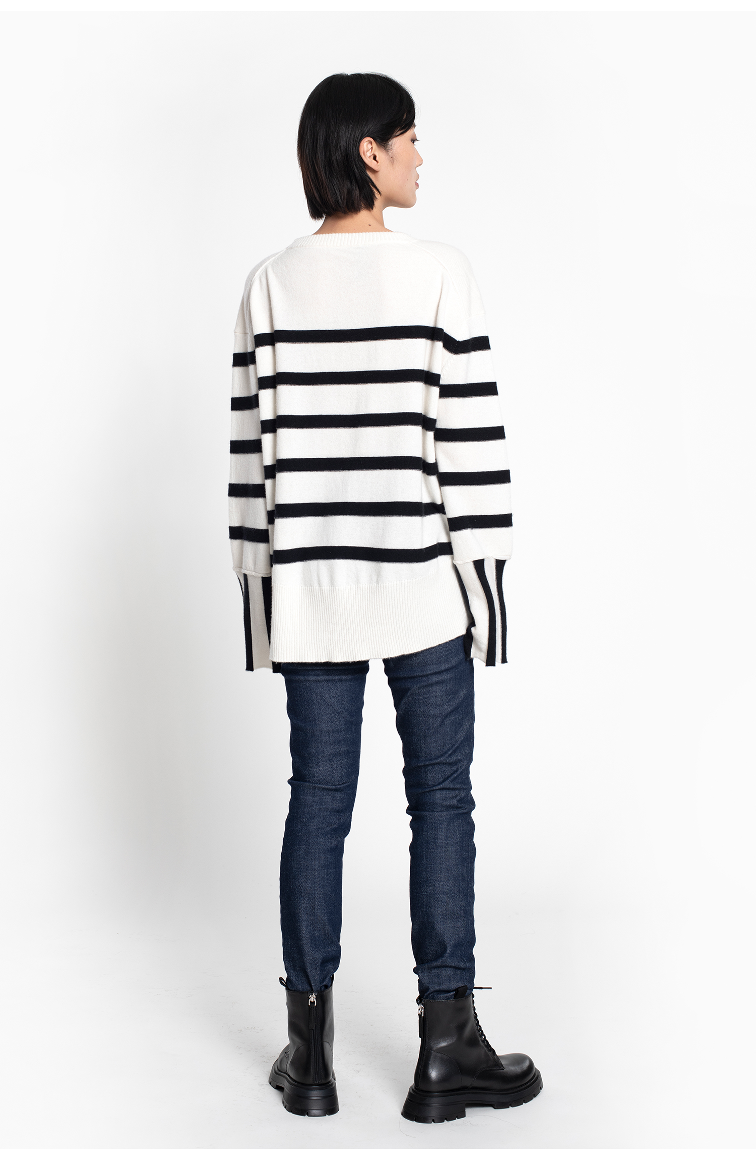 2020经典款女士纯山羊绒一字领稀针条纹套头衫