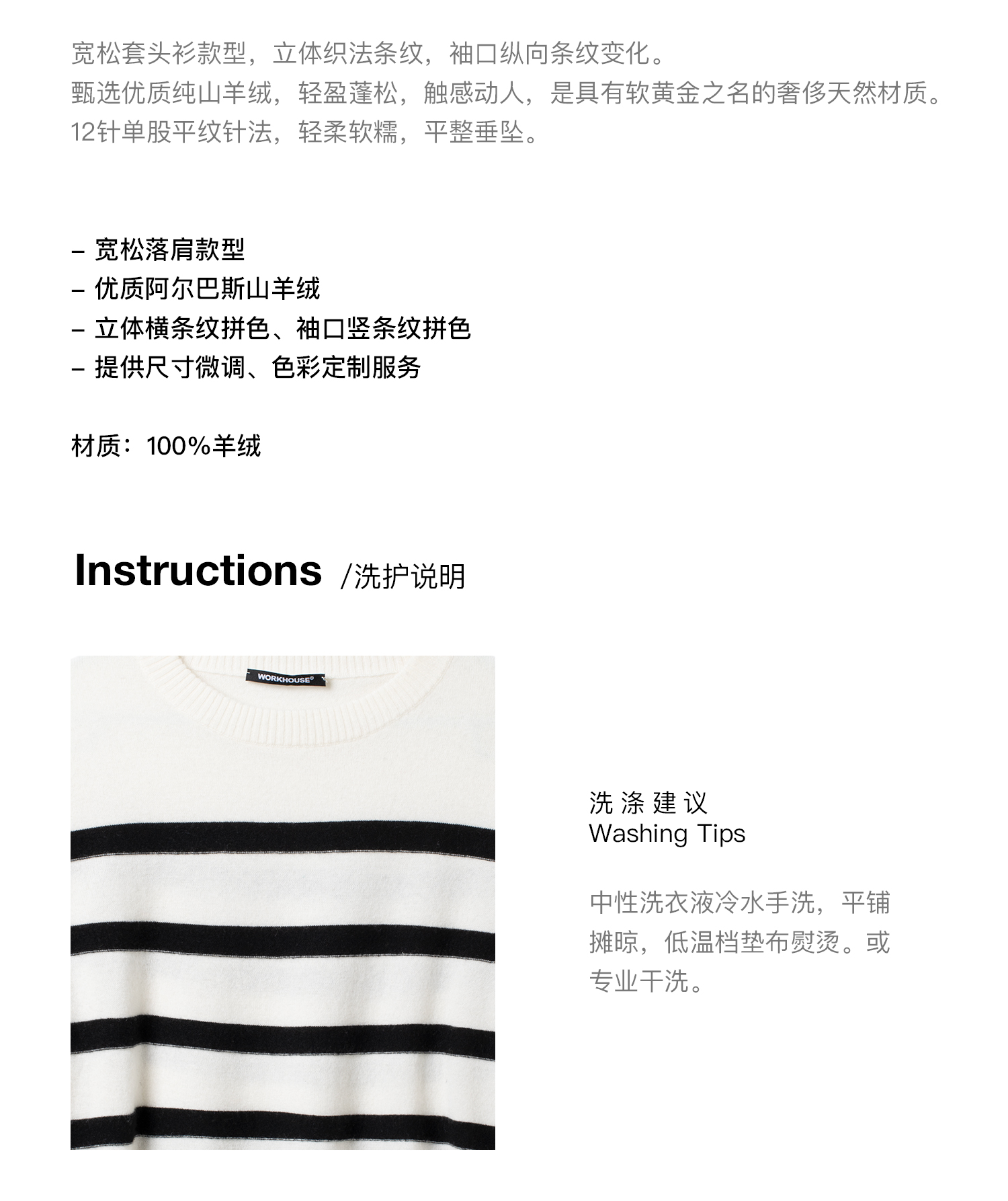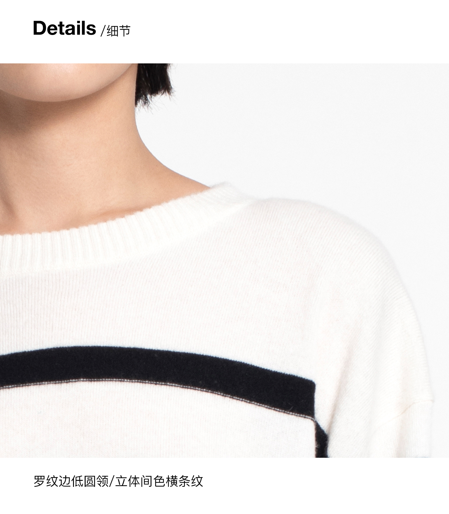 女士2021新款纯山羊绒单股平纹拼色条纹圆领套头衫