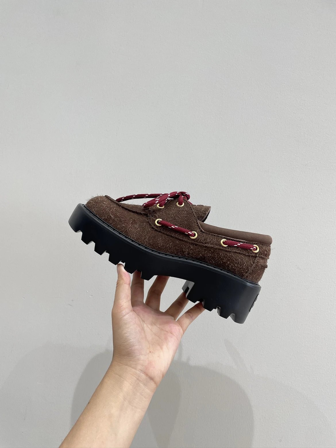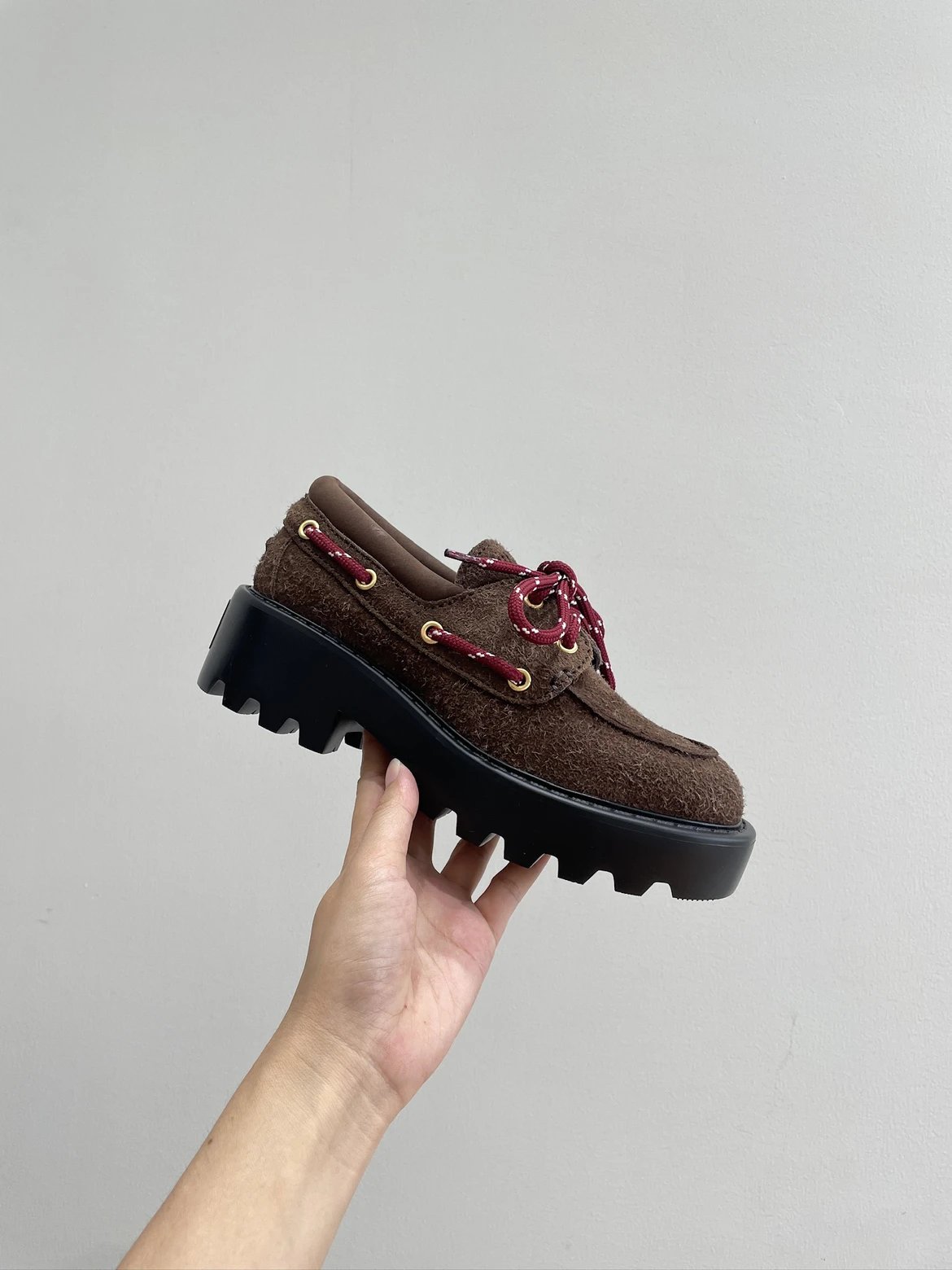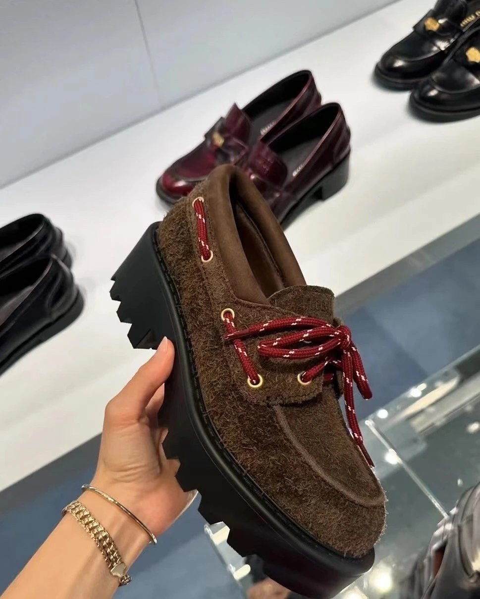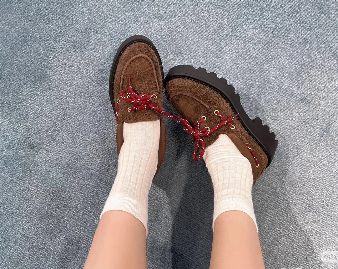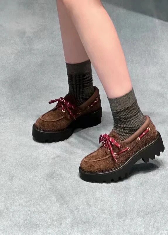 买手店渠道 缪麂皮厚底乐福鞋 石楠木色 进口牛反绒增高显腿细