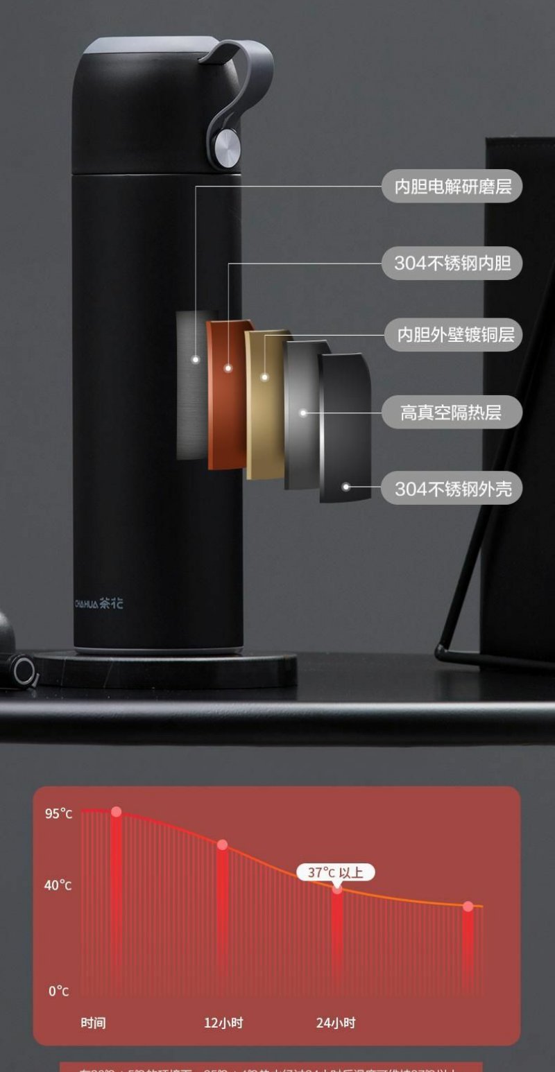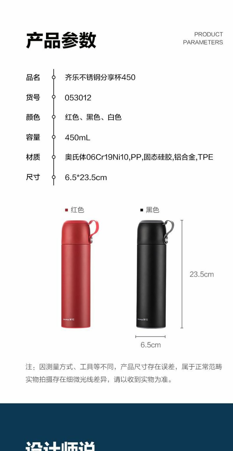 【茶花】齐乐不锈钢保温杯随行杯450ml
